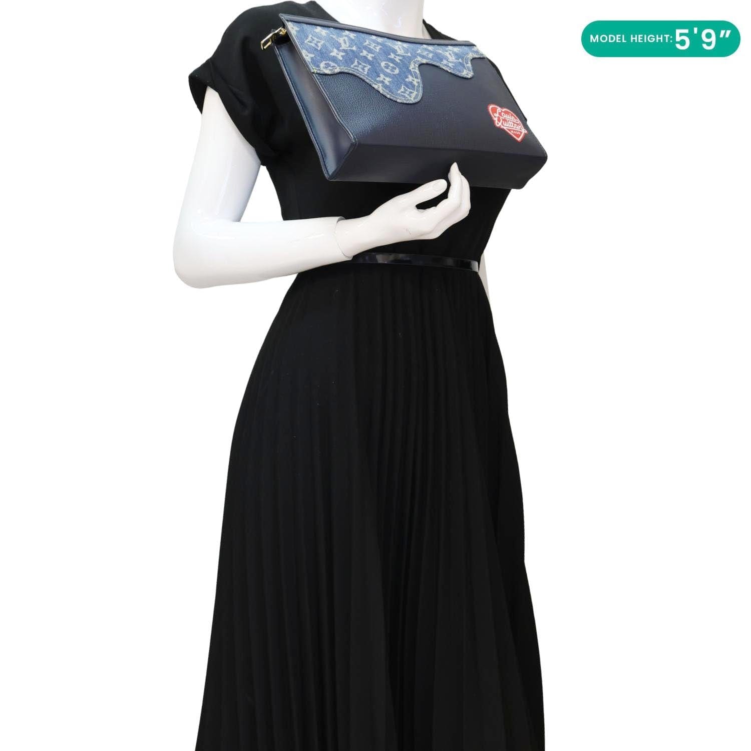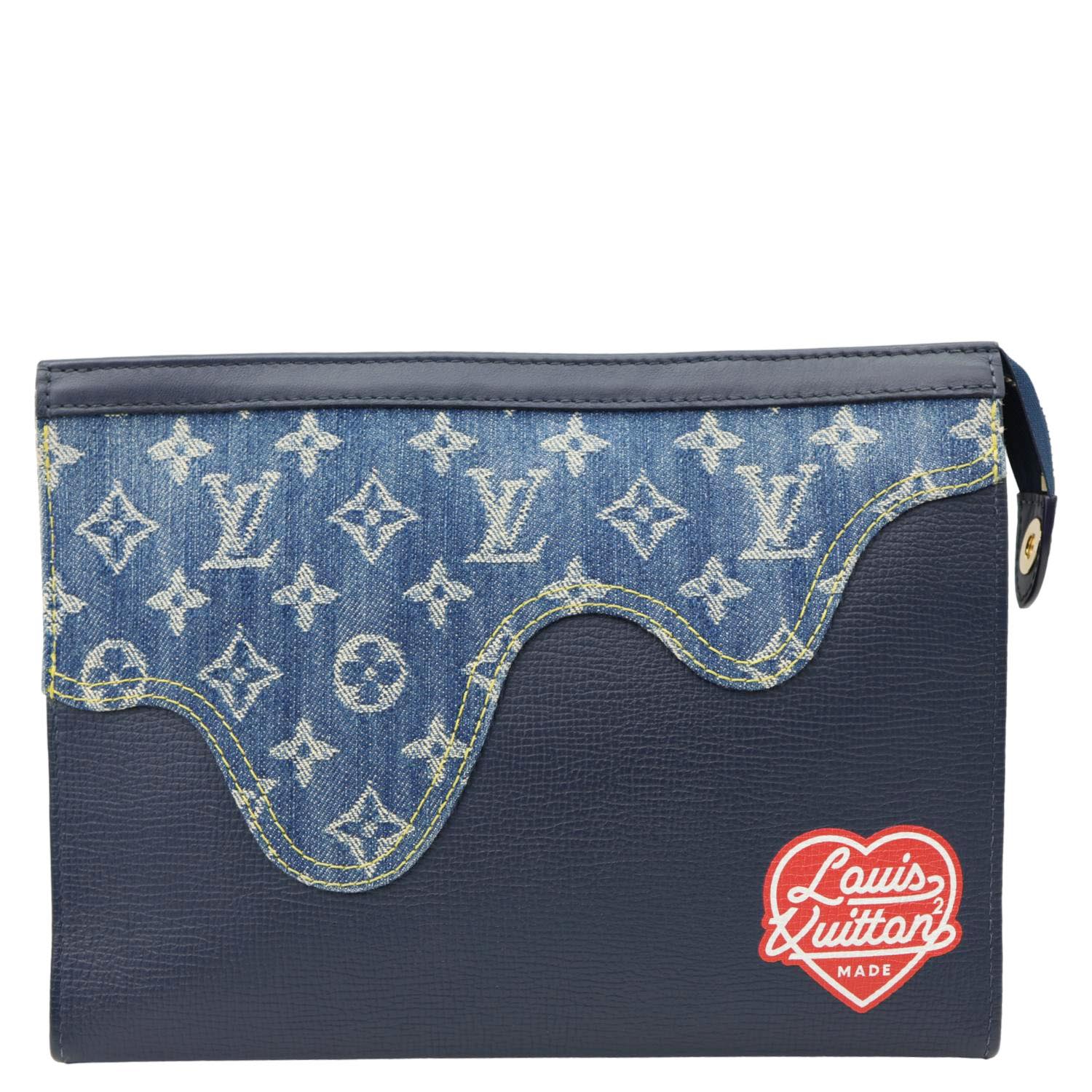 LOUIS VUITTON x NIGO Voyage MM Pochette in Navy Blue Denim Drip with signature Monogram details. A rare collector’s piece combining streetwear edge with luxury craftsmanship.