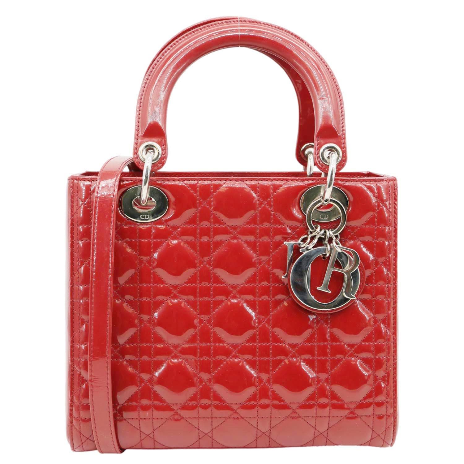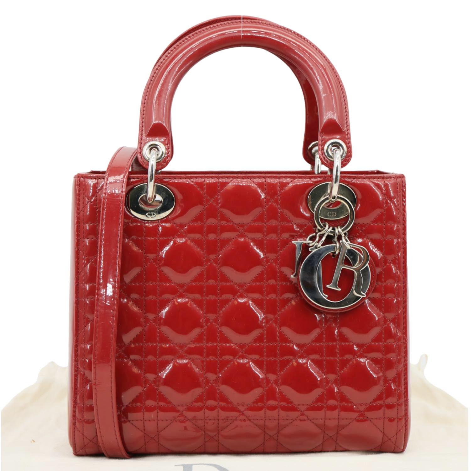 Lady Dior Medium Quilted Patent Leather Shoulder Bag Burgundy