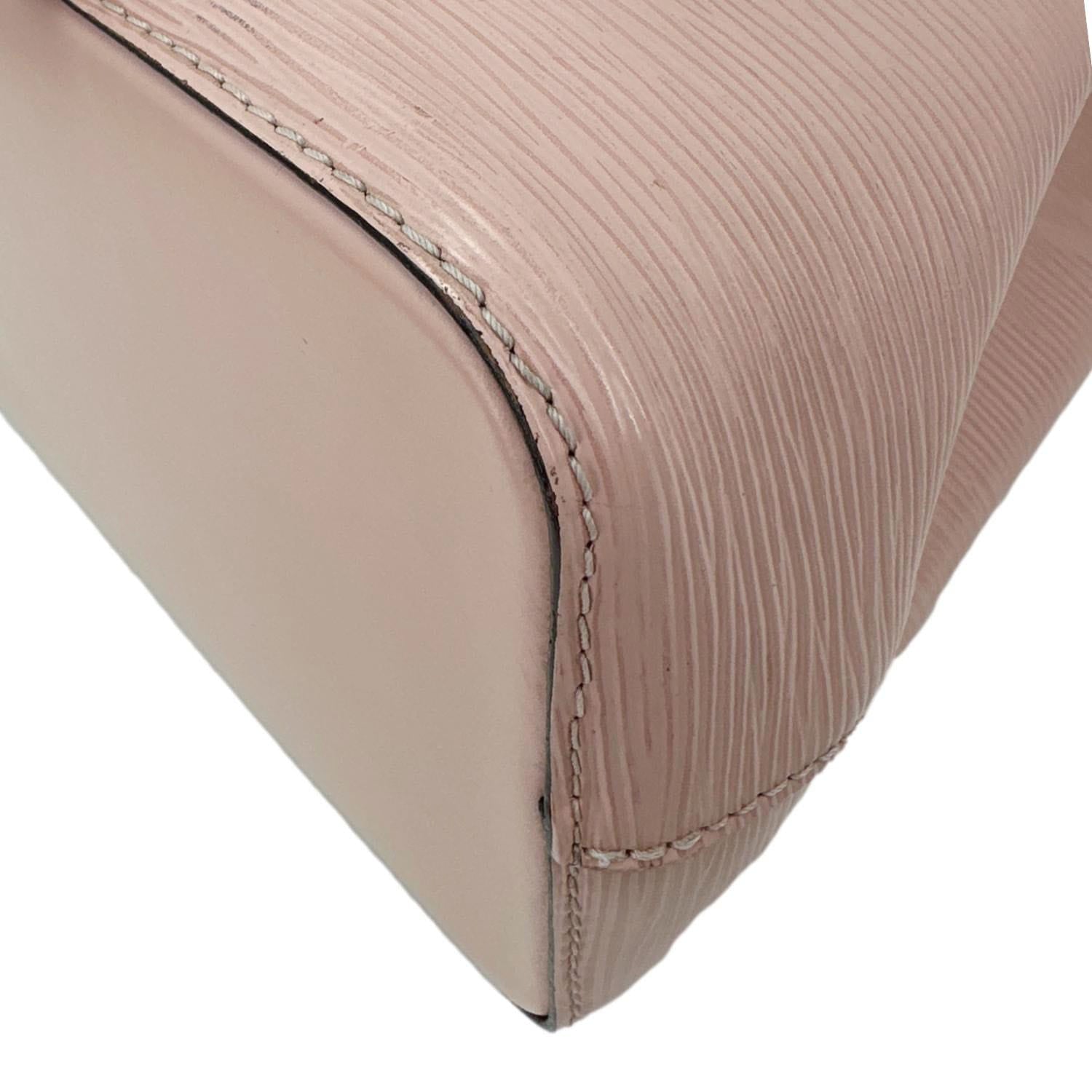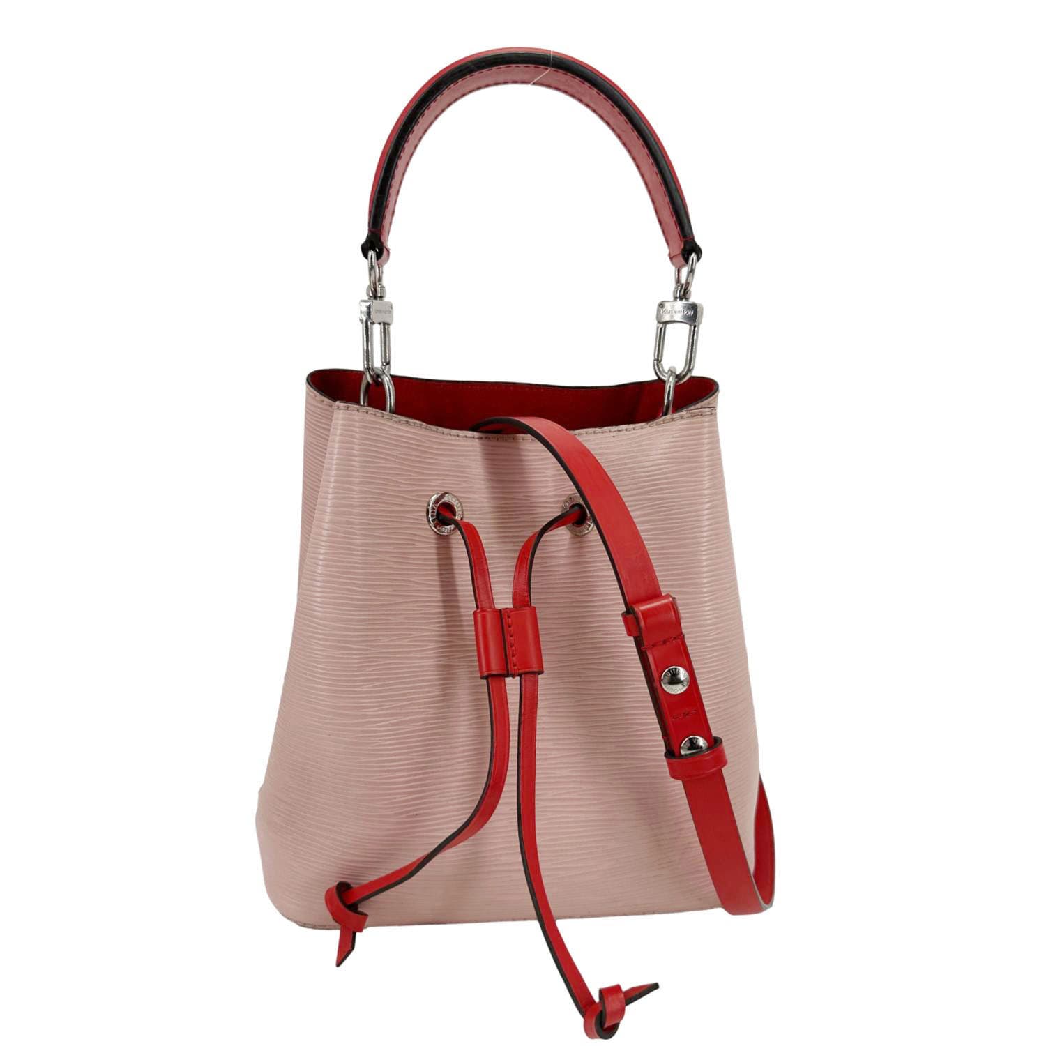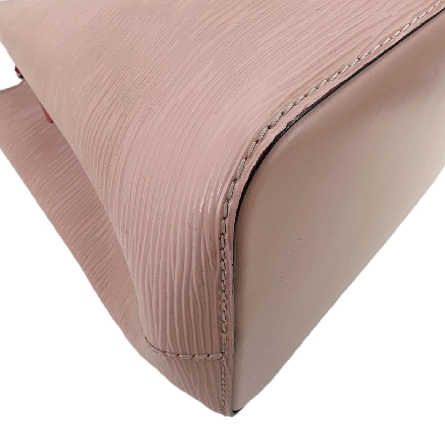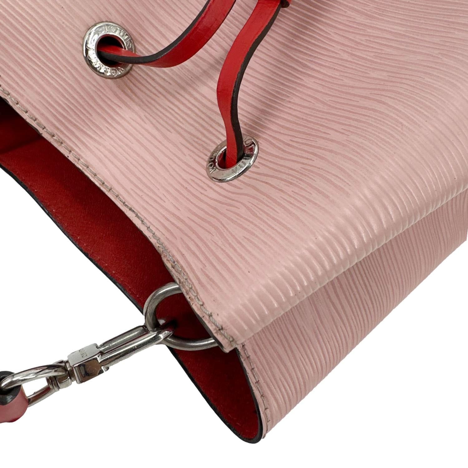 Louis Vuitton NéoNoé BB crafted in durable Epi leather with a sleek, structured bucket design in soft pink. Compact yet functional style with drawstring closure and adjustable strap, perfect for chic everyday carry.