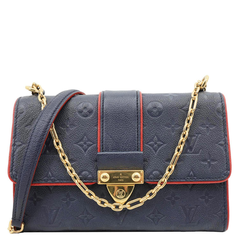 LOUIS VUITTON Saint Sulpice PM Empreinte Leather Crossbody Bag in navy blue. Crafted from soft, embossed Empreinte leather with refined stitching and gold-tone hardware. Compact yet functional design, perfect for stylish everyday wear.