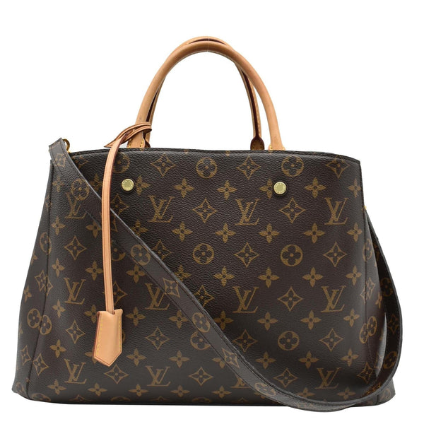 A spacious and elegant tote crafted from iconic Monogram canvas, featuring structured handles and gold-tone hardware. The Montaigne GM blends timeless style with functional interior compartments for daily organization.