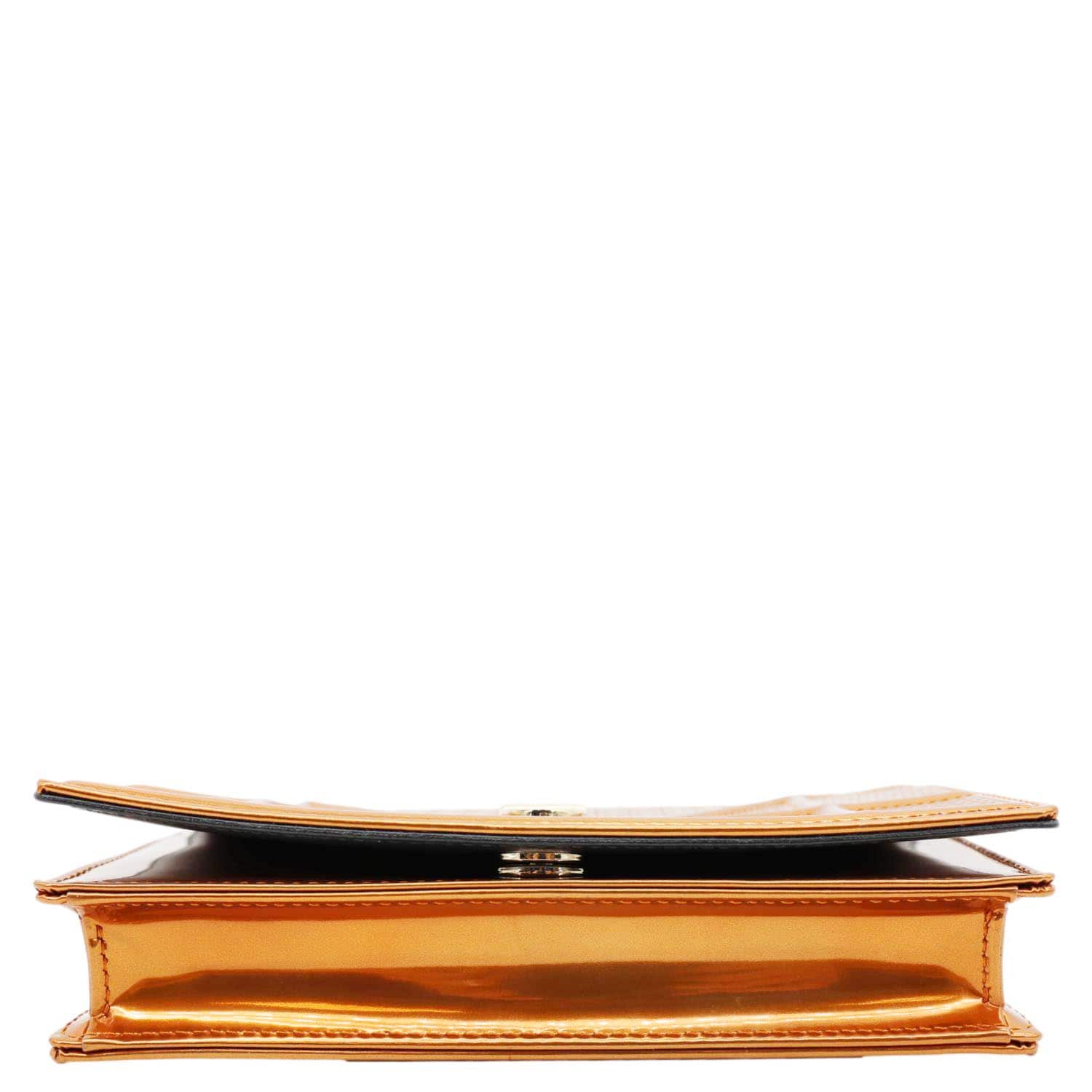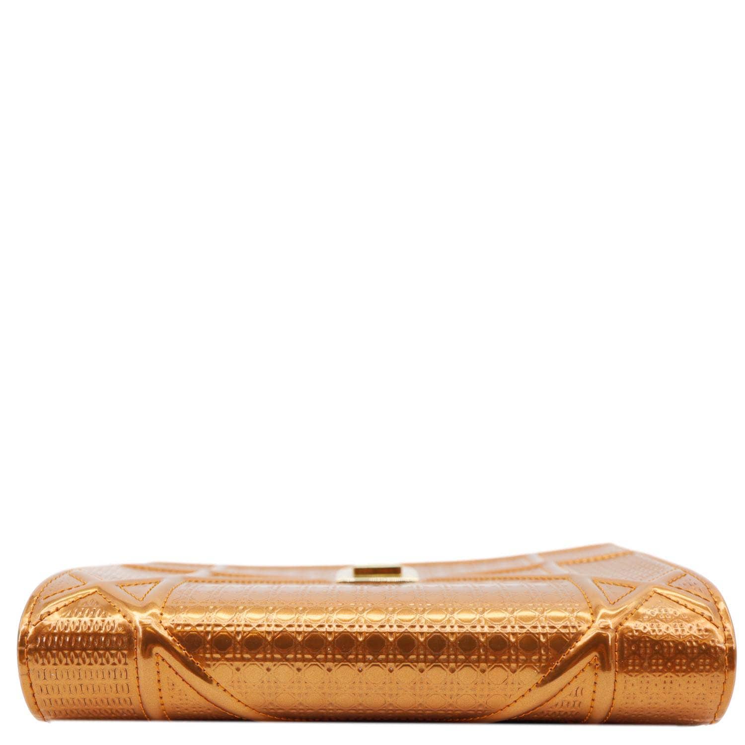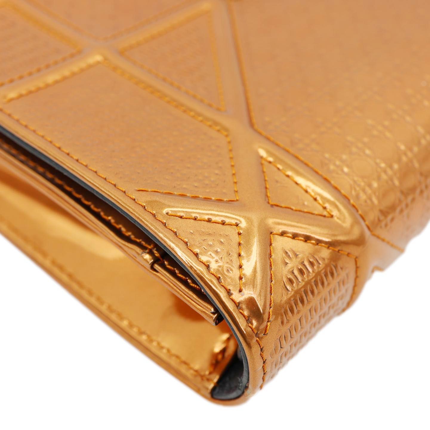 Diorama Micro-Cannage Patent Leather Wallet on Chain Orange