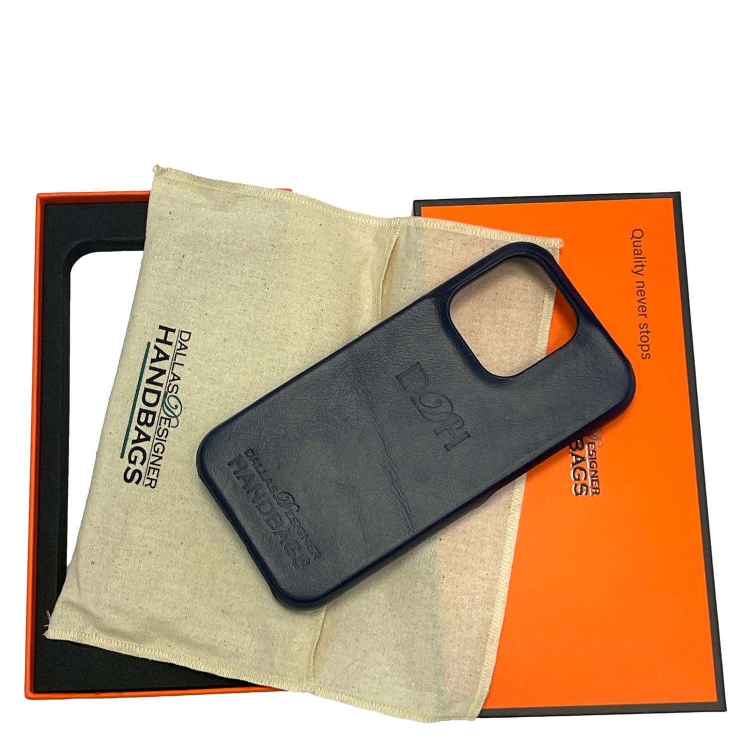 Dallas Designer Handbags Leather iPhone 15 Pro Max MagSafe Phone Case Navy Blue