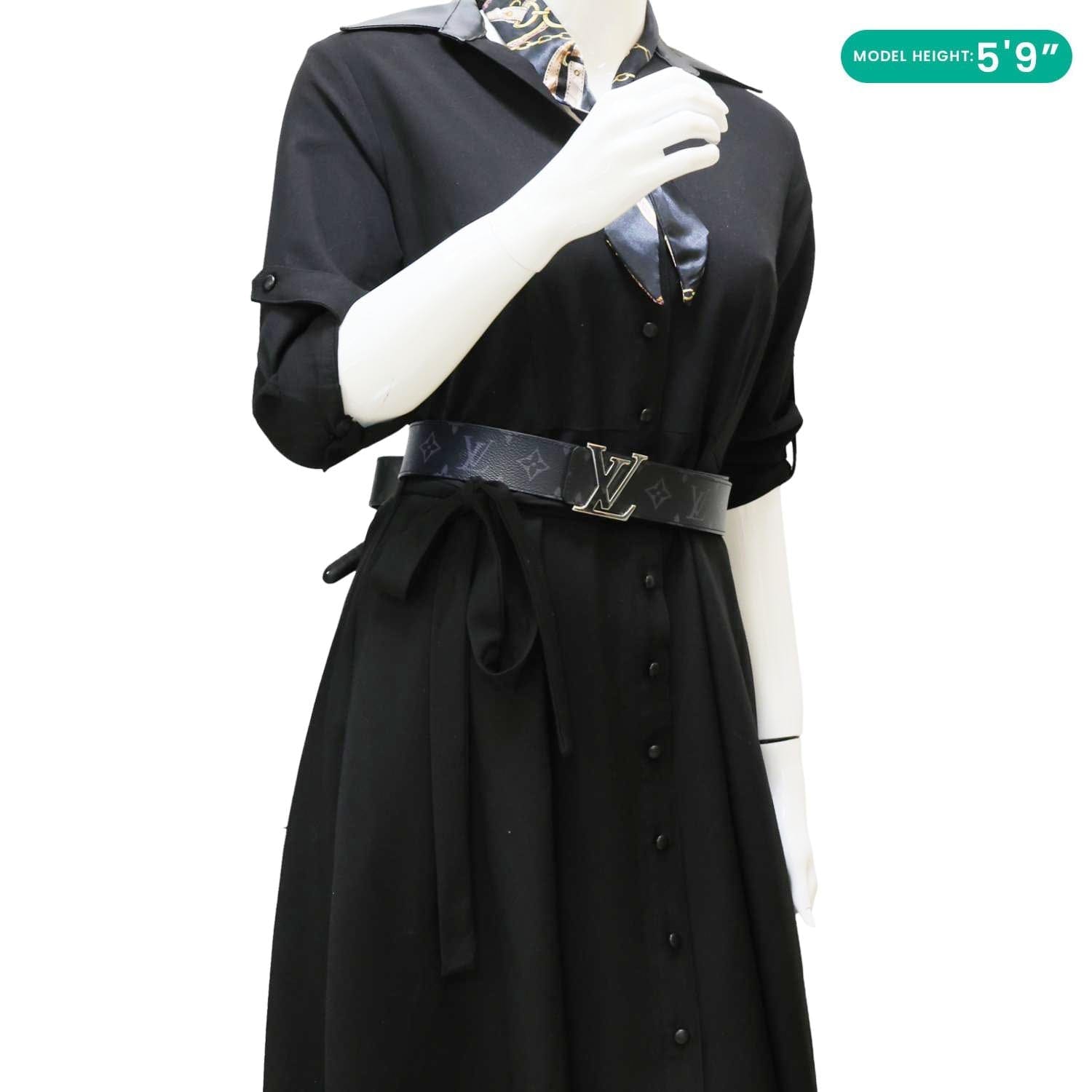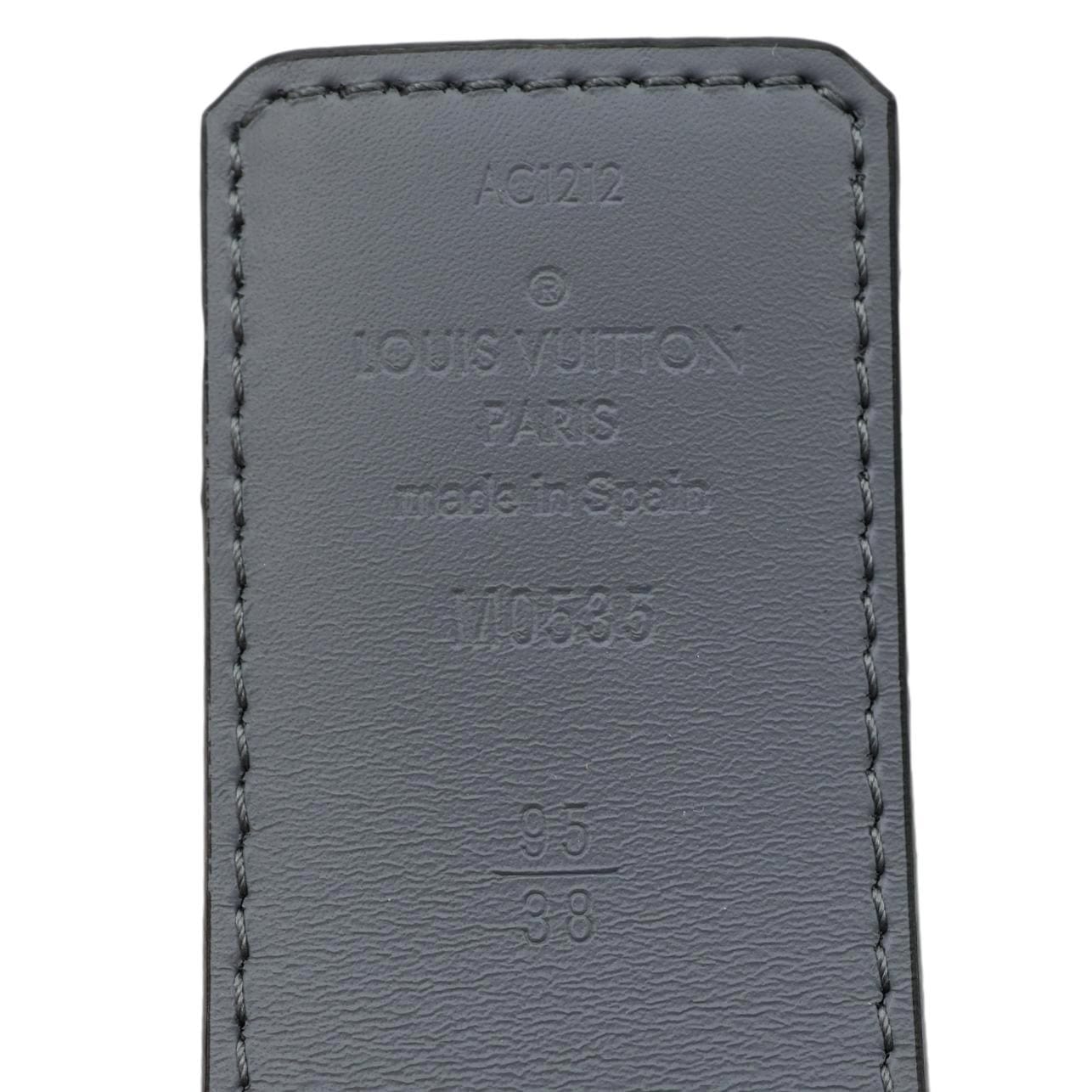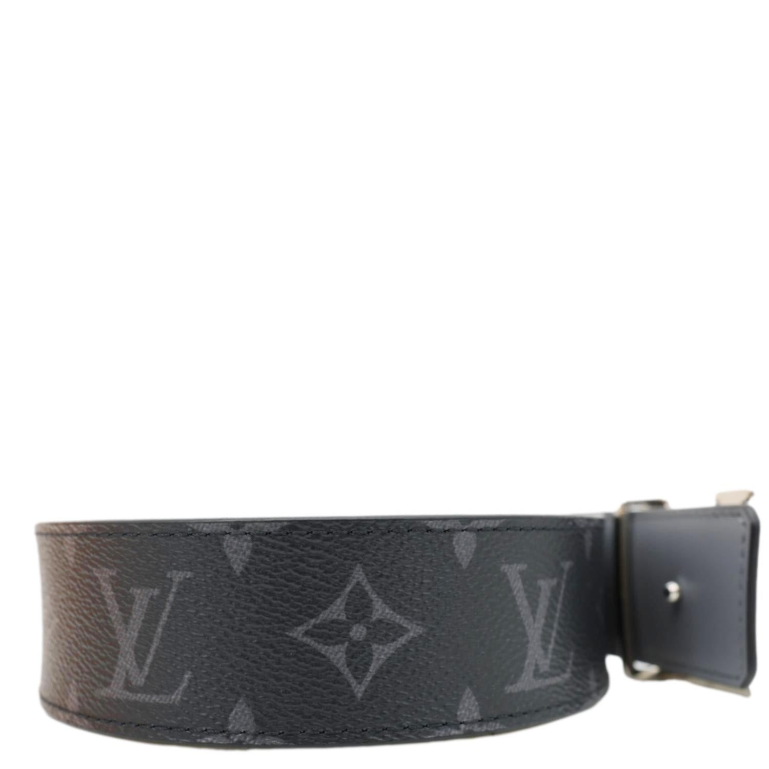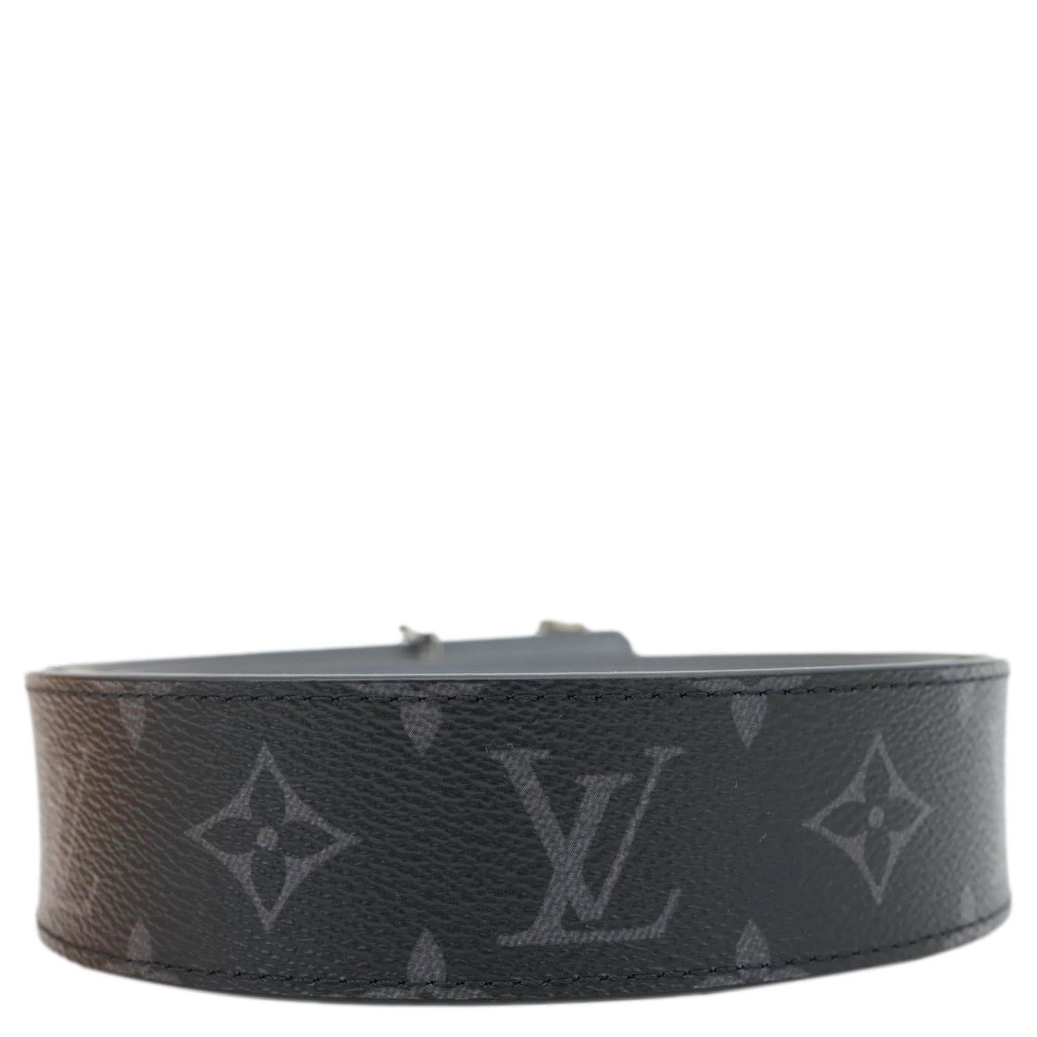 Louis Vuitton LV Initiales Reversible Belt in Monogram Eclipse canvas and black leather features a bold LV buckle. Reversible design offers versatile styling with premium craftsmanship and sleek luxury appeal.