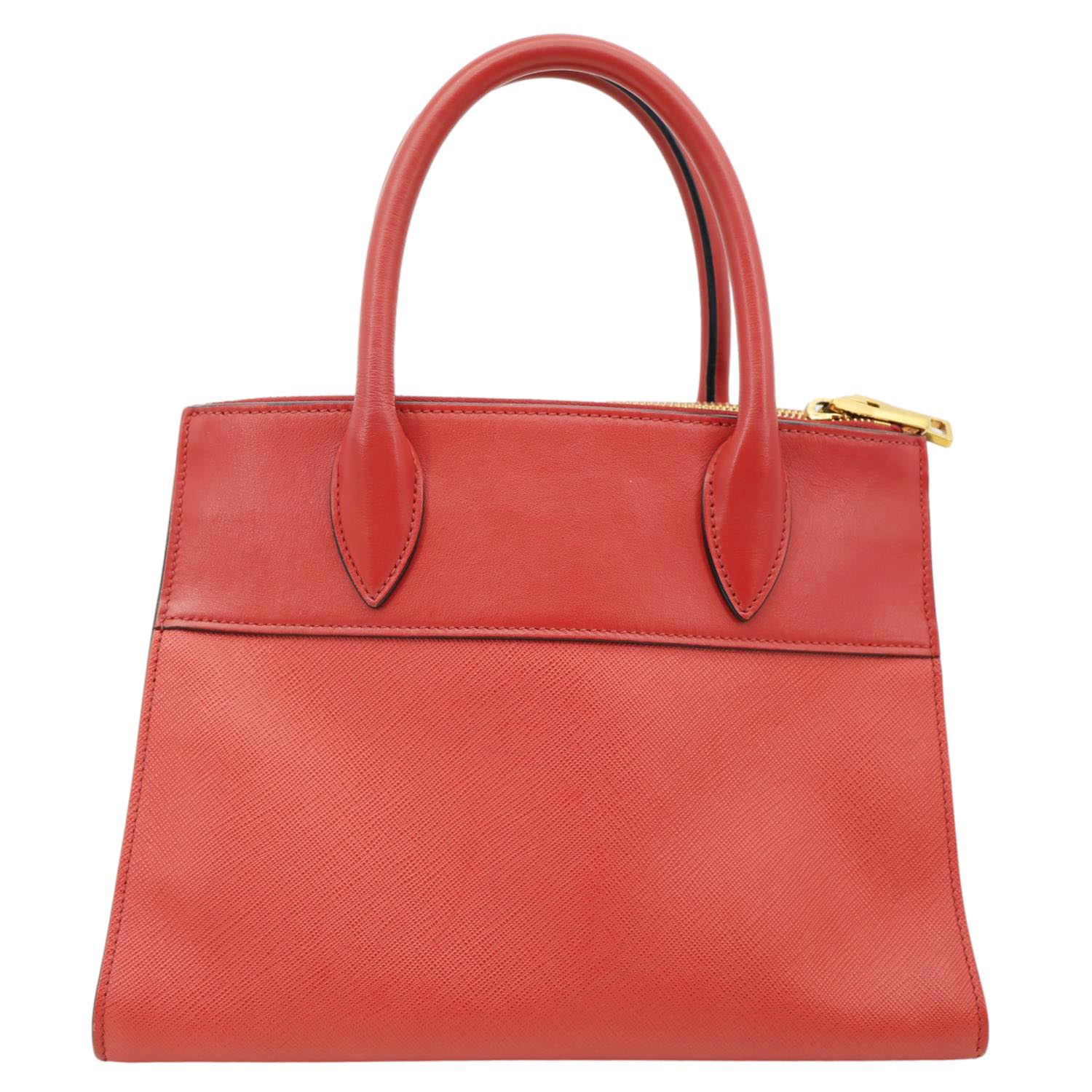 Prada Paradigme tote crafted in red Saffiano leather with a structured, sophisticated silhouette. Spacious interior with dual handles, perfect for polished everyday and work-ready style.