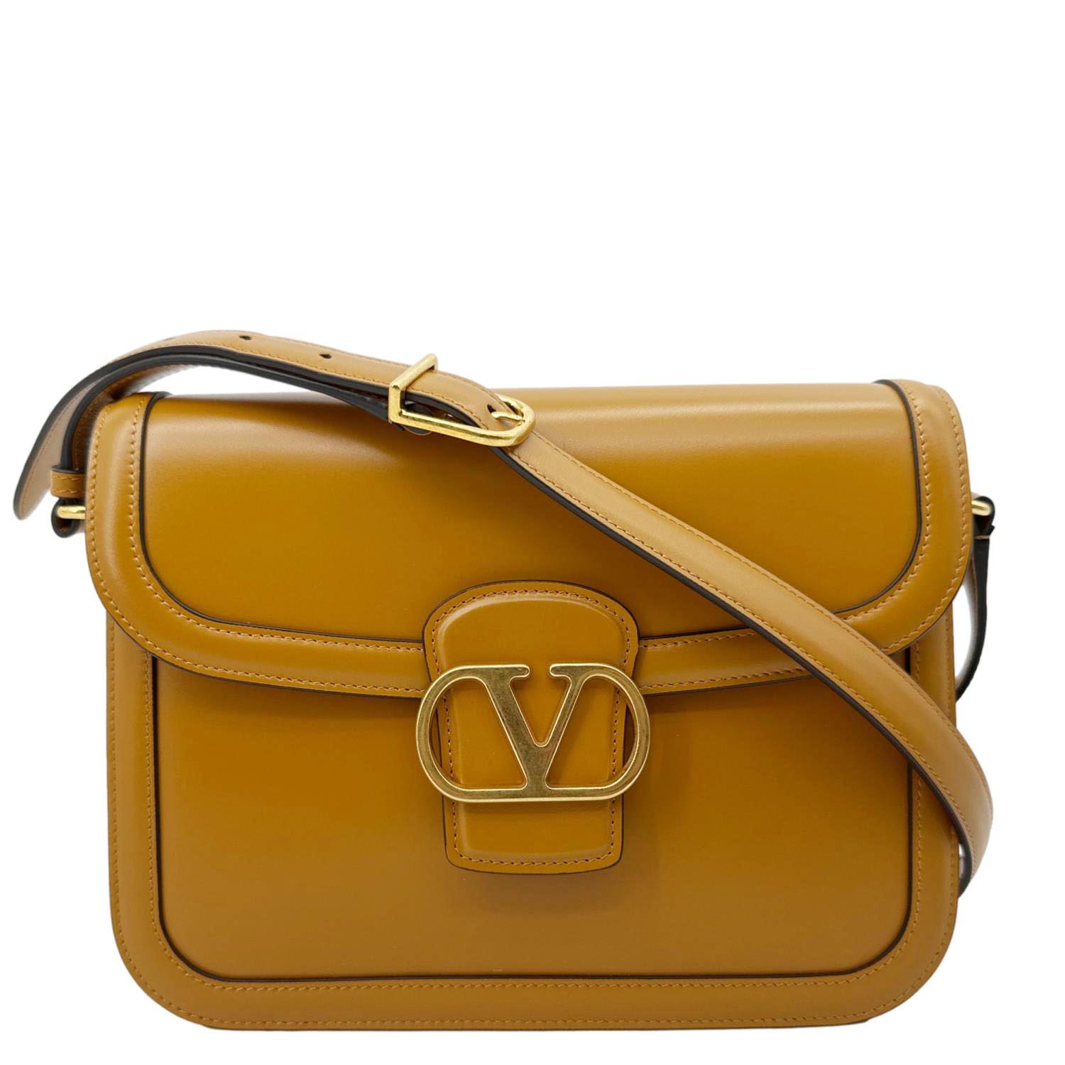 Valentino Garavani 9to5 shoulder bag in dark mustard leather with clean, modern lines. Spacious interior and versatile strap make it ideal for everyday and work-ready style. Refined design that pairs effortlessly with casual and polished outfits.