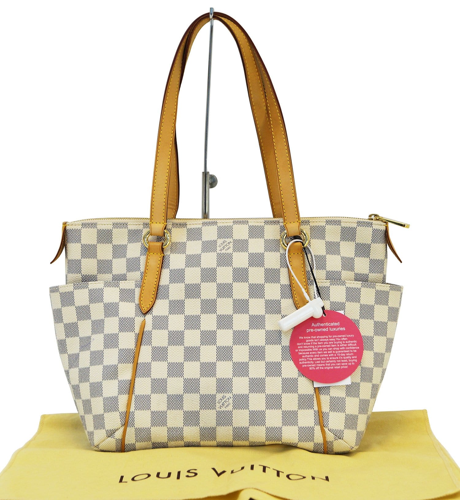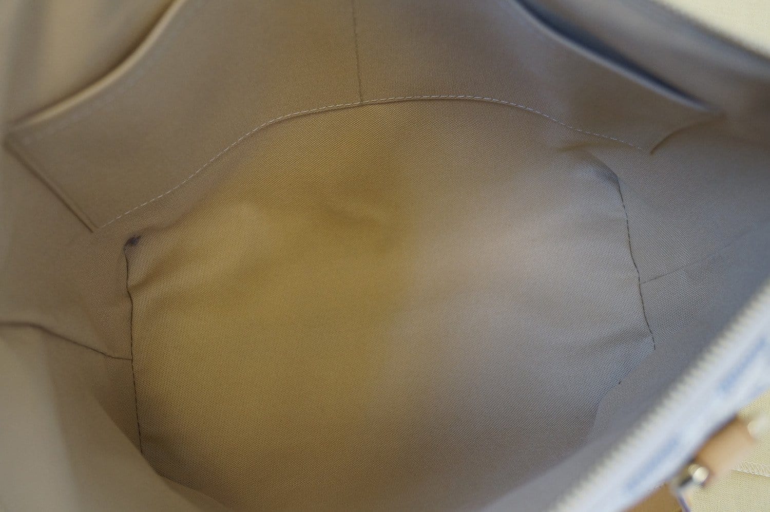 The Damier Azur Totally PM NM Bag is among the newest totes from Louis Vuitton and looks particularly striking in Damier Azur. It features a large yet lightweight design with an extra spacious interior and two large side pockets.