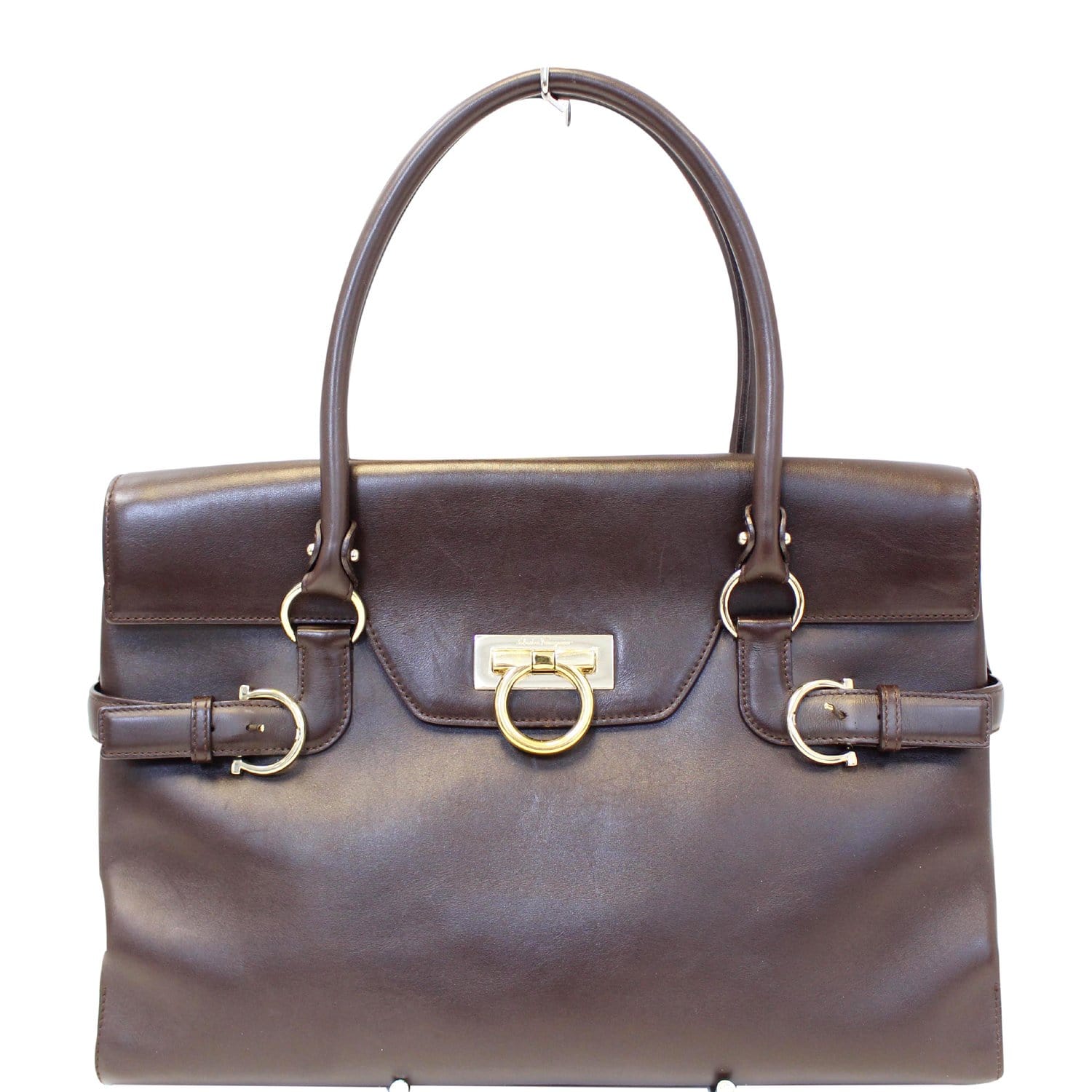 Salvatore Ferragamo Virna Medium Dark Brown Leather Satchel Handbag