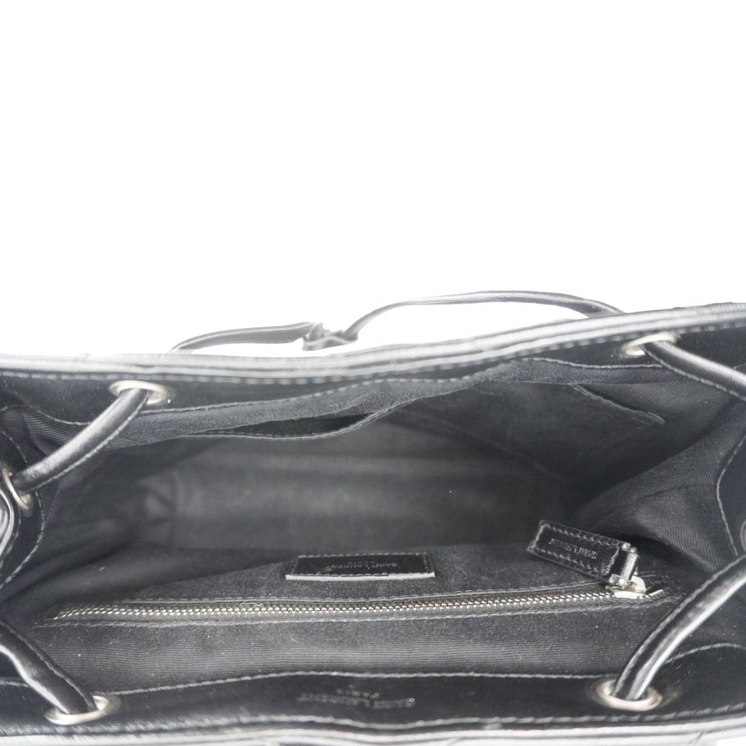 The Yves Saint Laurent Loulou Small Backpack in black calfskin features Y-quilted stitching and the iconic YSL monogram. Combining elegance with practicality, it offers adjustable straps, a compact design, and timeless sophistication for everyday use.