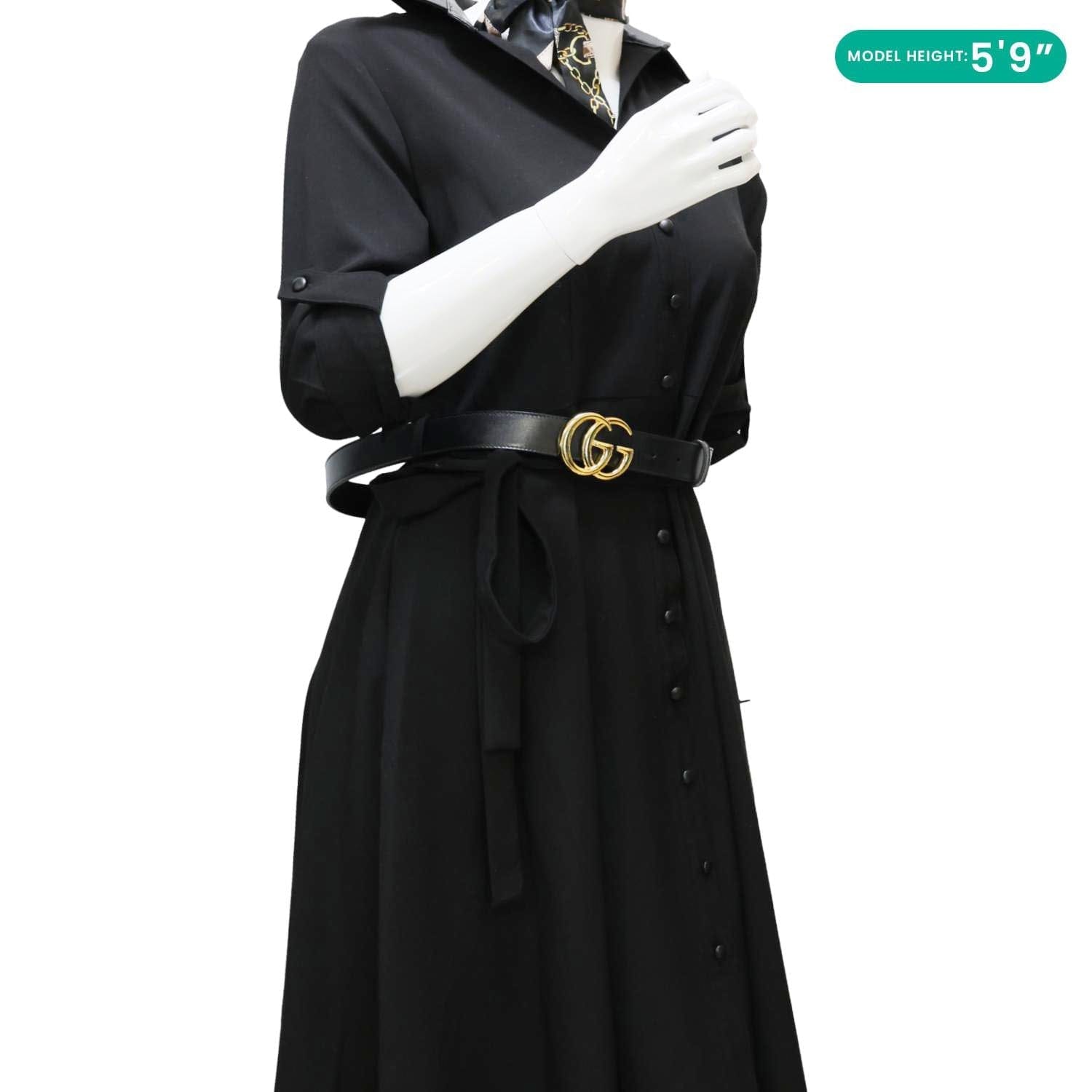 GUCCI GG Buckle Marmont Thin Leather Belt Size 90/36 Black features smooth black leather paired with the iconic GG buckle for a sleek, timeless look. Its slim design makes it perfect for adding subtle luxury to any outfit.