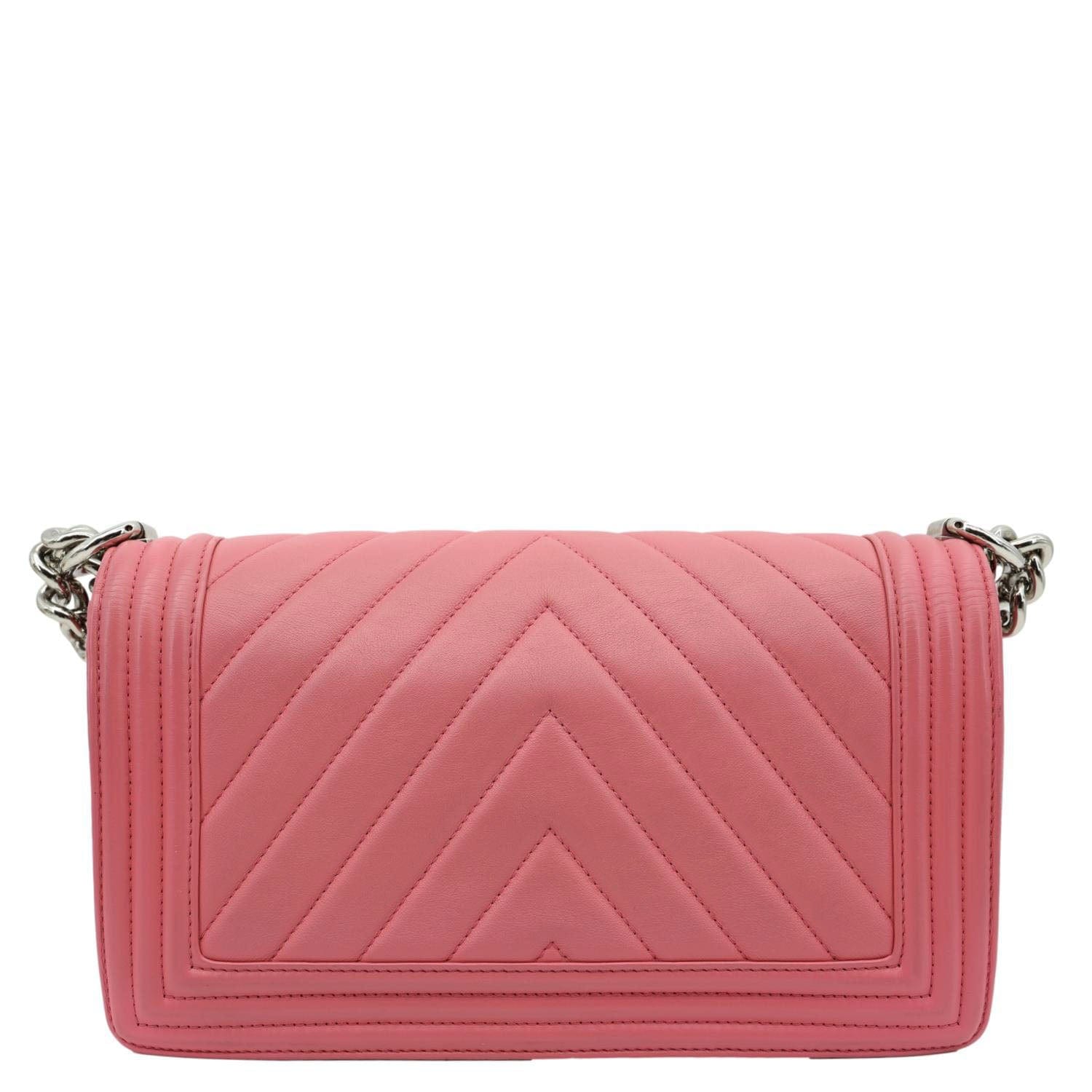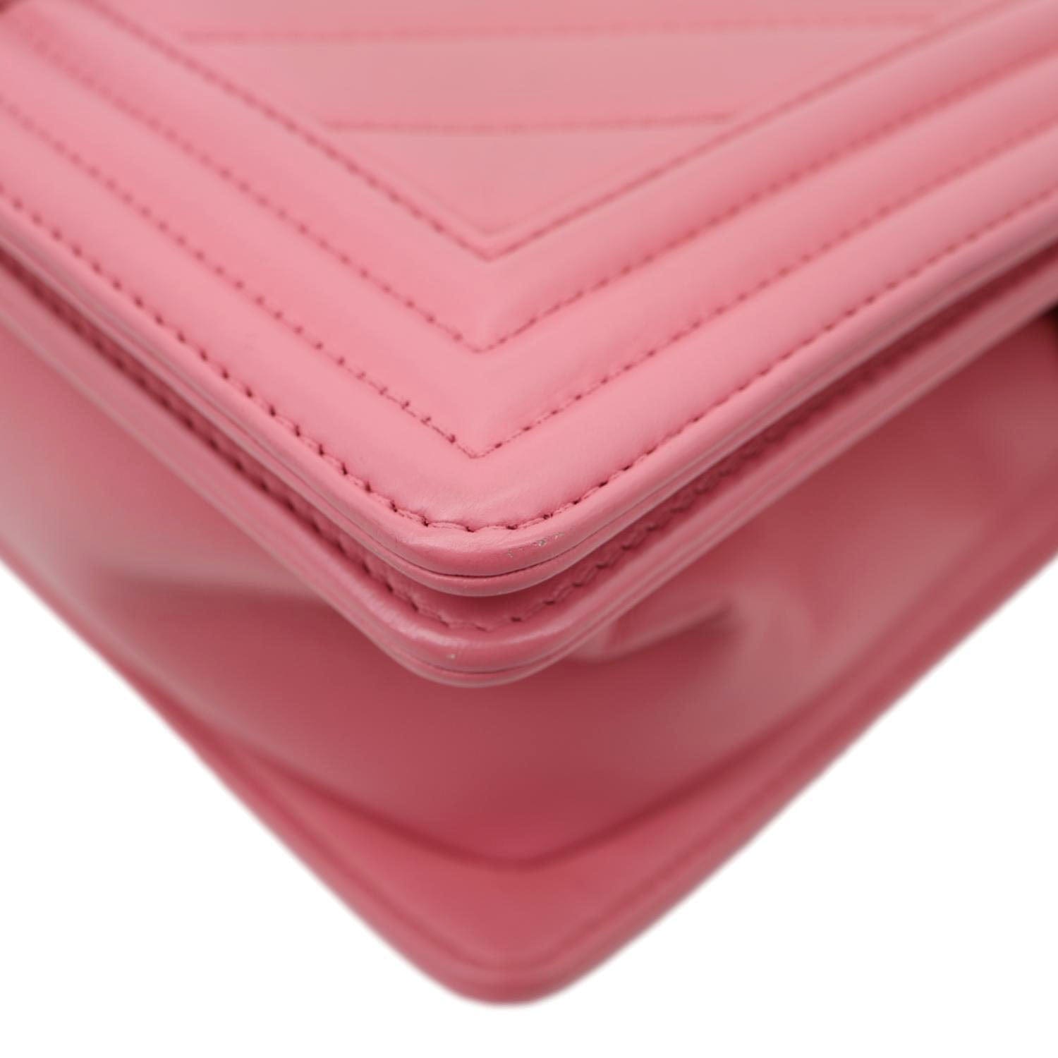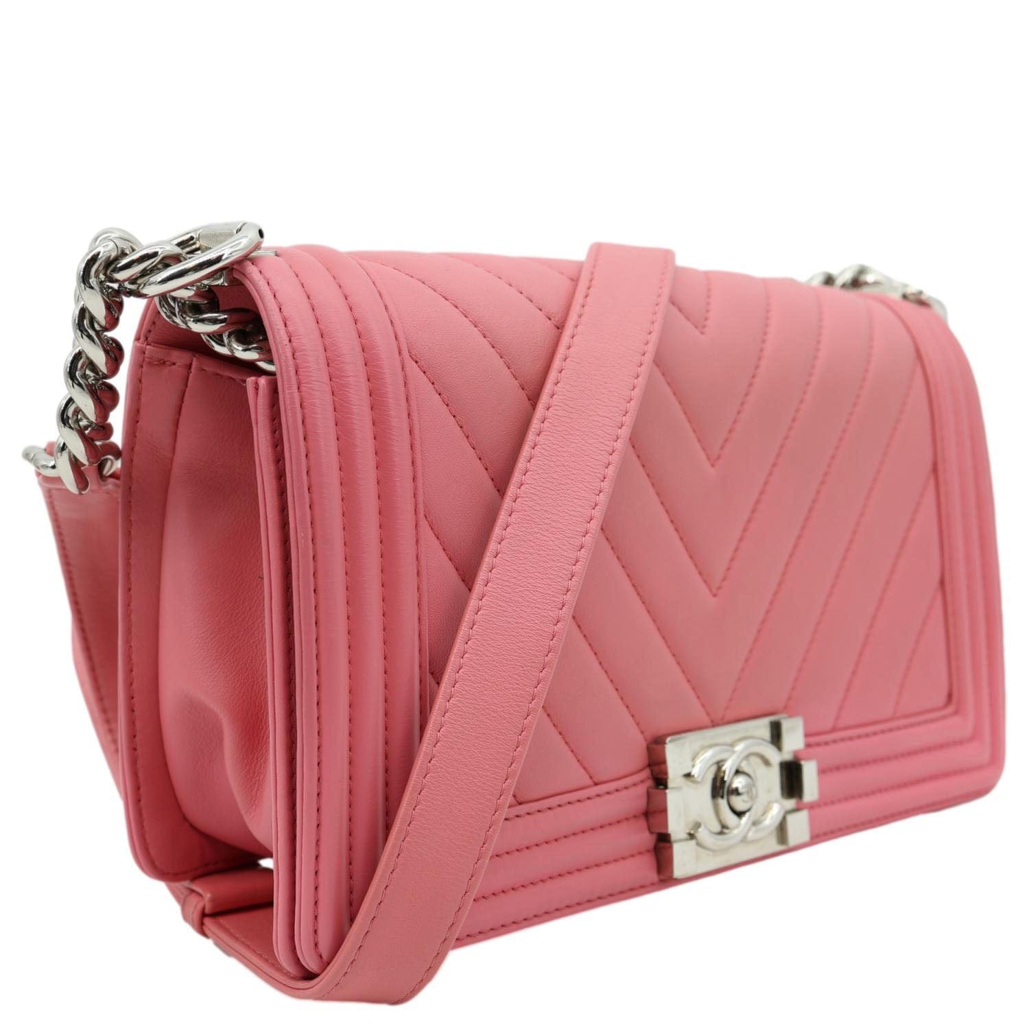 CHANEL Boy Flap Old Medium Chevron Leather Crossbody Bag Pink