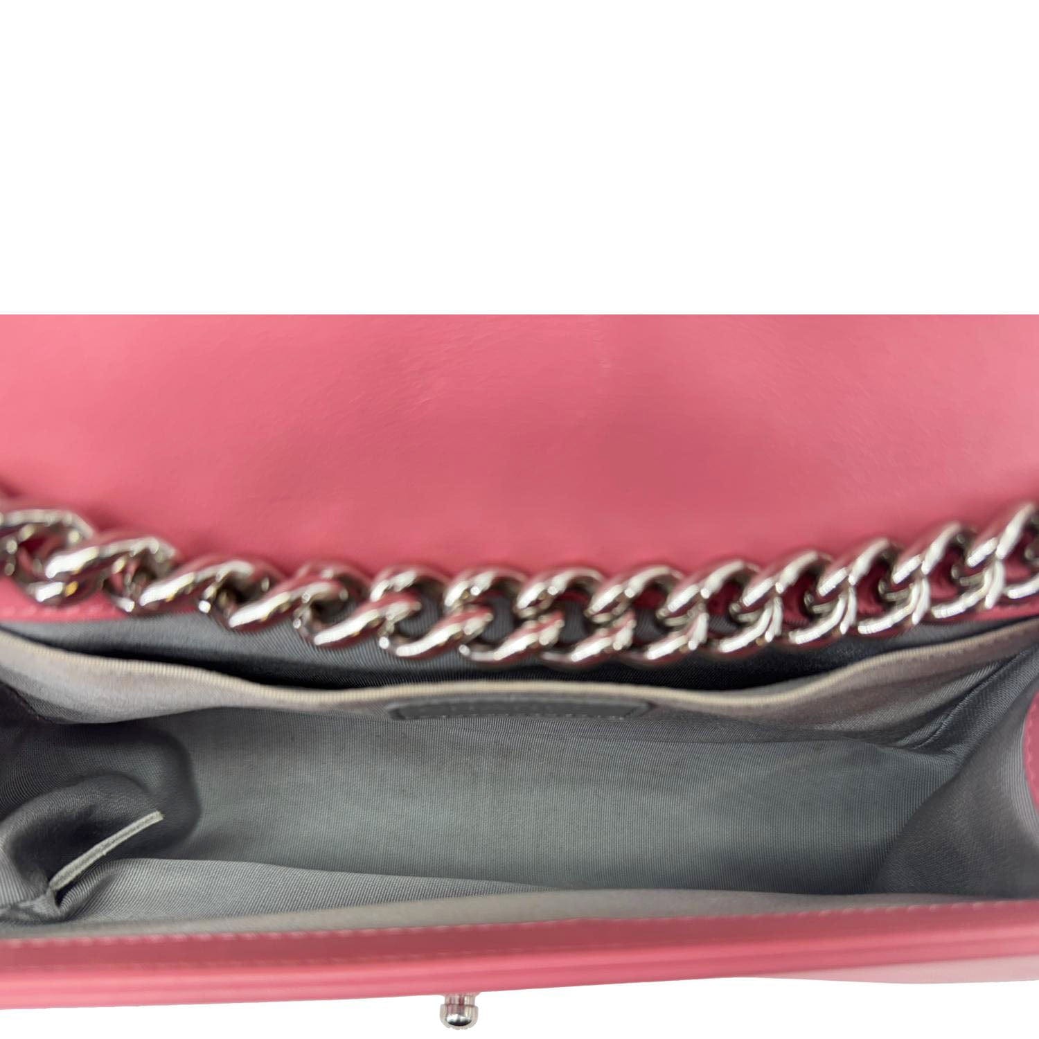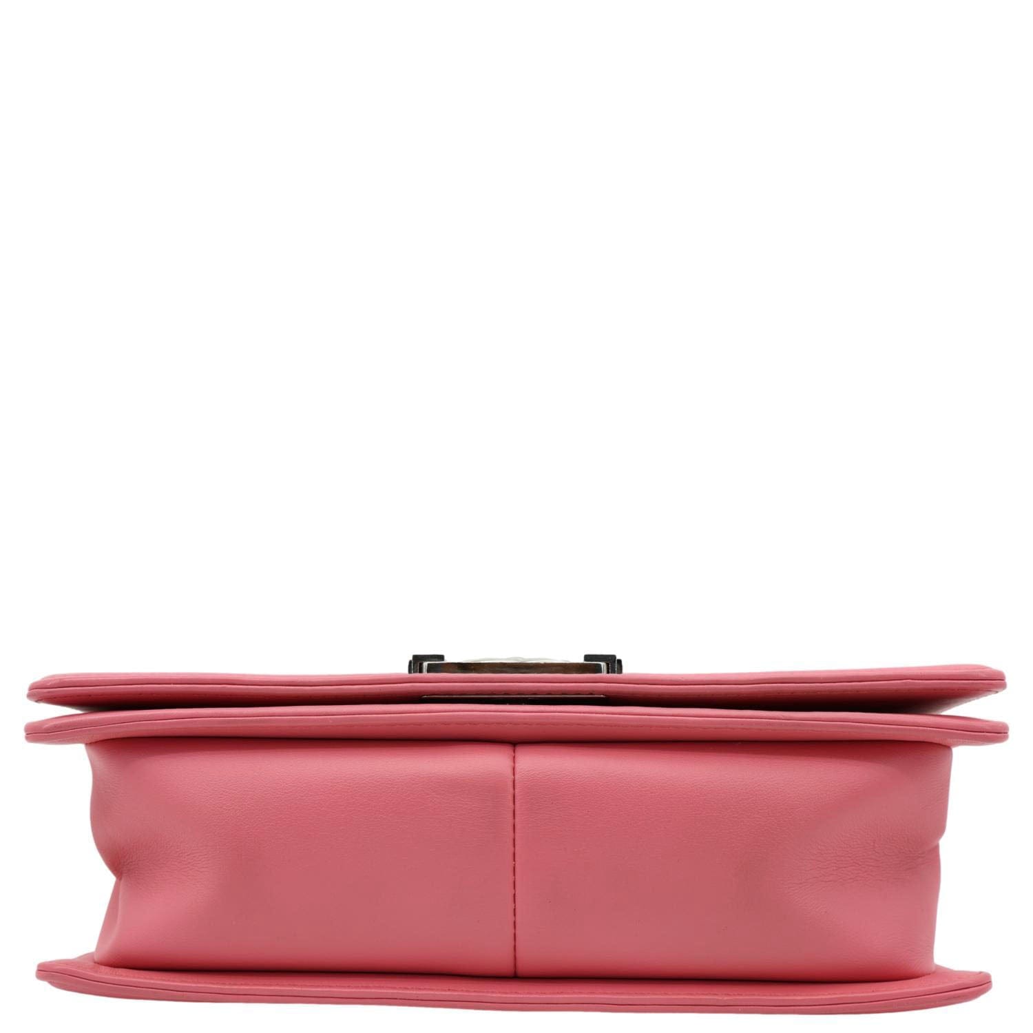 The CHANEL Boy Flap Old Medium Crossbody Bag in pink chevron‑quilted leather features a softly structured silhouette with tonal quilting and bold gunmetal hardware, including the signature Boy clasp. This romantic and elegant piece blends vintage-inspired charm with modern practicality, perfect for day-to-night wear.
