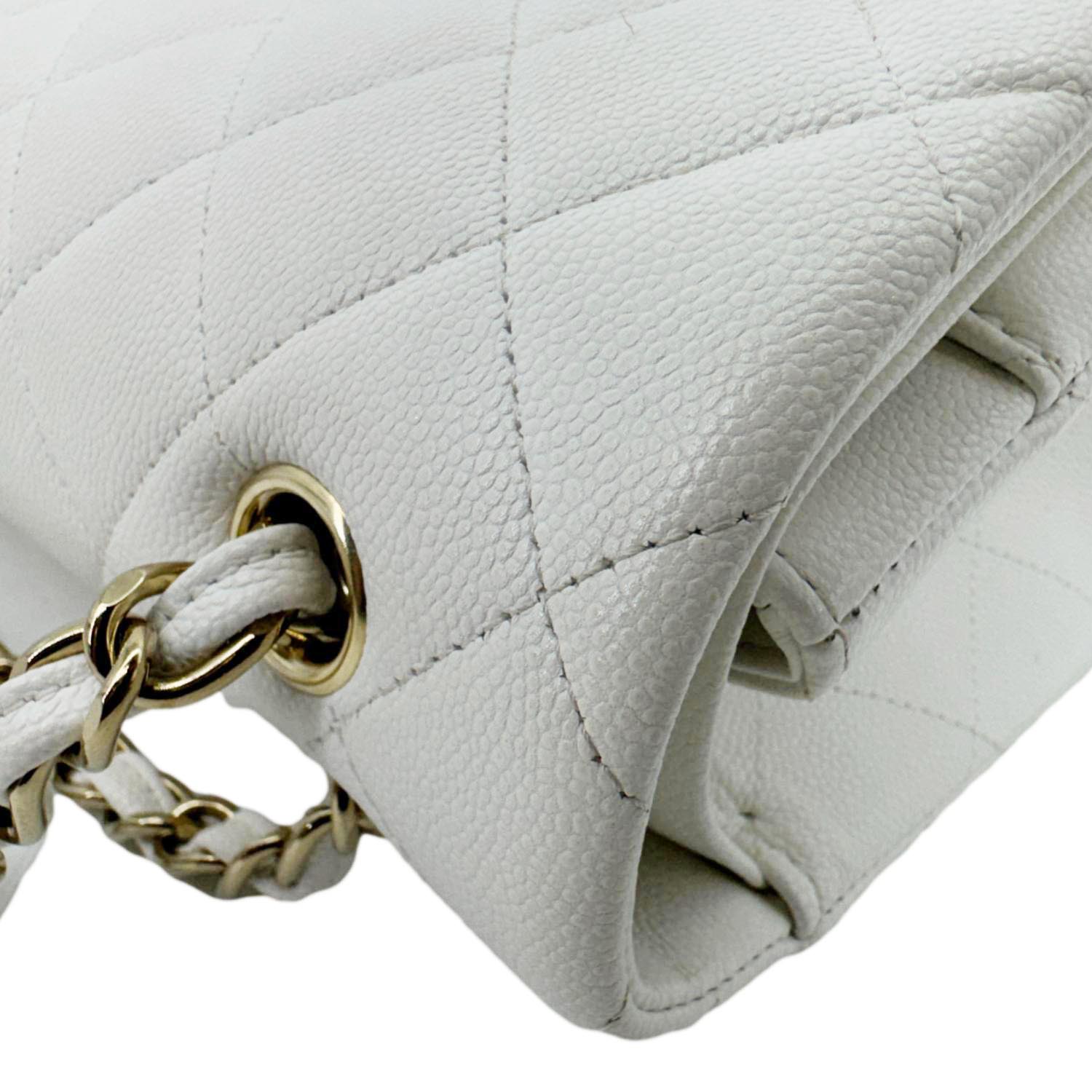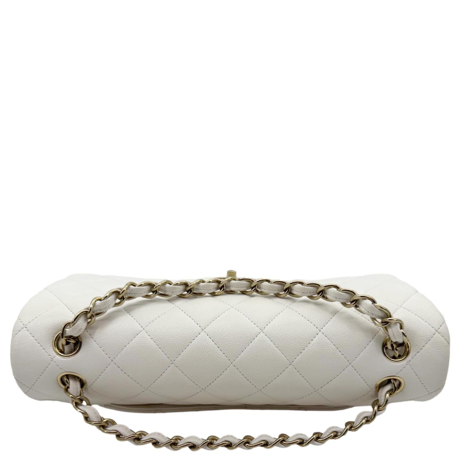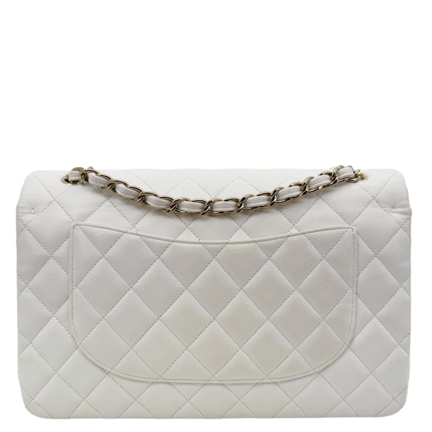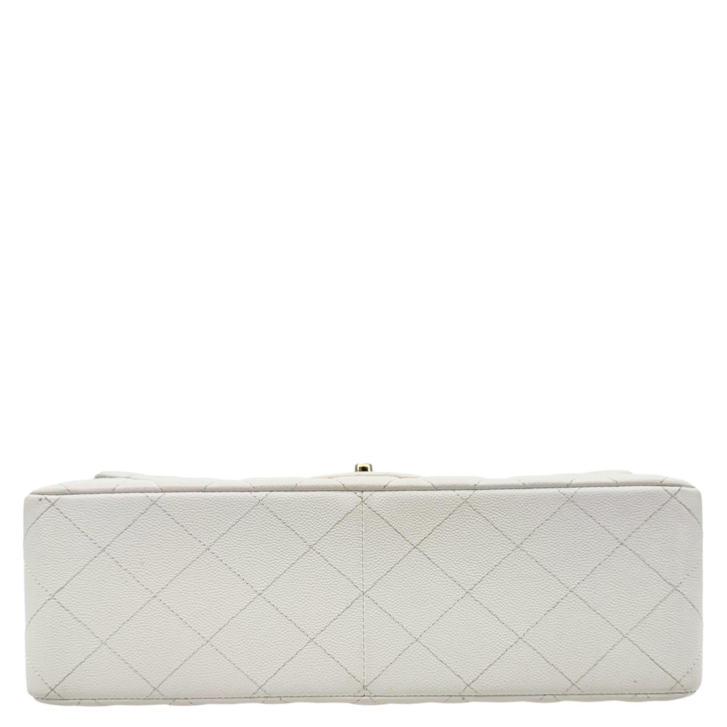 CHANEL Classic Double Flap Quilted Caviar Leather Shoulder Bag White