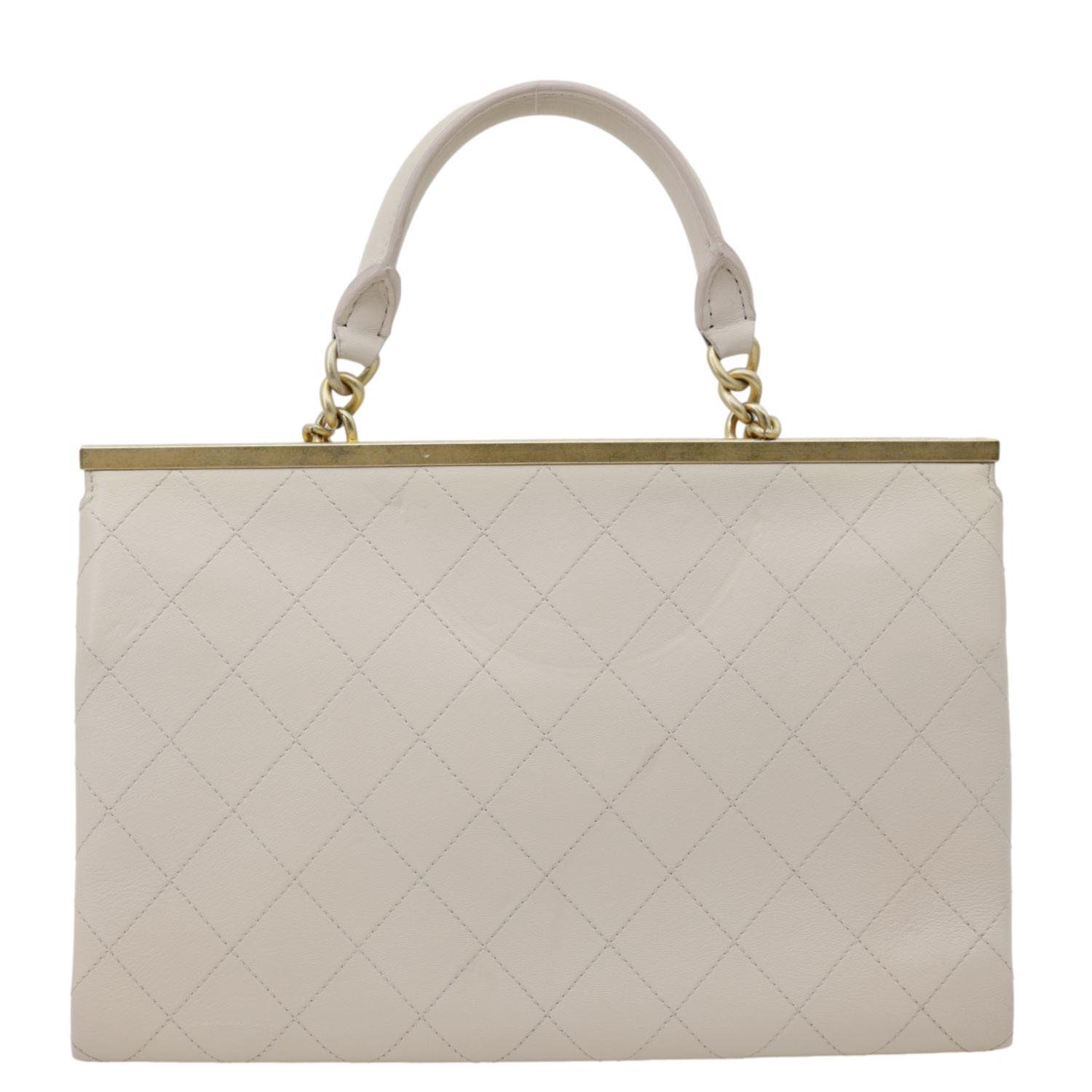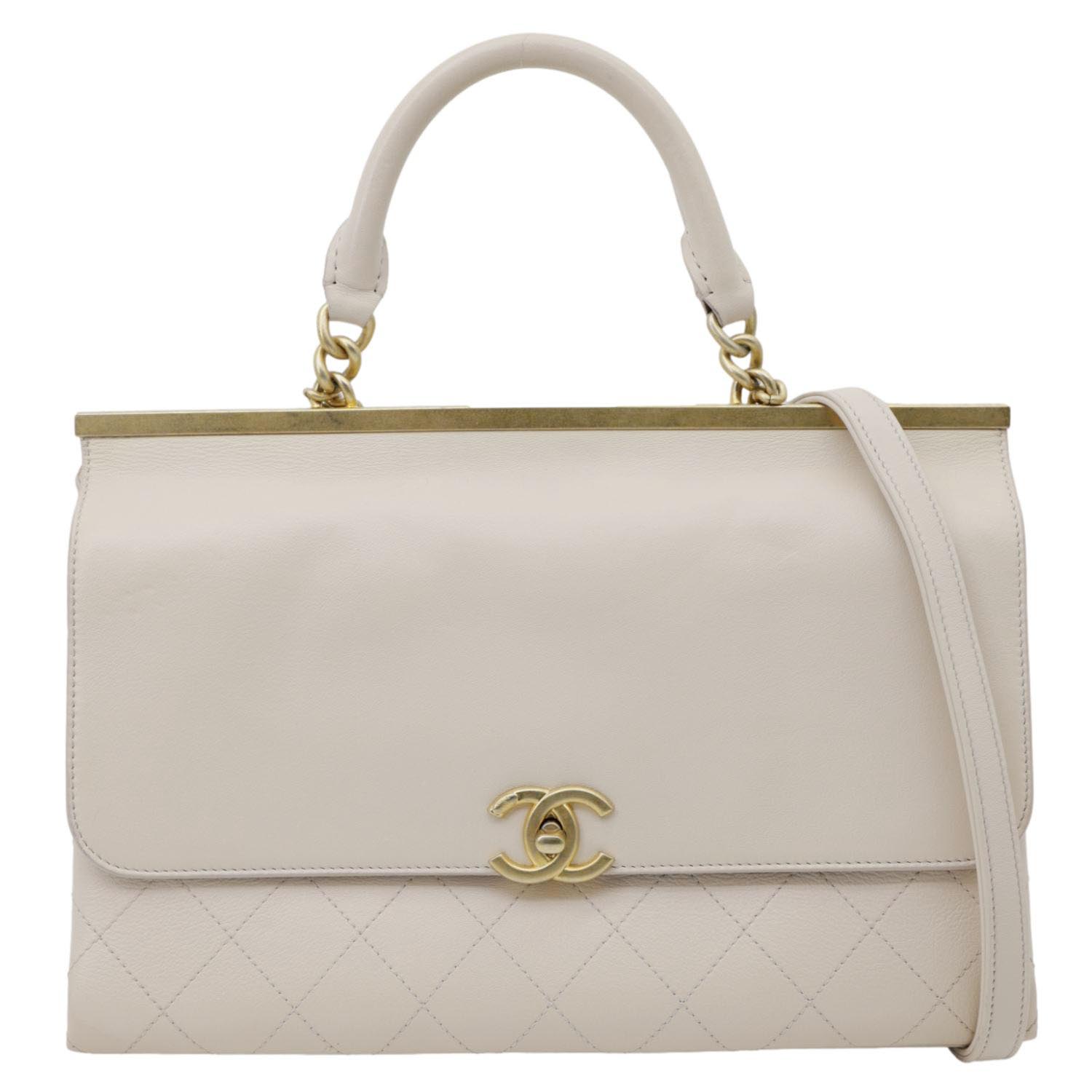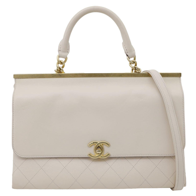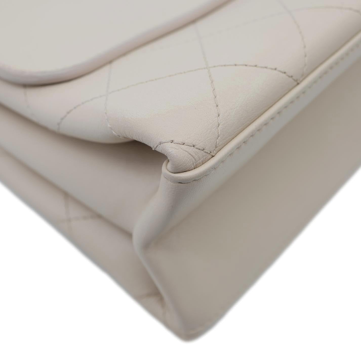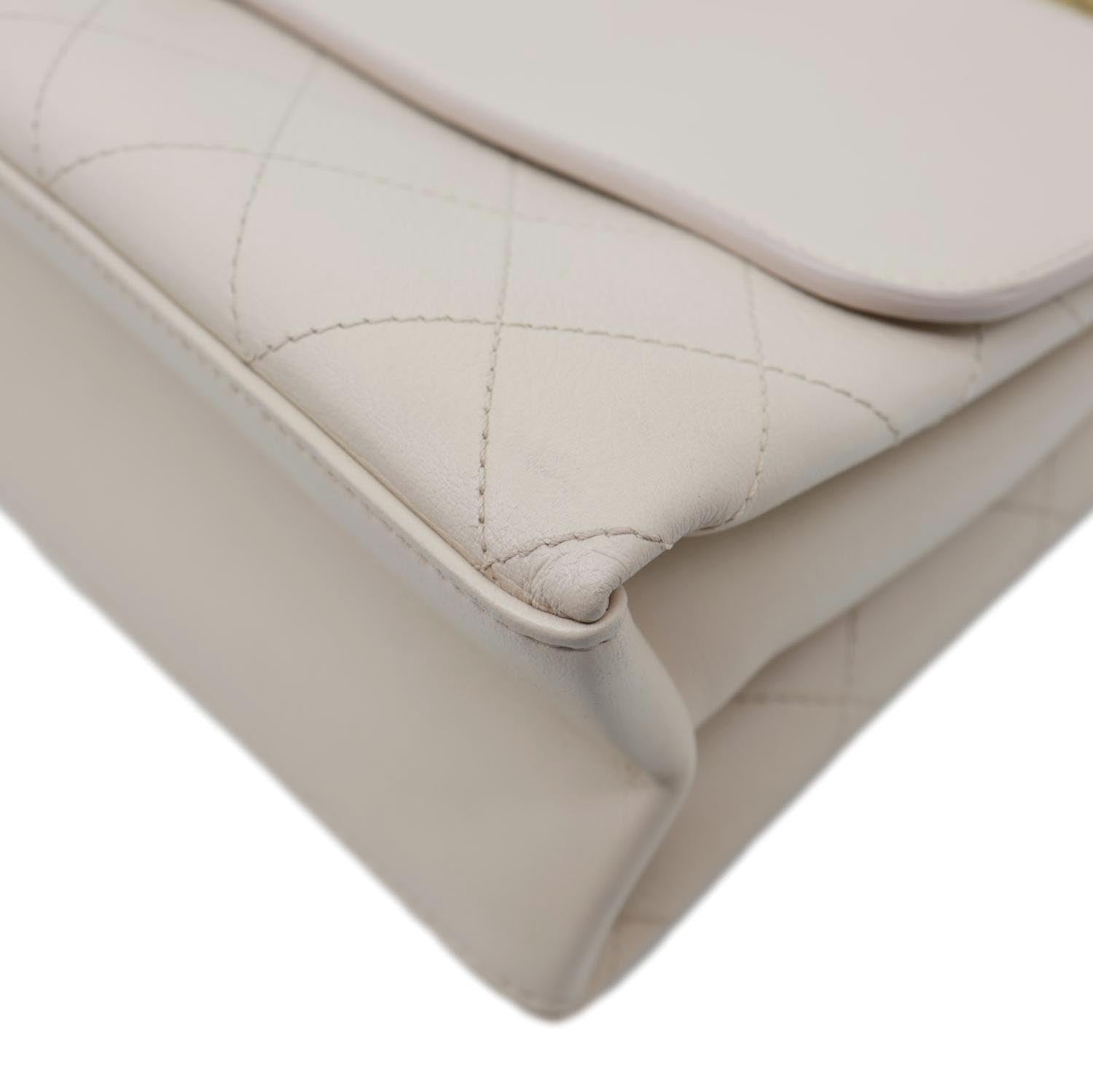 CHANEL Coco Luxe Flap Quilted Lambskin Leather Top Handle Shoulder Bag Off White