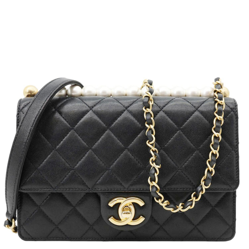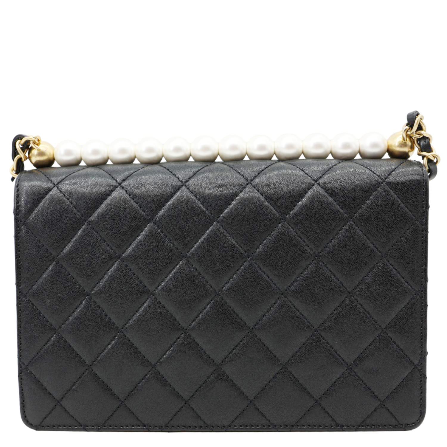 CHANEL Chic Pearls Flap Small Quilted Leather Shoulder Bag Black
