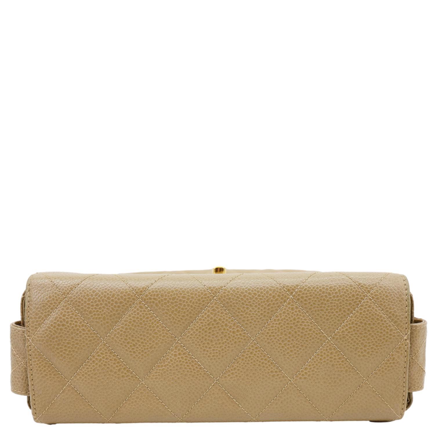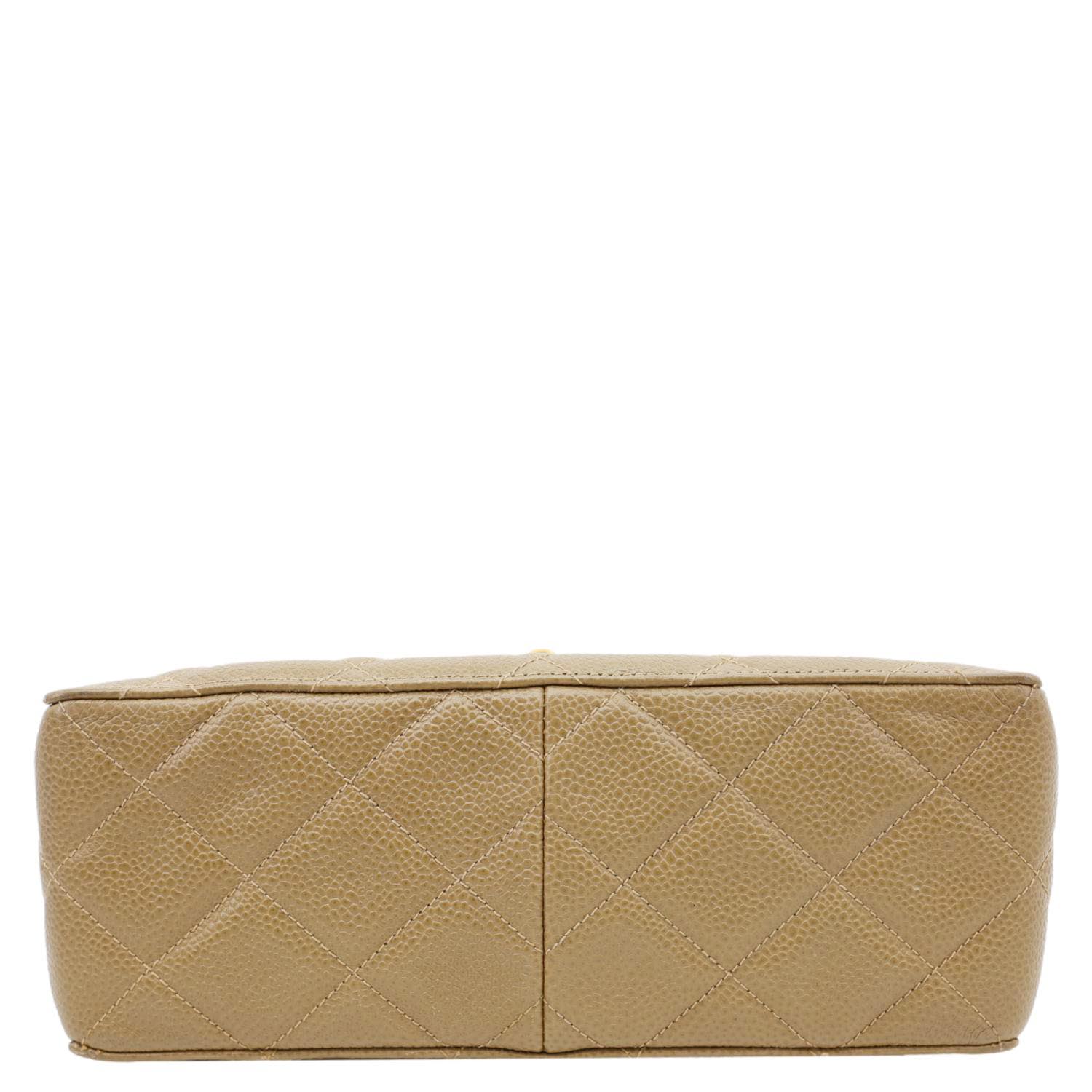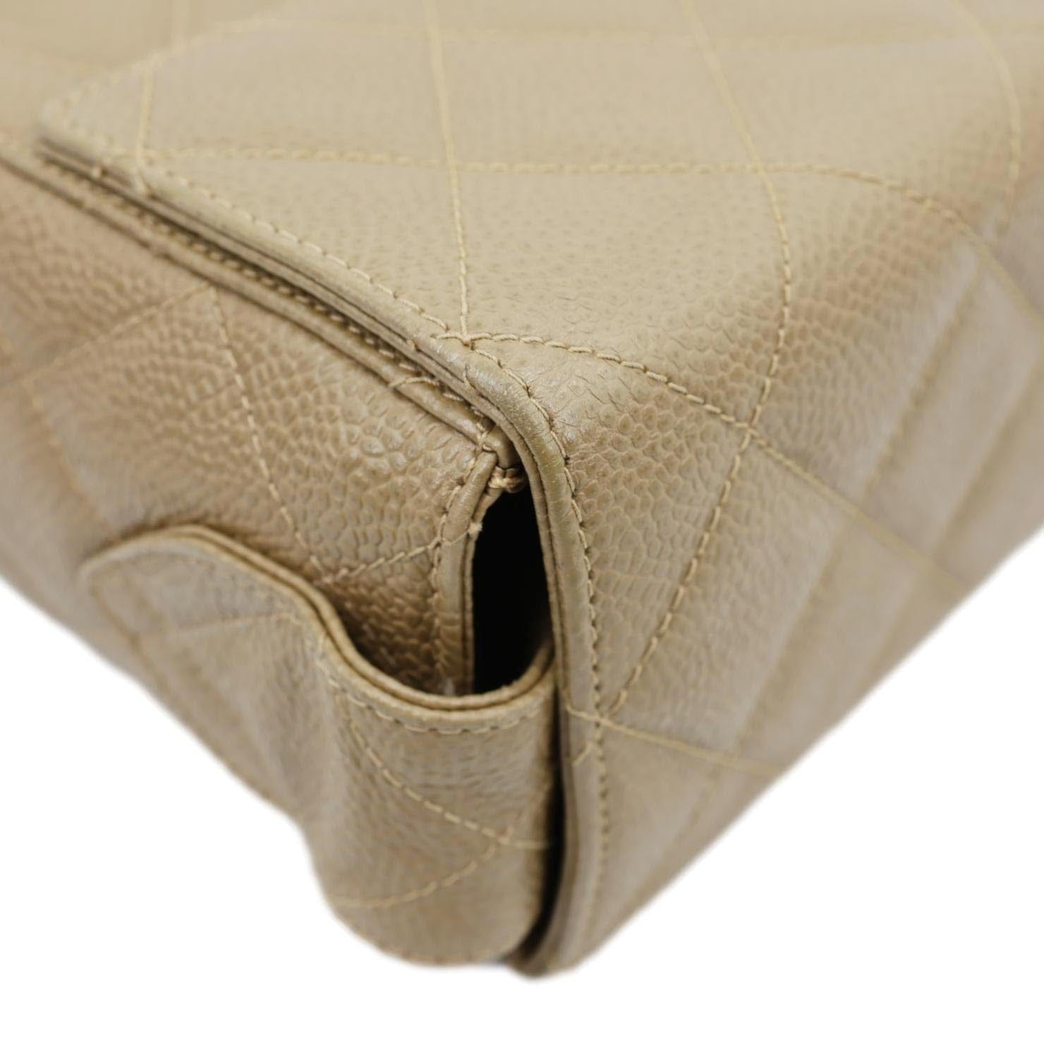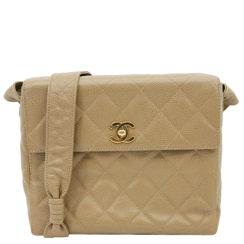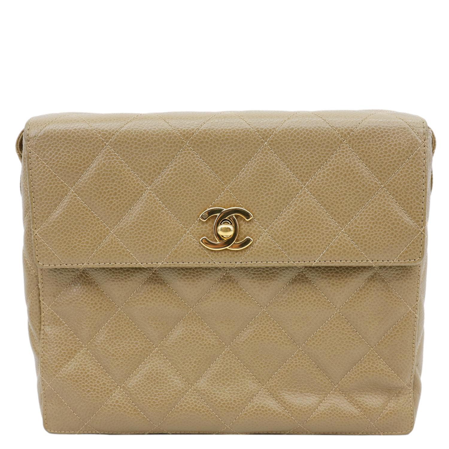 Straight Flap Quilted Caviar Leather Shoulder Bag Sand Beige