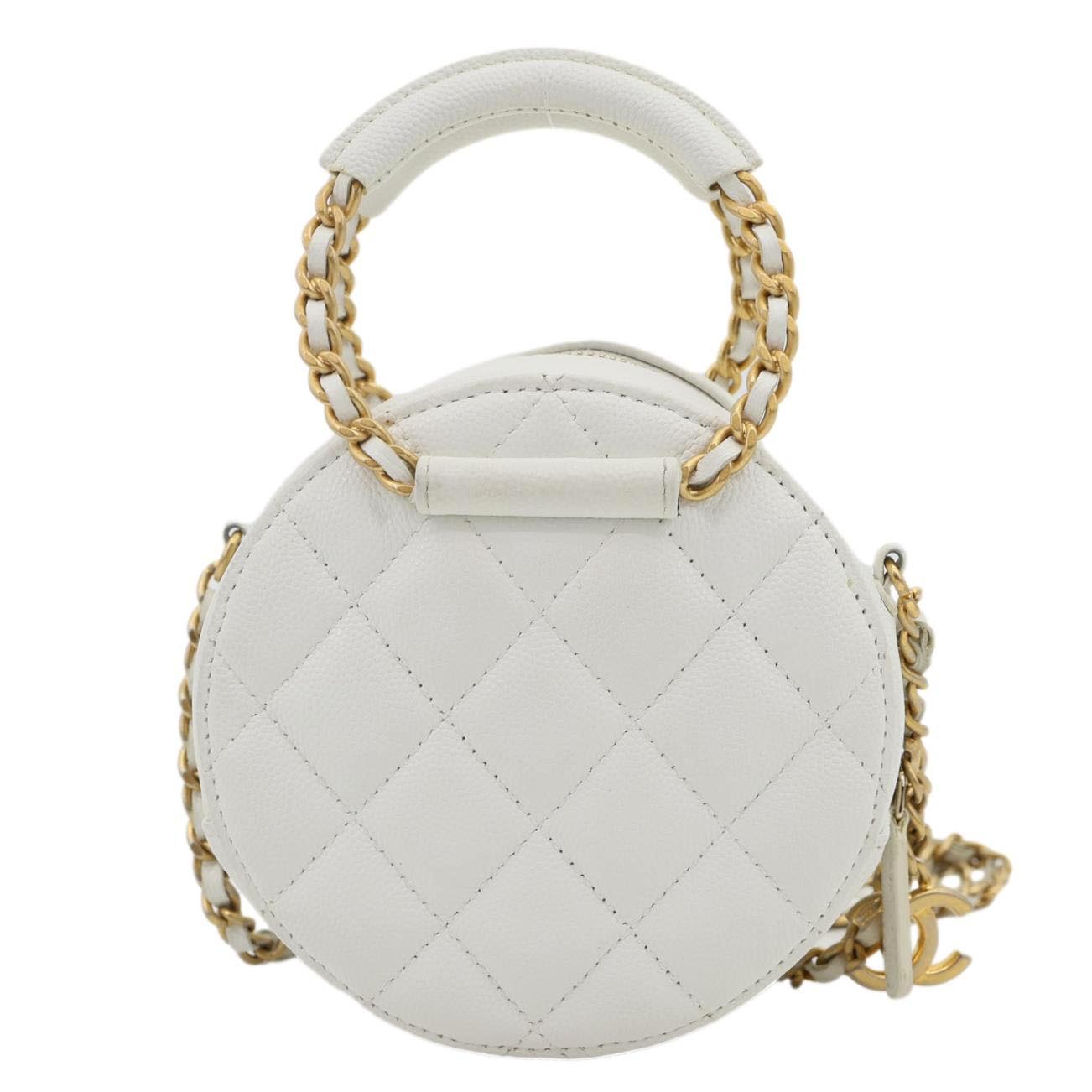 In The Loop Round Caviar Leather Clutch Crossbody Bag White