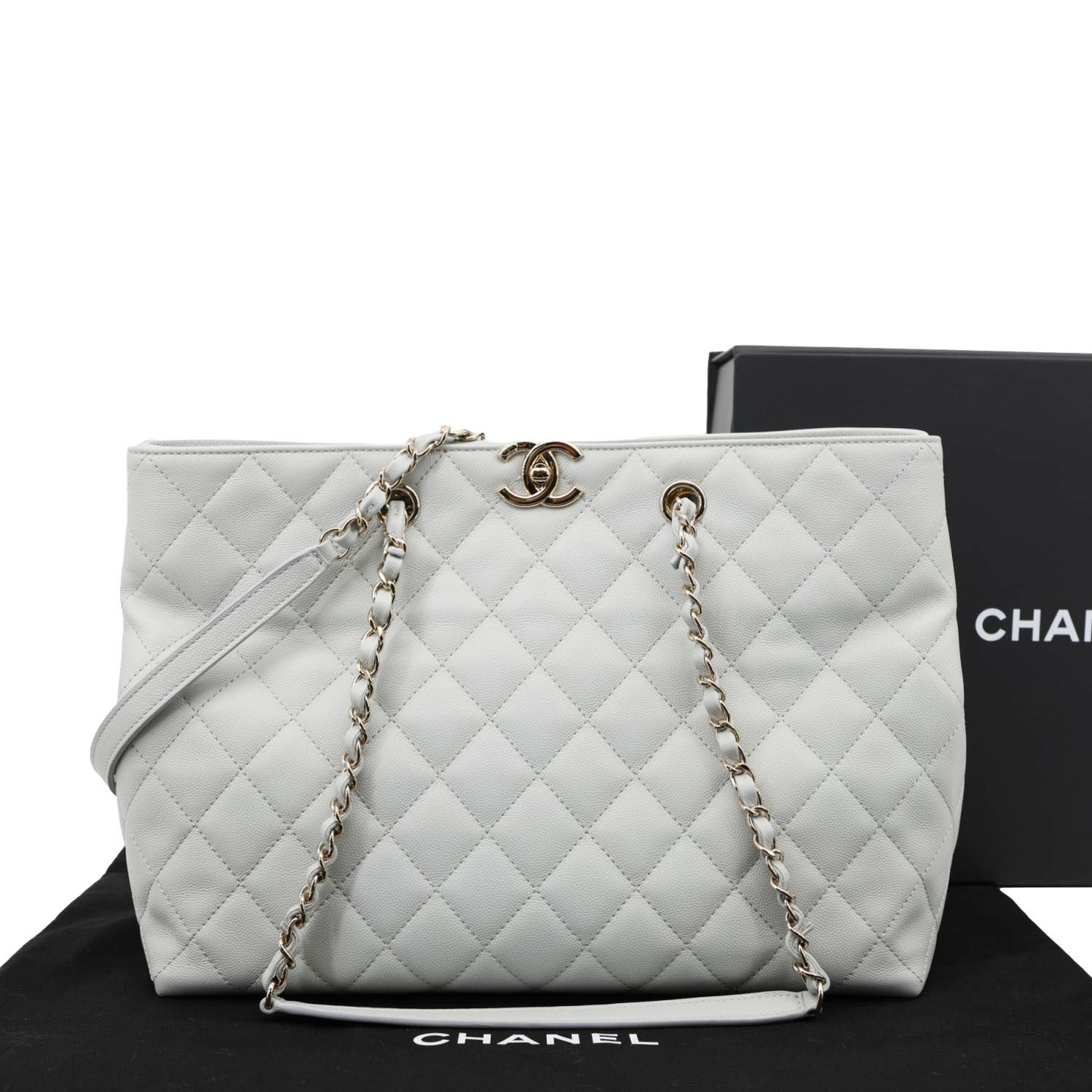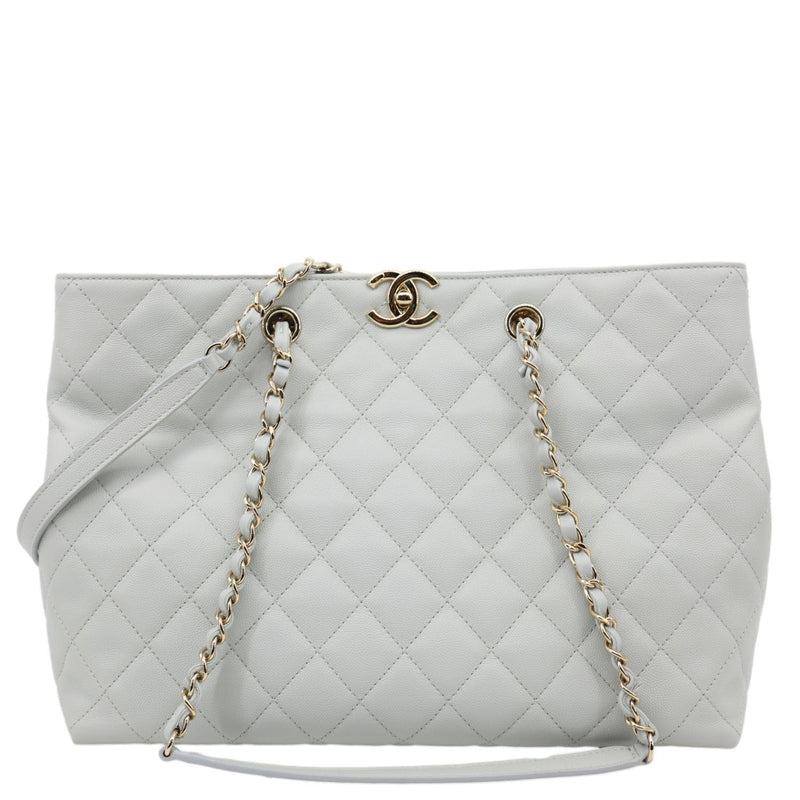 CHANEL Large Quilted Leather Shopping Tote Bag Ice Blue