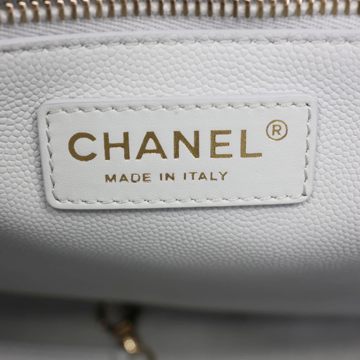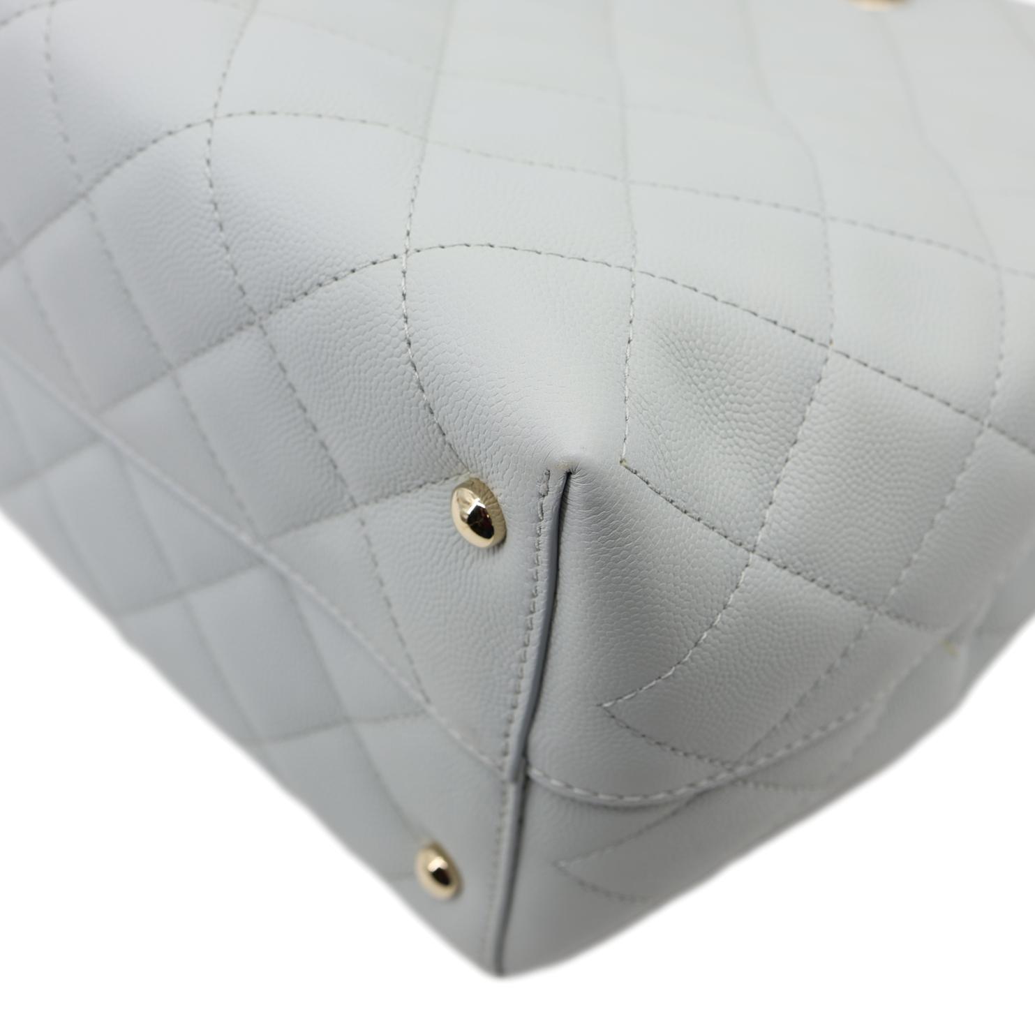 Crafted in soft quilted leather, this spacious tote reflects CHANEL’s signature elegance with an ice blue finish. It offers ample storage, sturdy leather handles, and refined detailing for everyday sophistication. Perfect for carrying essentials in timeless luxury.