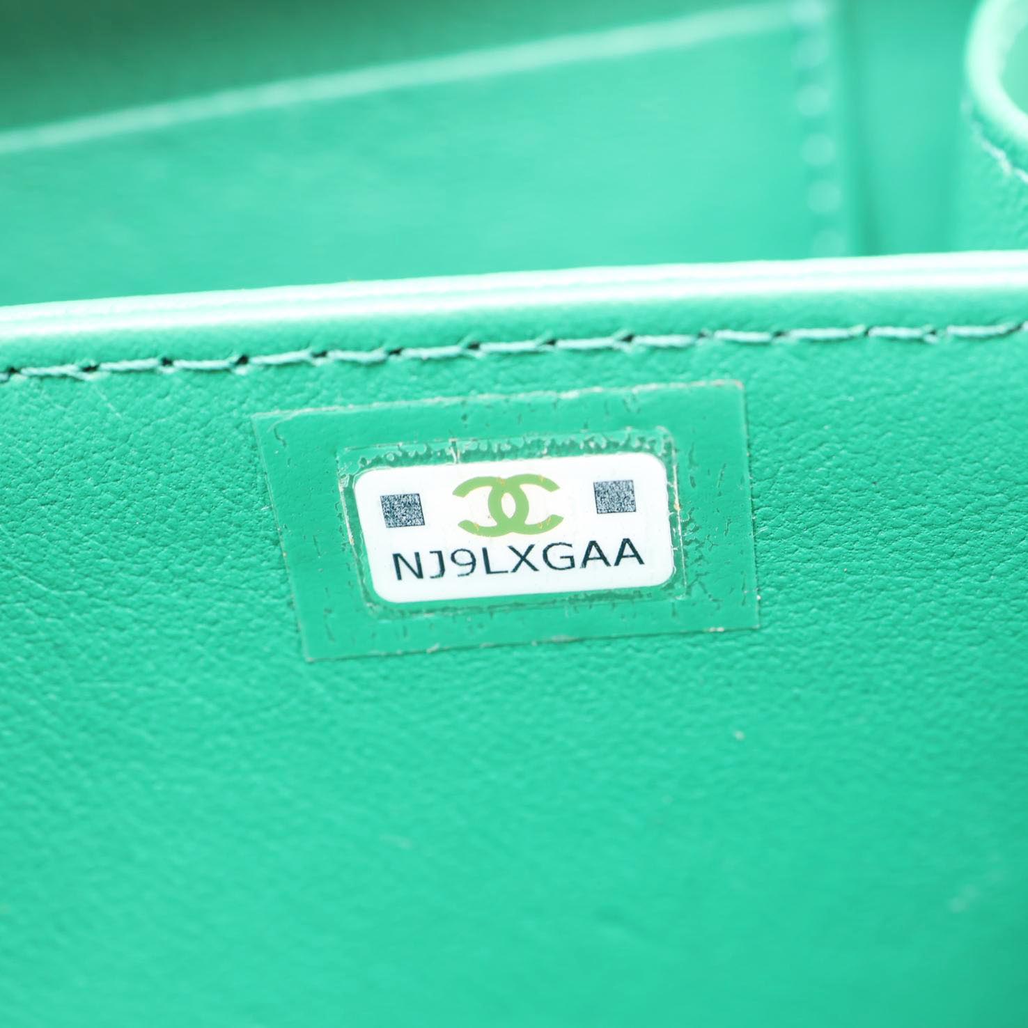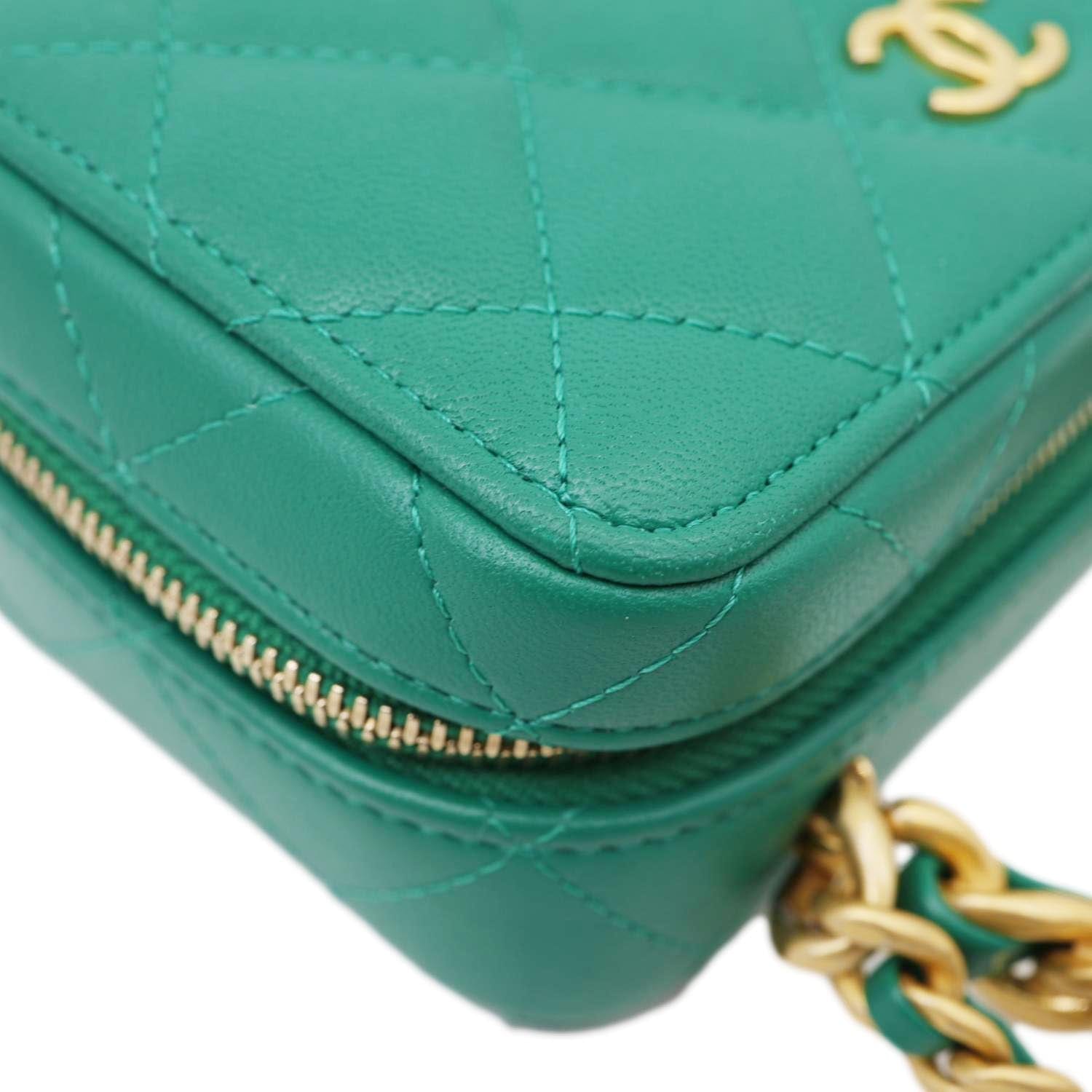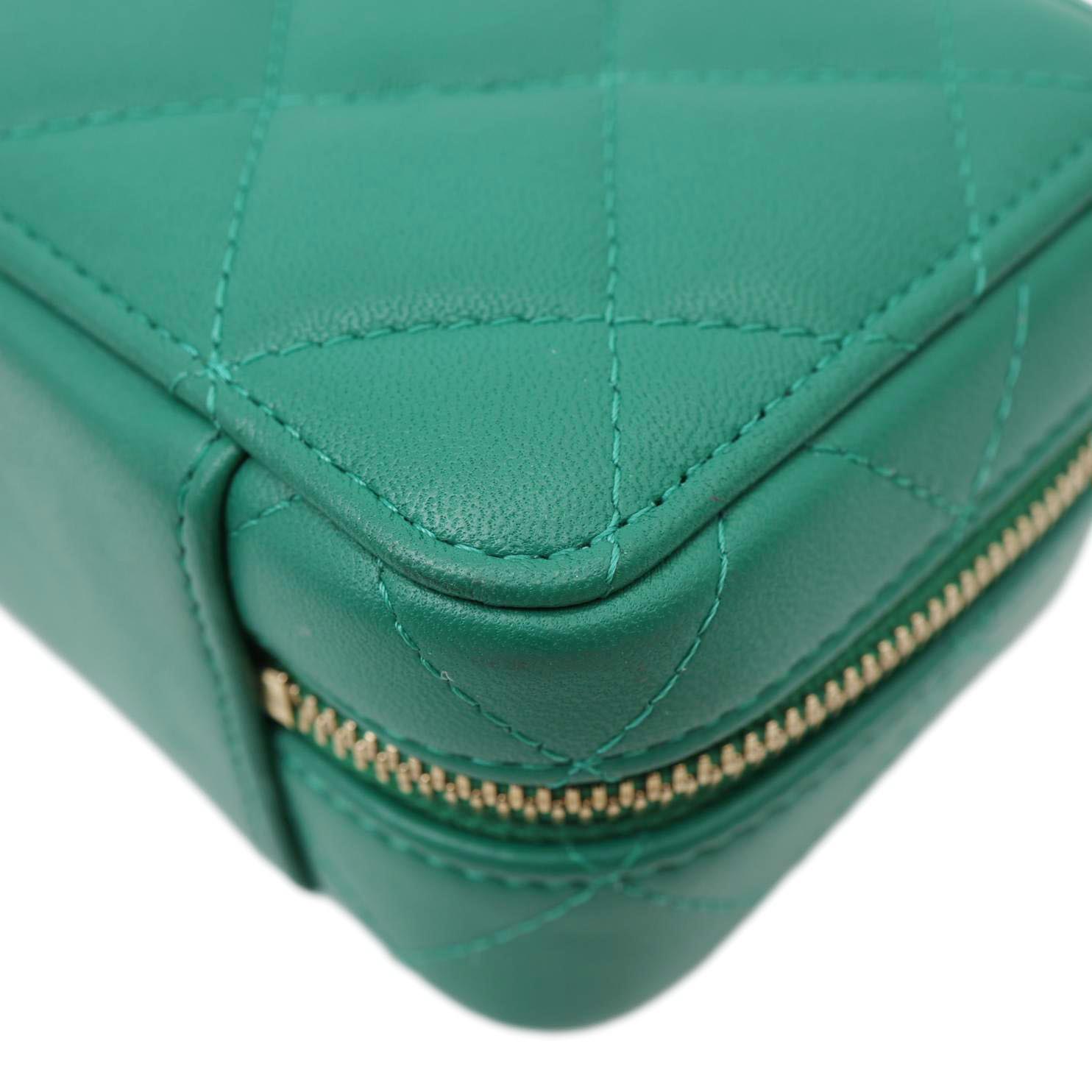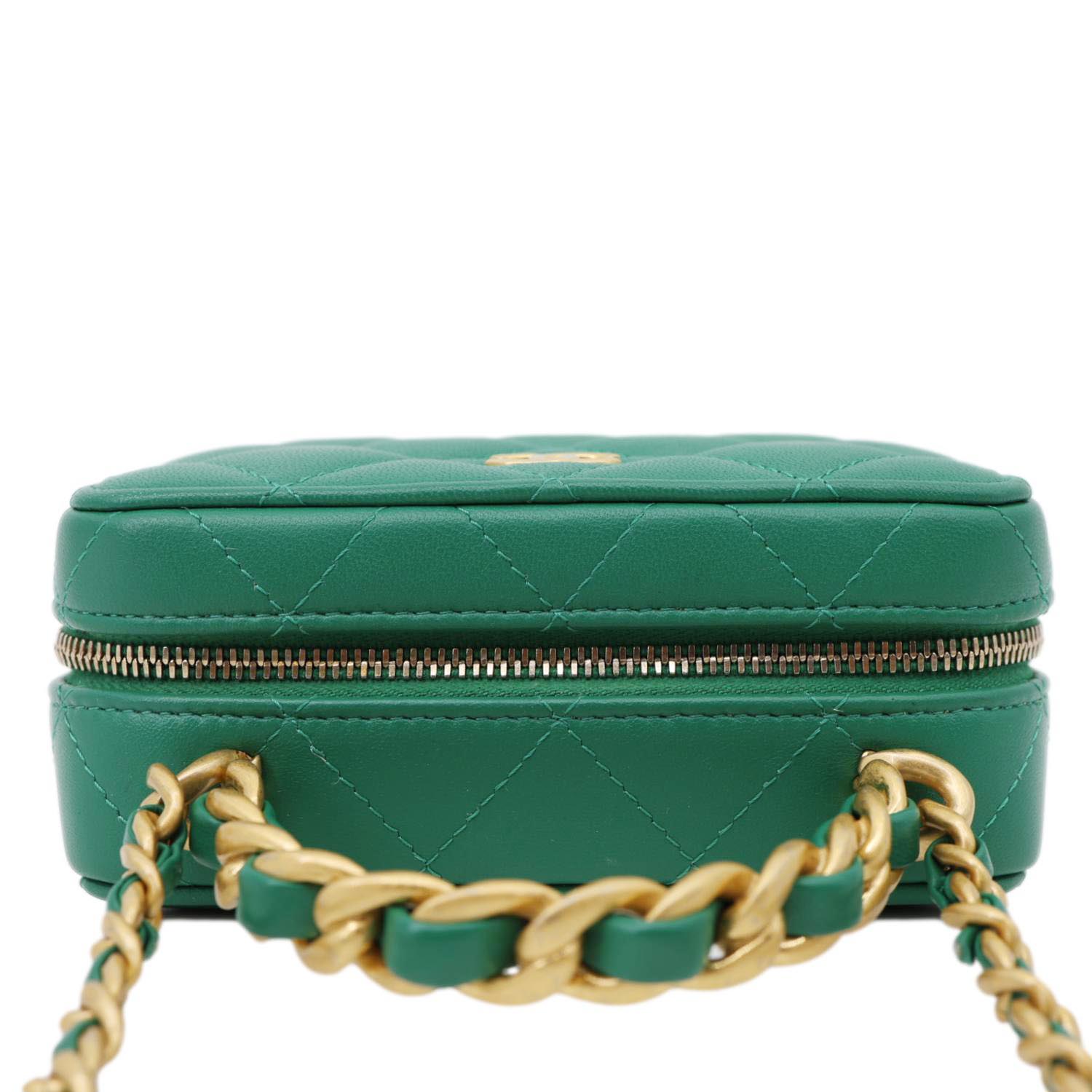 CHANEL Tea Afternoon Quilted Leather Chain Top Handle Vanity Case Green