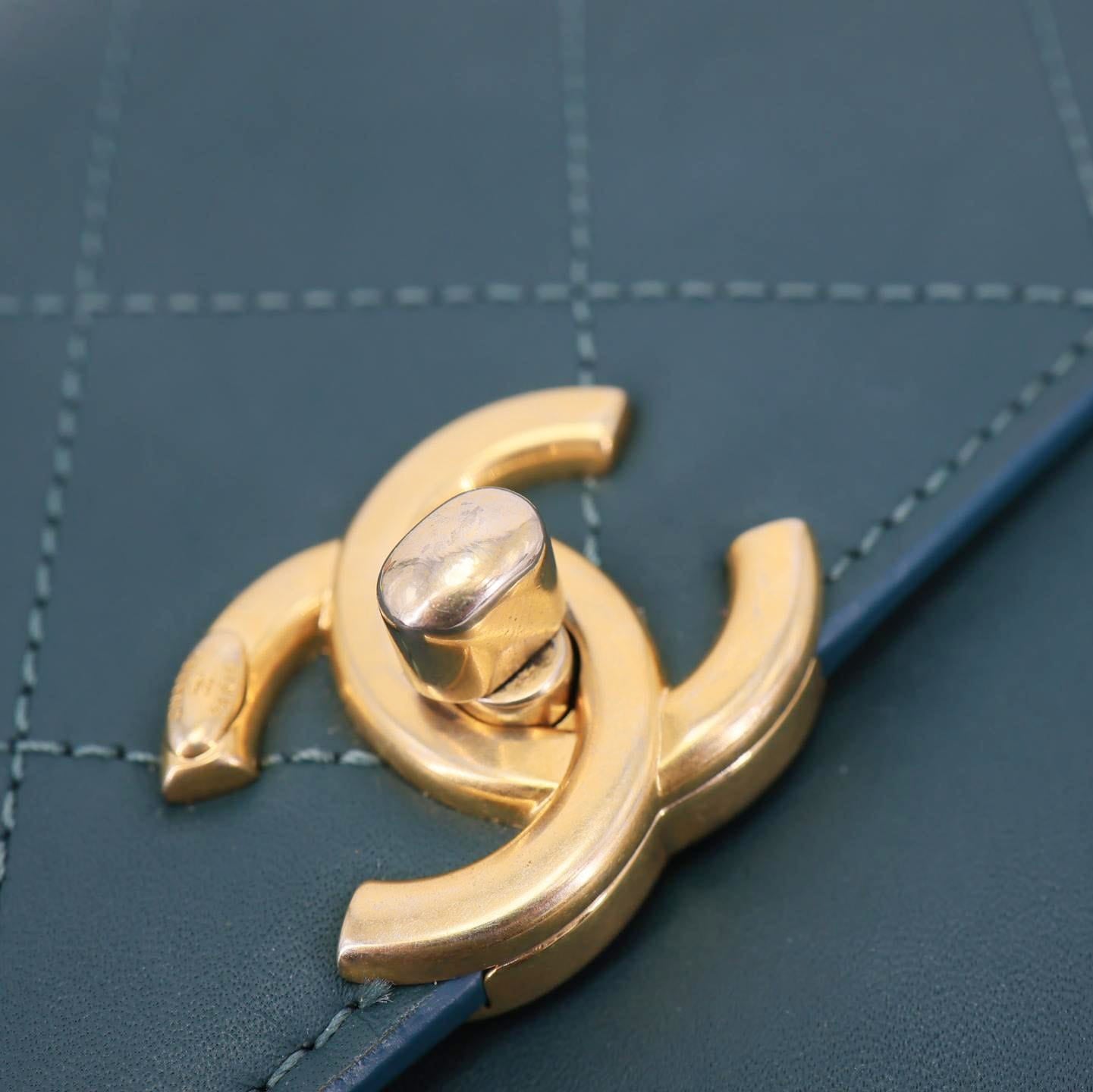The Chanel CC Stitched Flap Crossbody Bag in green calfskin leather is a timeless and elegant piece. Crafted from soft yet durable leather, it features the iconic stitched CC logo and a classic flap design. The compact crossbody style makes it perfect for both everyday wear and special occasions, while the rich green color adds a unique and sophisticated touch.