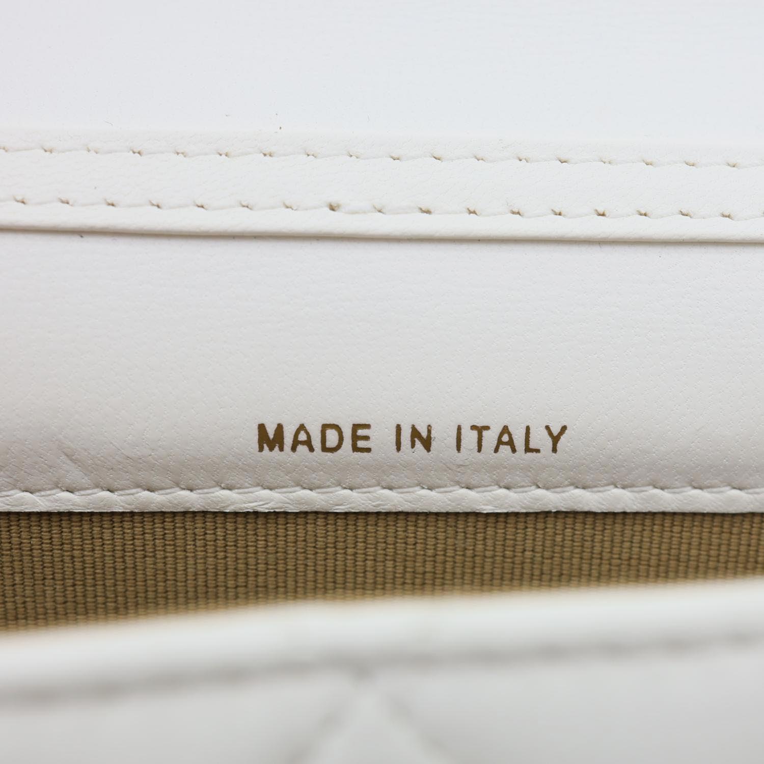 Classic and elegant in white quilted lambskin leather, this Item combines soft texture with refined design. Finished with chic pearl embellishments and a sleek chain strap, it’s a luxurious statement clutch perfect for evening and special occasions.