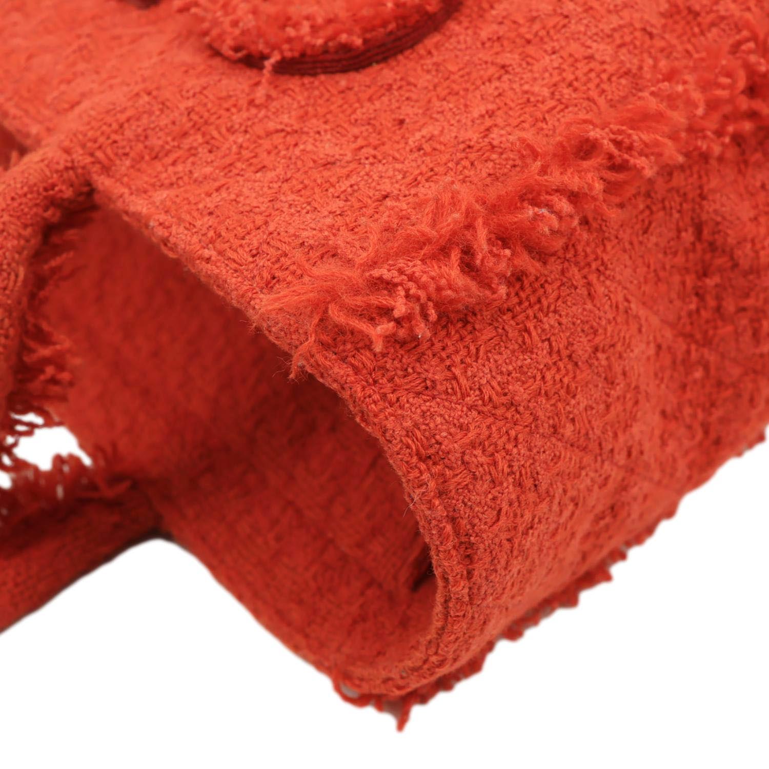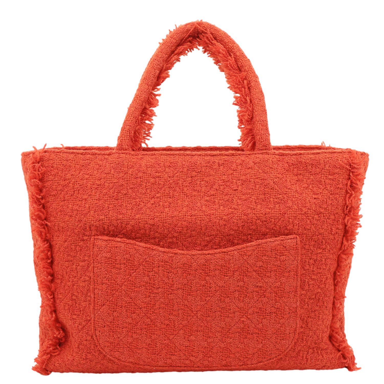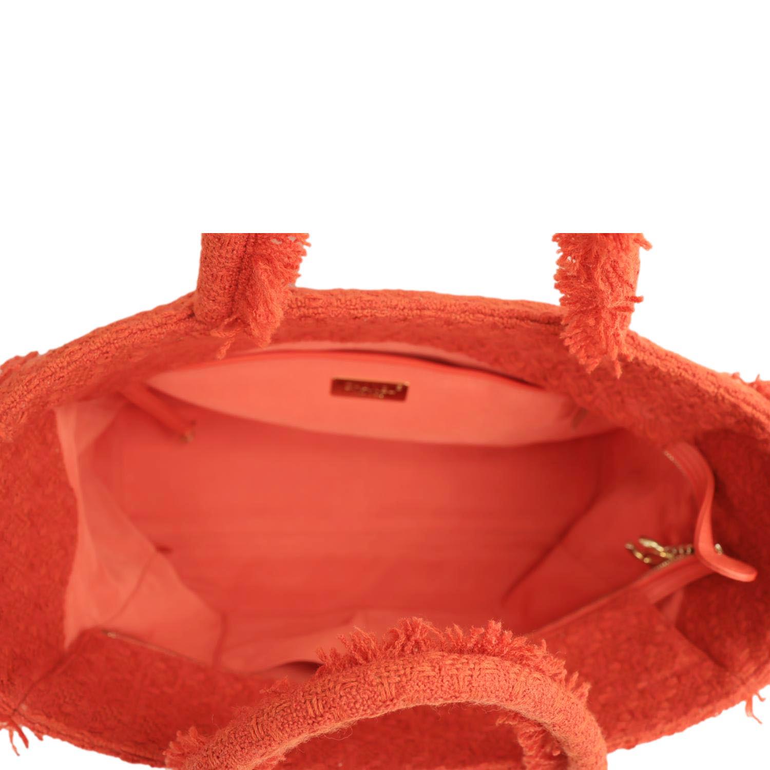 CHANEL Giant Logo Tweed Shopping Tote Bag in red features a bold statement design with luxurious tweed texture. Spacious and stylish, it’s perfect for carrying daily essentials with iconic Chanel flair.