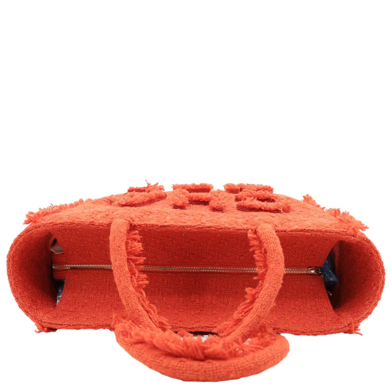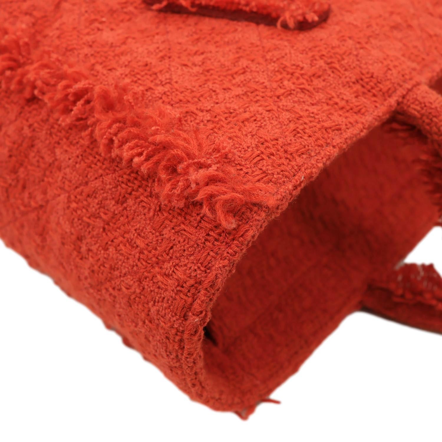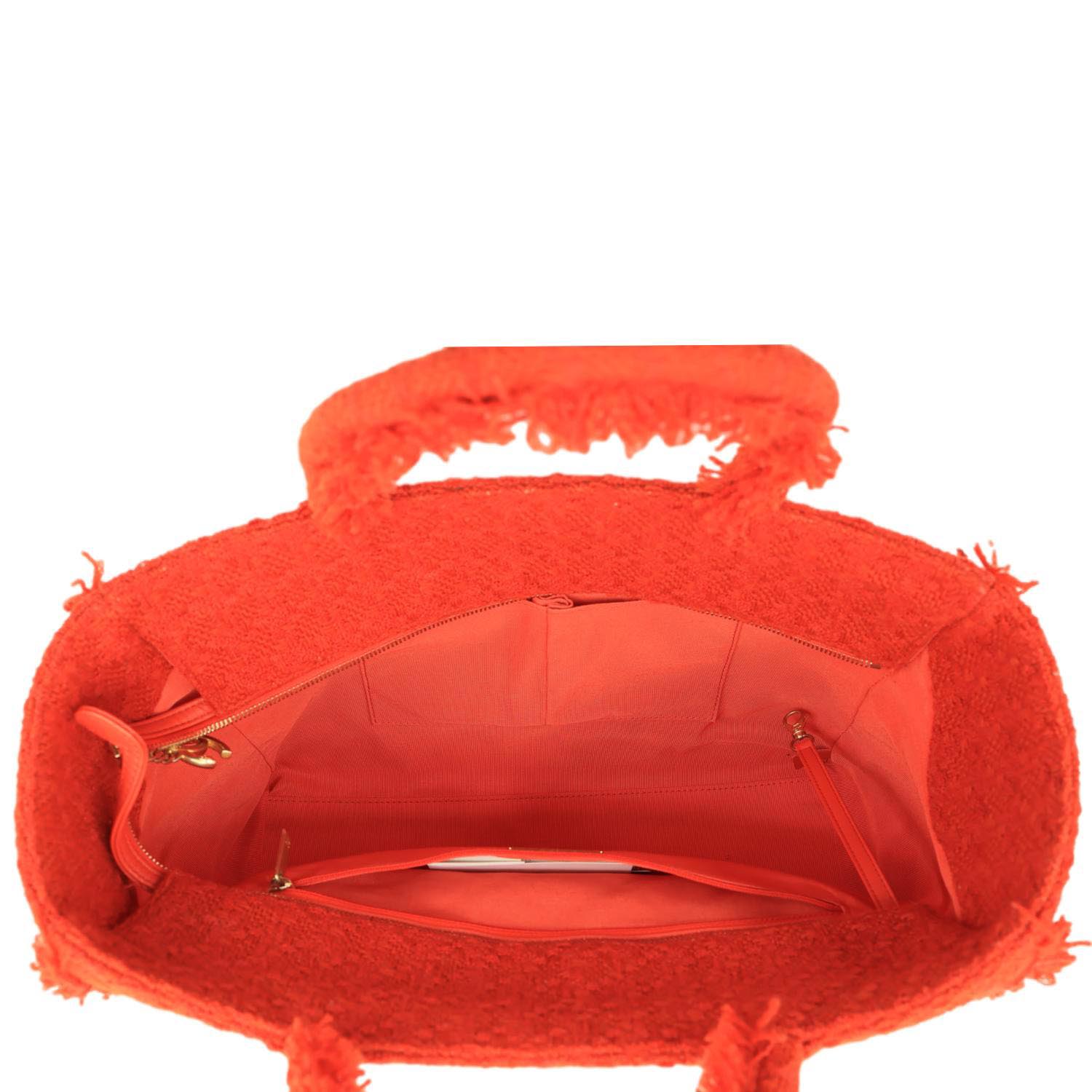 CHANEL Giant Logo Tweed Shopping Tote Bag Red