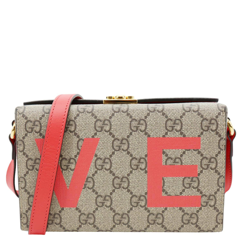 GUCCI Moon Love Valentines Day Padlock GG Supreme Canvas Shoulder Bag Beige 677610