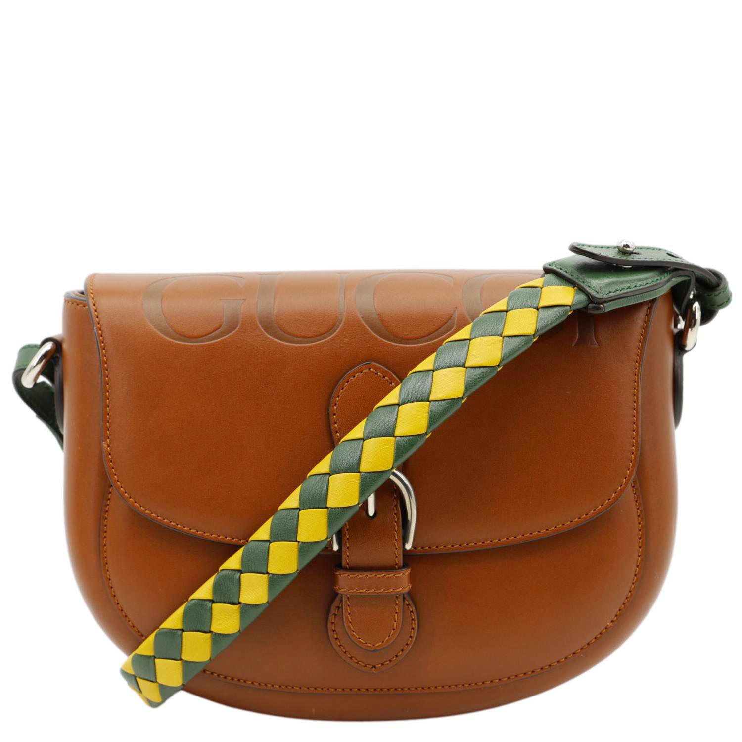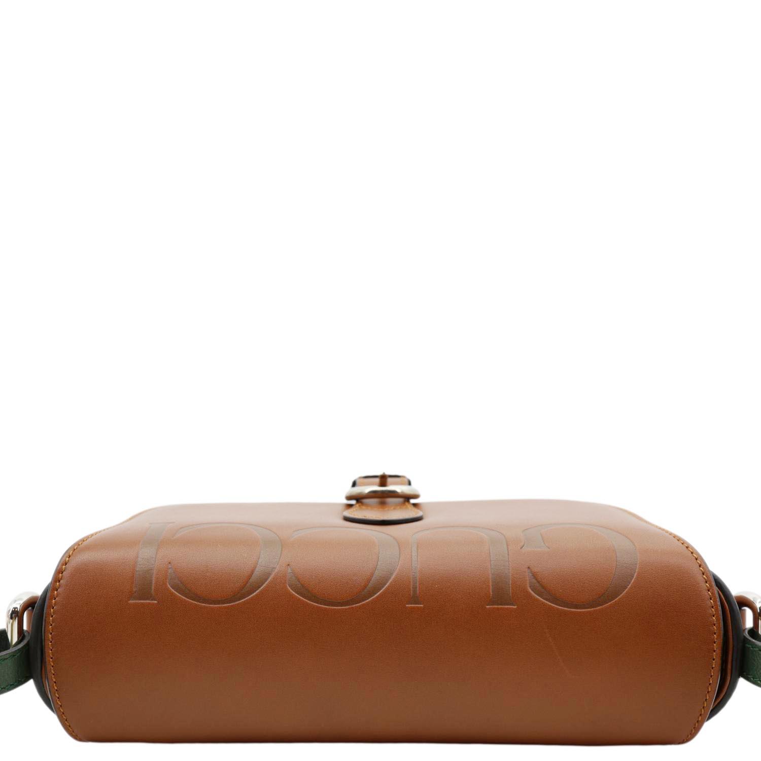 GUCCI Logo Small Embossed Calfskin Leather Shoulder Bag Brown 679540