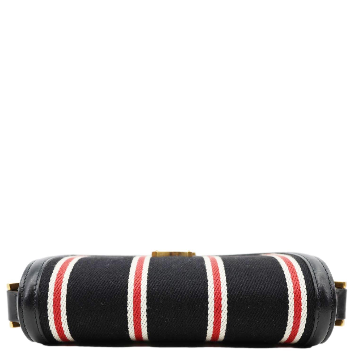 YVES SAINT LAURENT Solferino Striped Canvas Shoulder Bag Black