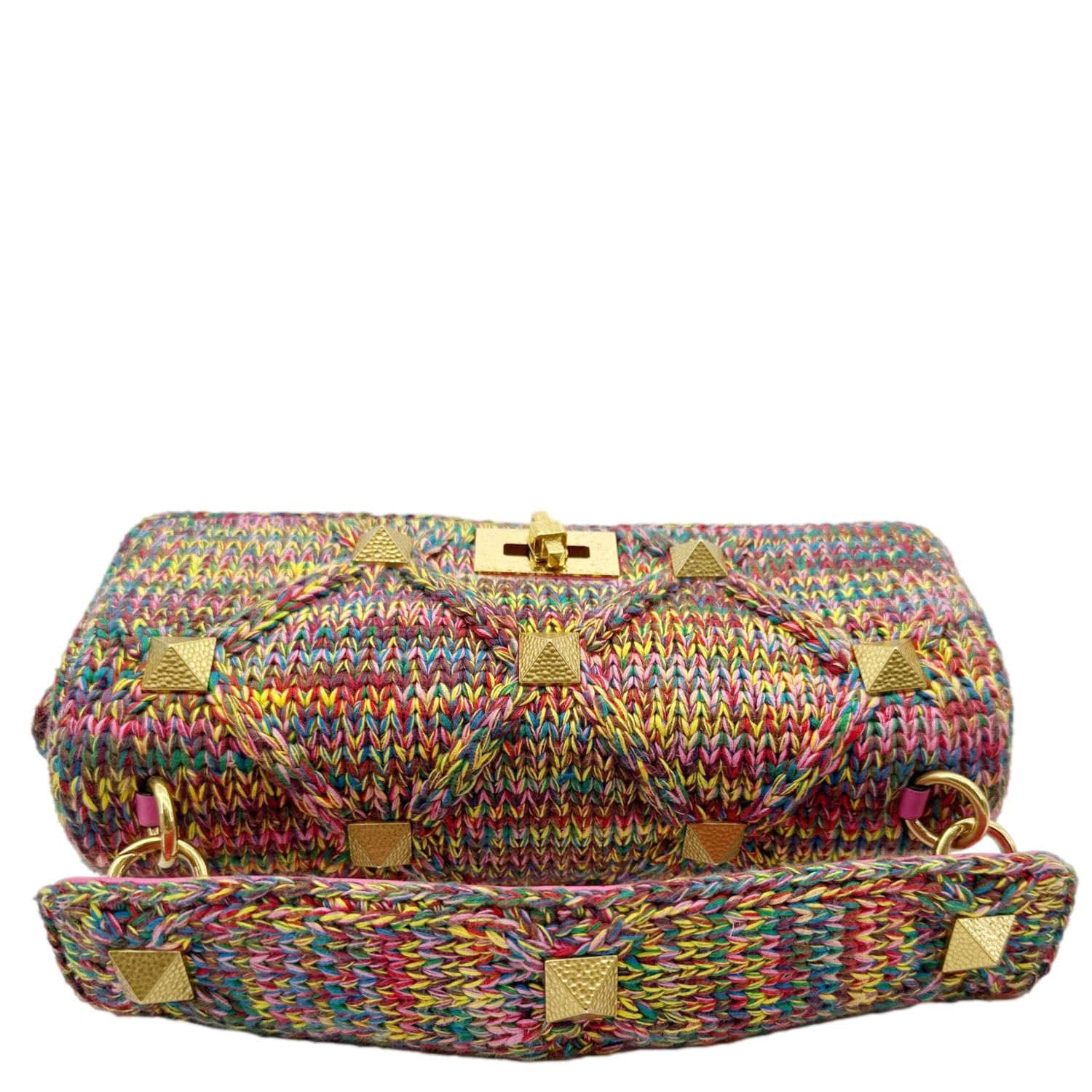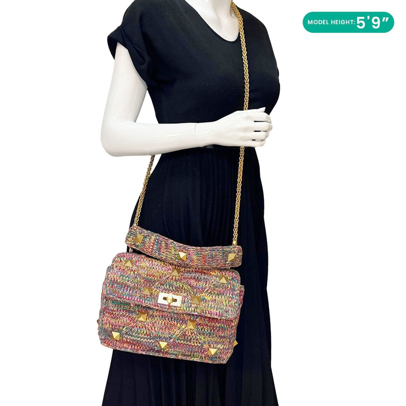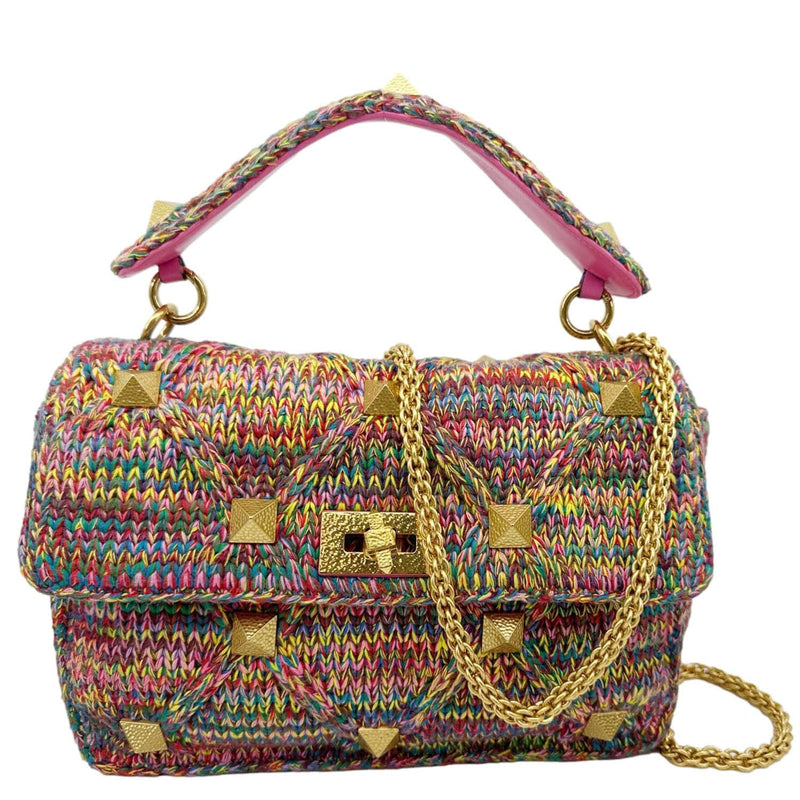 VALENTINO Roman Stud Woven Wool Crossbody Bag Feminine Pink