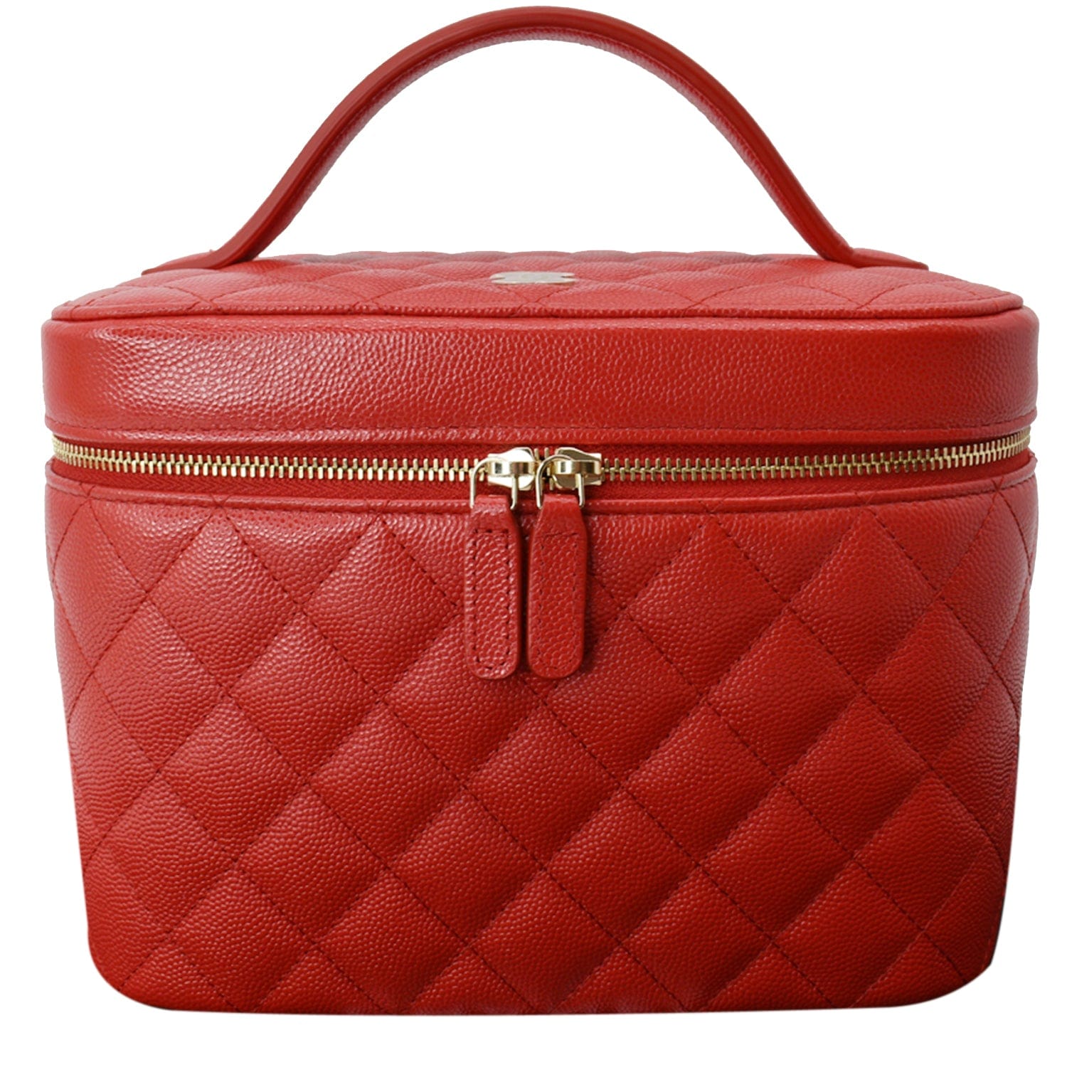 CHANEL Caviar Leather Quilted Large Cosmetic Vanity Pouch Red