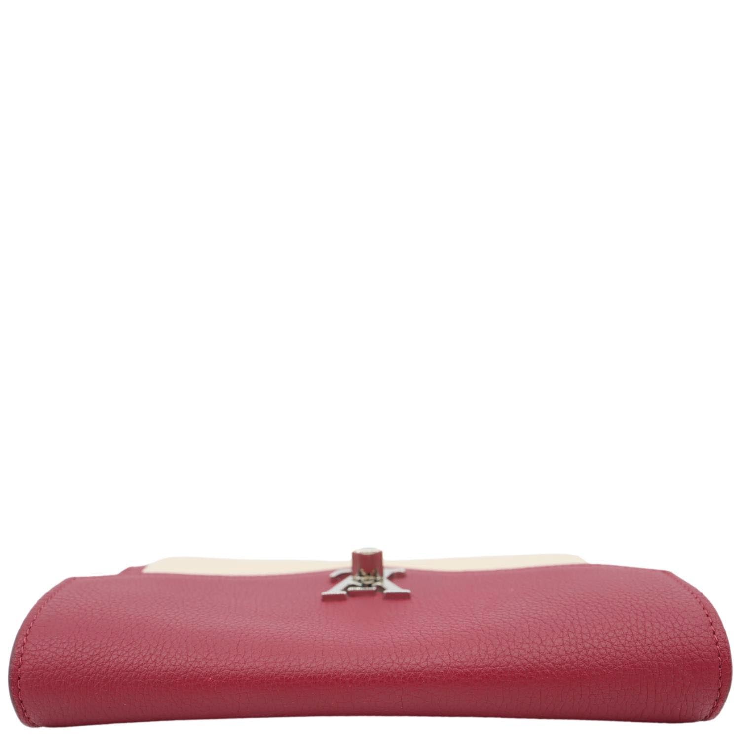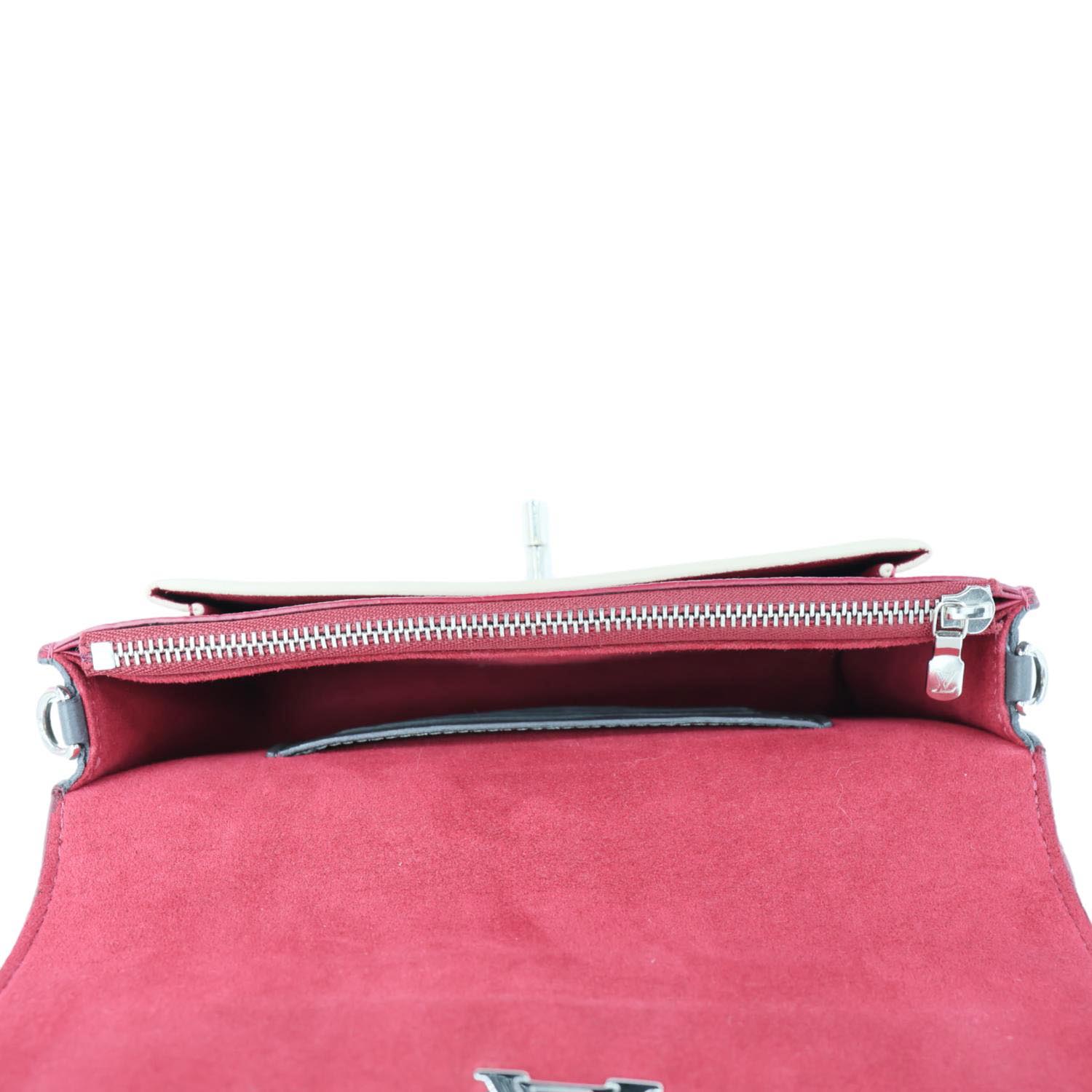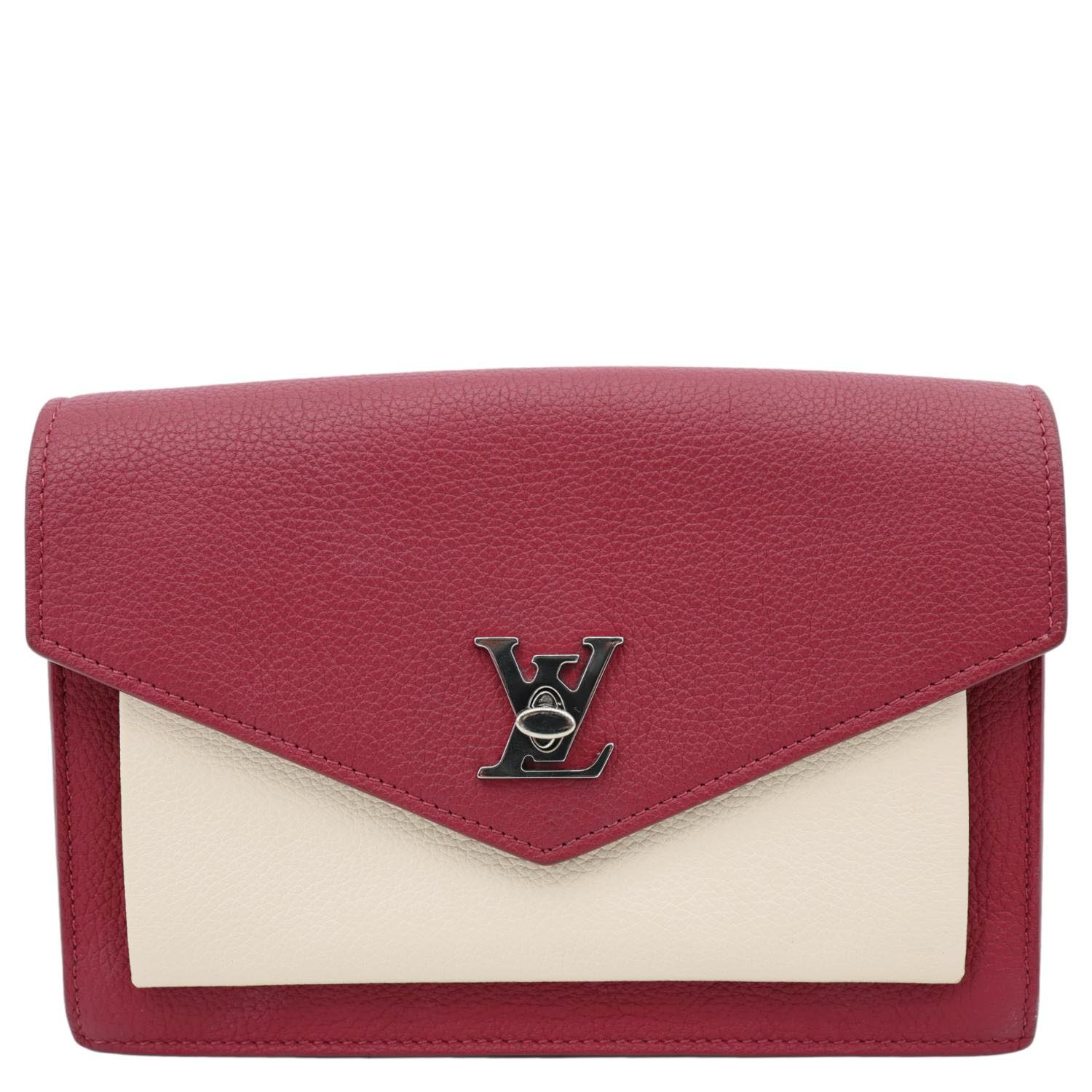 The LOUIS VUITTON Mylockme Leather Chain Crossbody Bag in Red features sleek grained leather with a modern LV twist-lock. Compact, chic, and perfect for adding a bold luxury touch to any look.