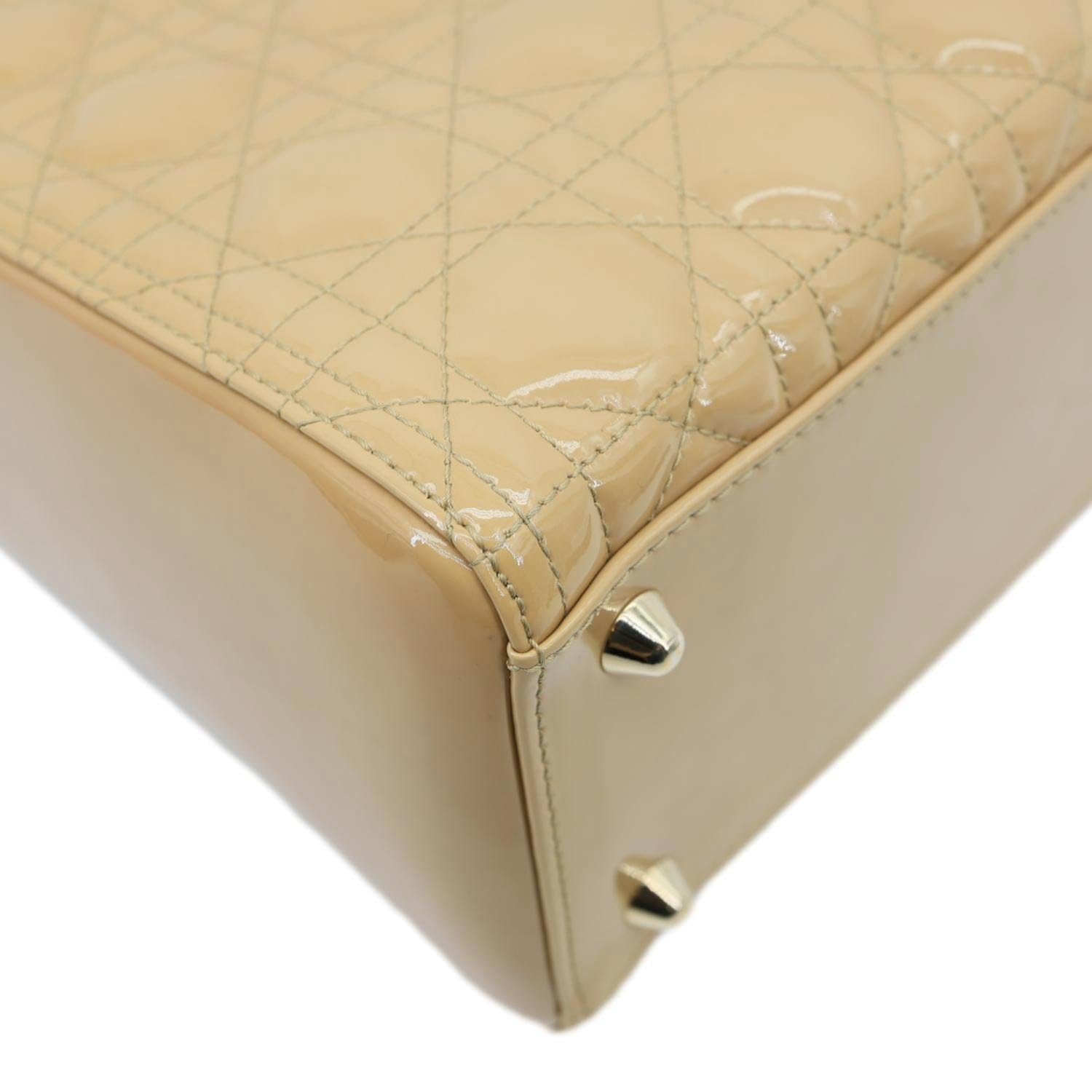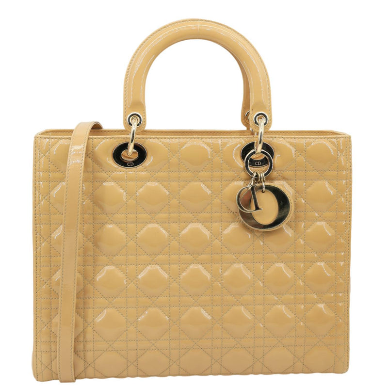 Lady Dior Large Quilted Patent Leather Shoulder Bag Camel