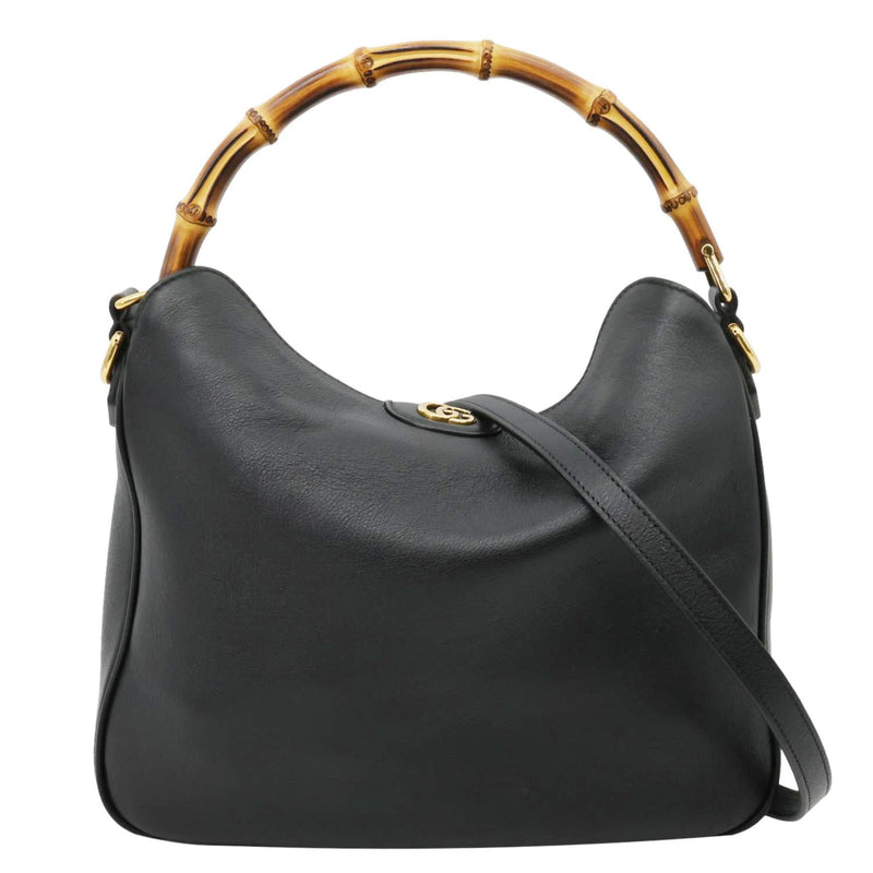 Diana Medium Leather Top Handle Shoulder Bag Black 746124