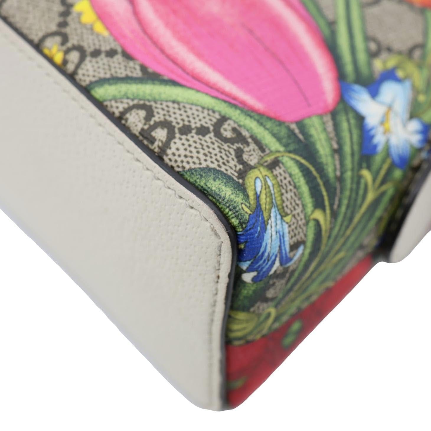 A vibrant mix of Gucci’s classic Ophidia design and the colorful Flora print, crafted in signature Supreme canvas. Compact yet eye-catching, it brings timeless charm with a playful, feminine twist.