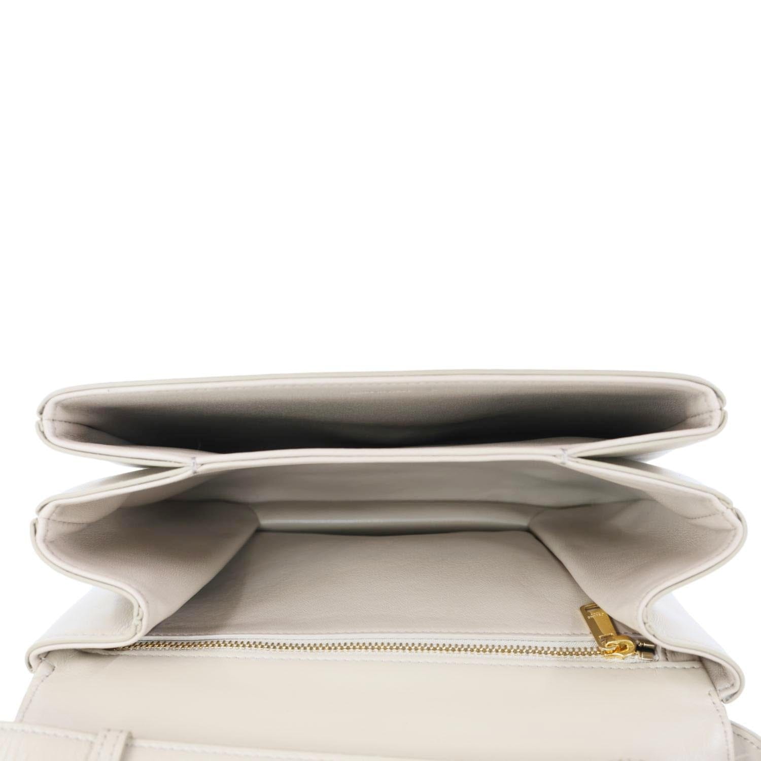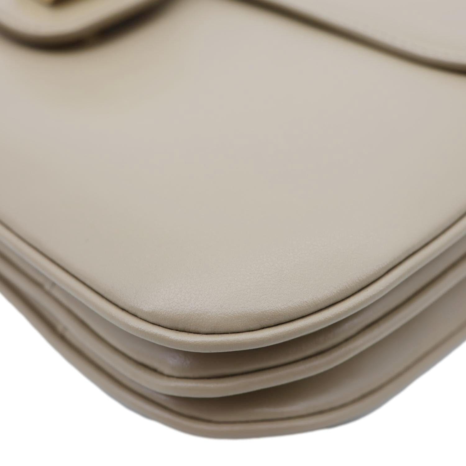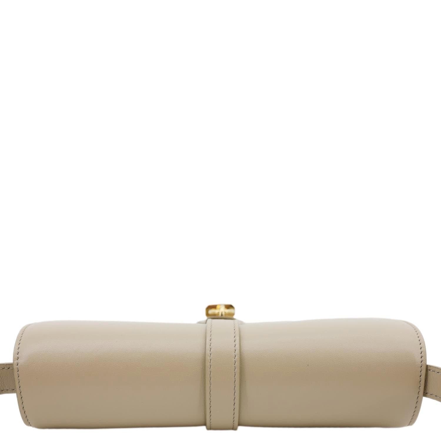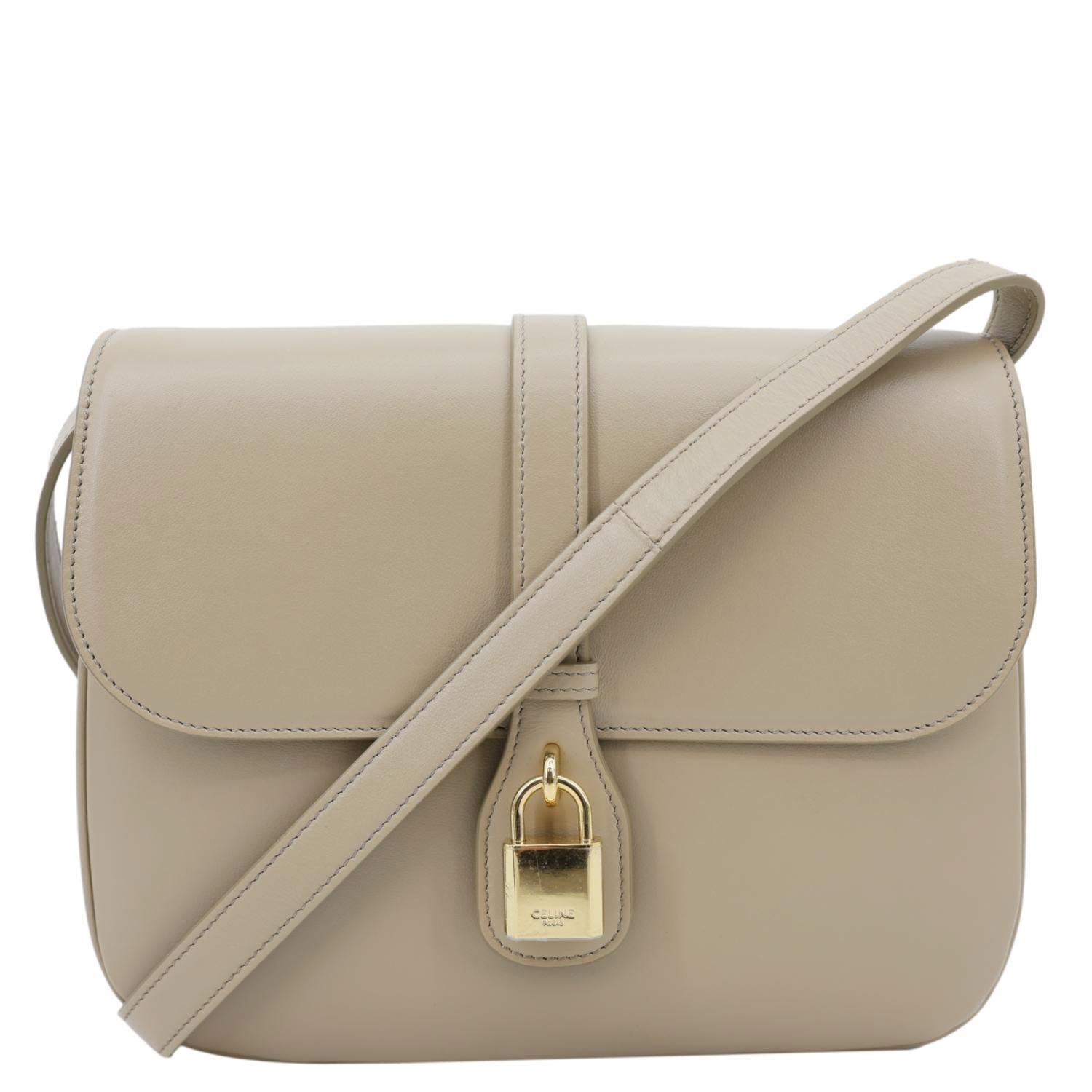 The CELINE Tabou Medium in smooth beige calfskin exudes timeless Parisian elegance with its sleek silhouette and gold-tone accents. A refined piece for effortless everyday style.