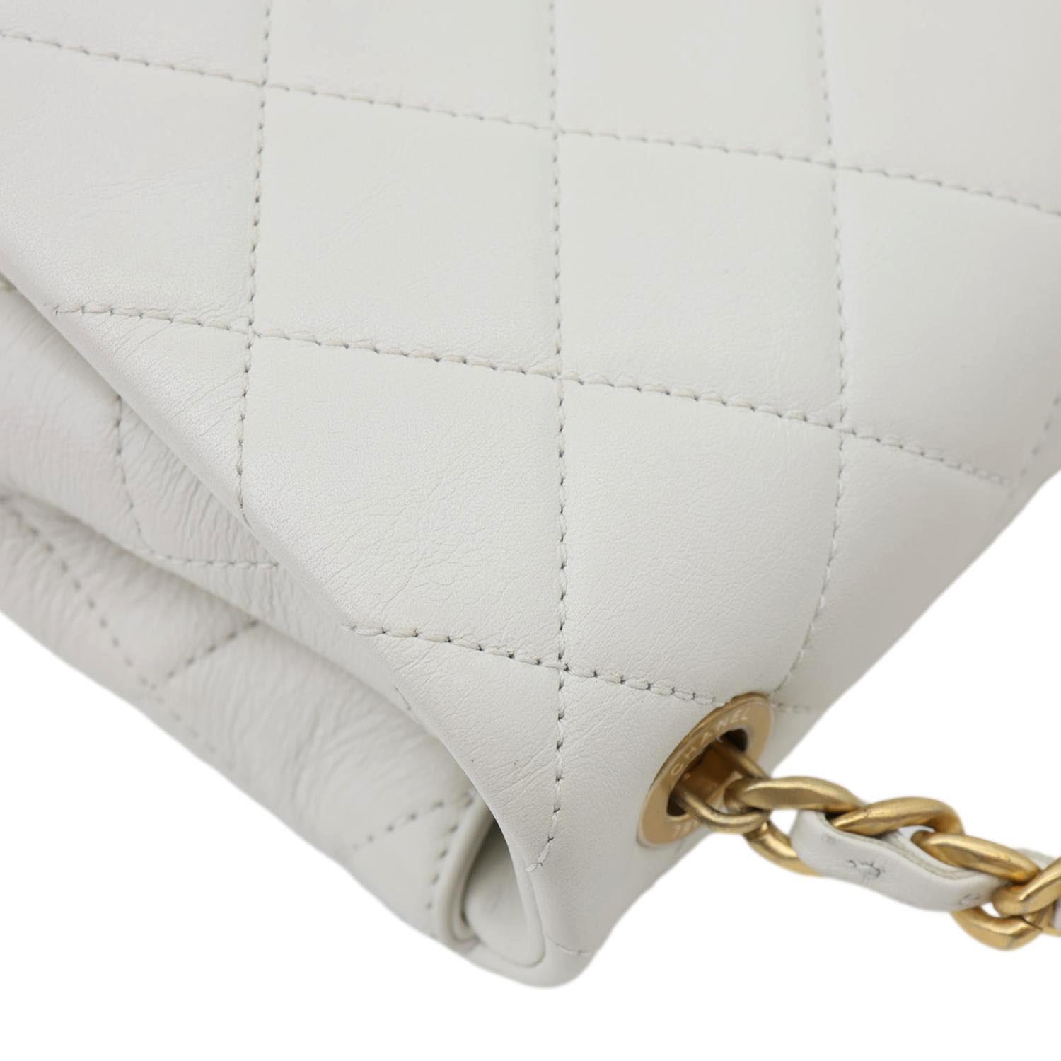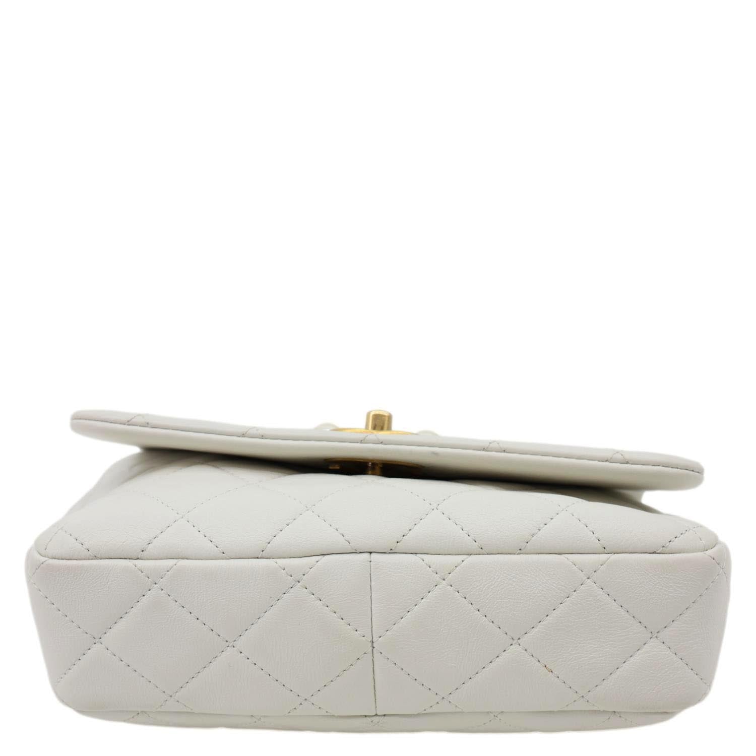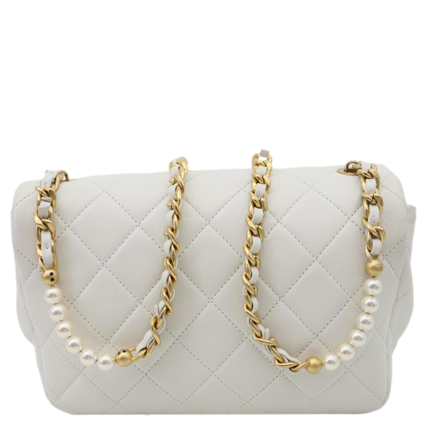 CHANEL Pearl Side Flap Quilted Leather Crossbody Bag White