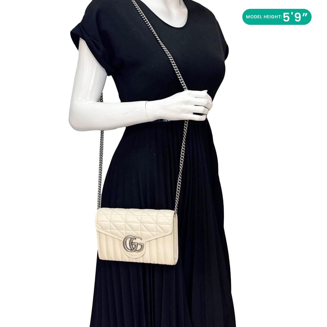 Aria Marmont GG Calfskin Matelasse Leather Chain Wallet Mystic White 474575