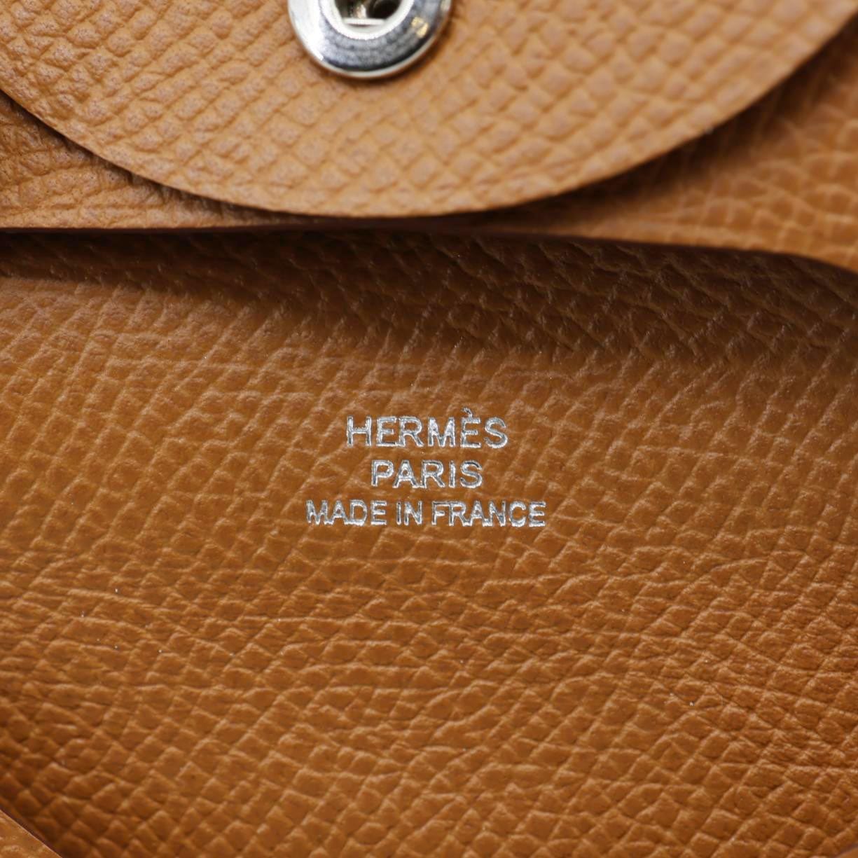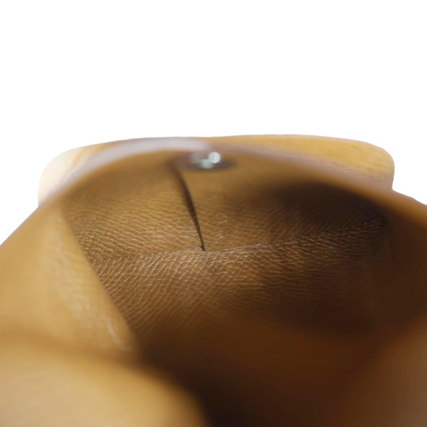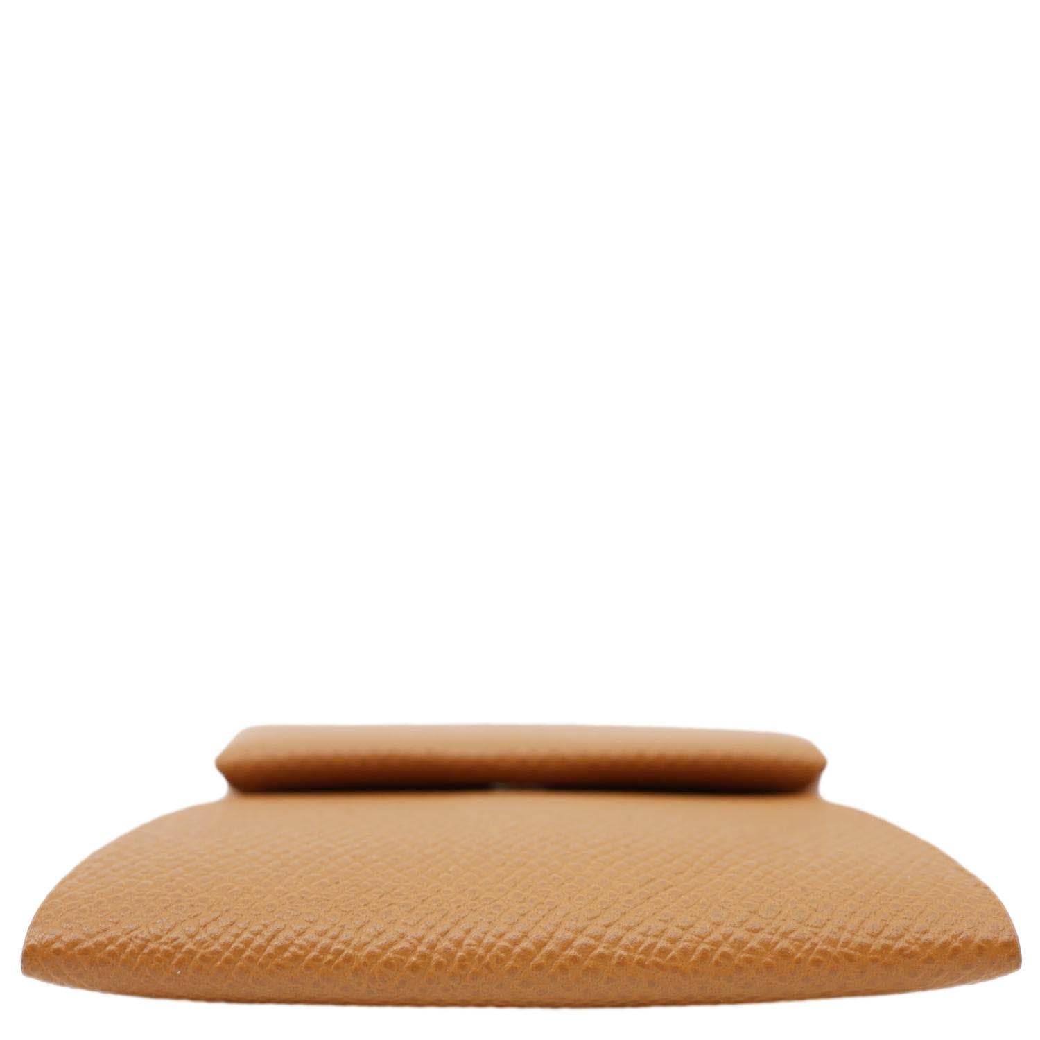 The Hermès Bastia Epsom Leather Coin Purse in Brown is a stylish accessory with a compact design and luxurious Epsom leather. It features a snap closure and is ideal for holding coins and small essentials.