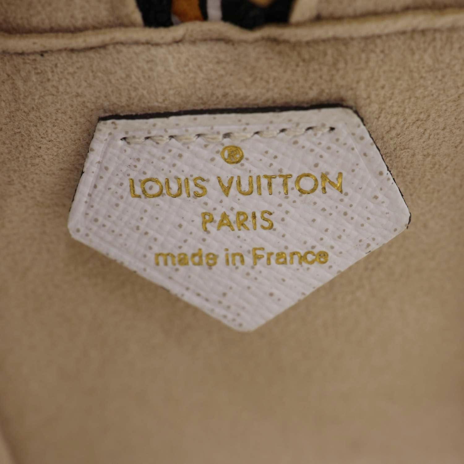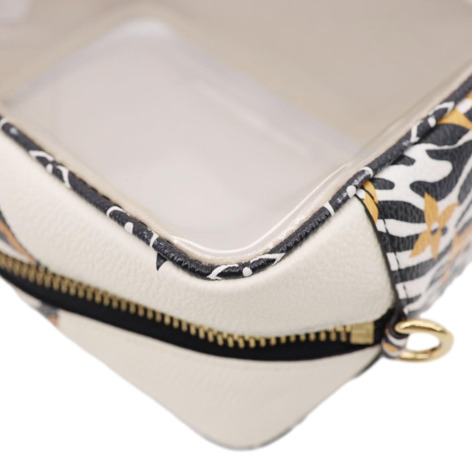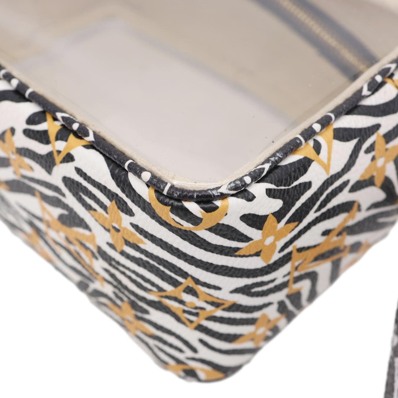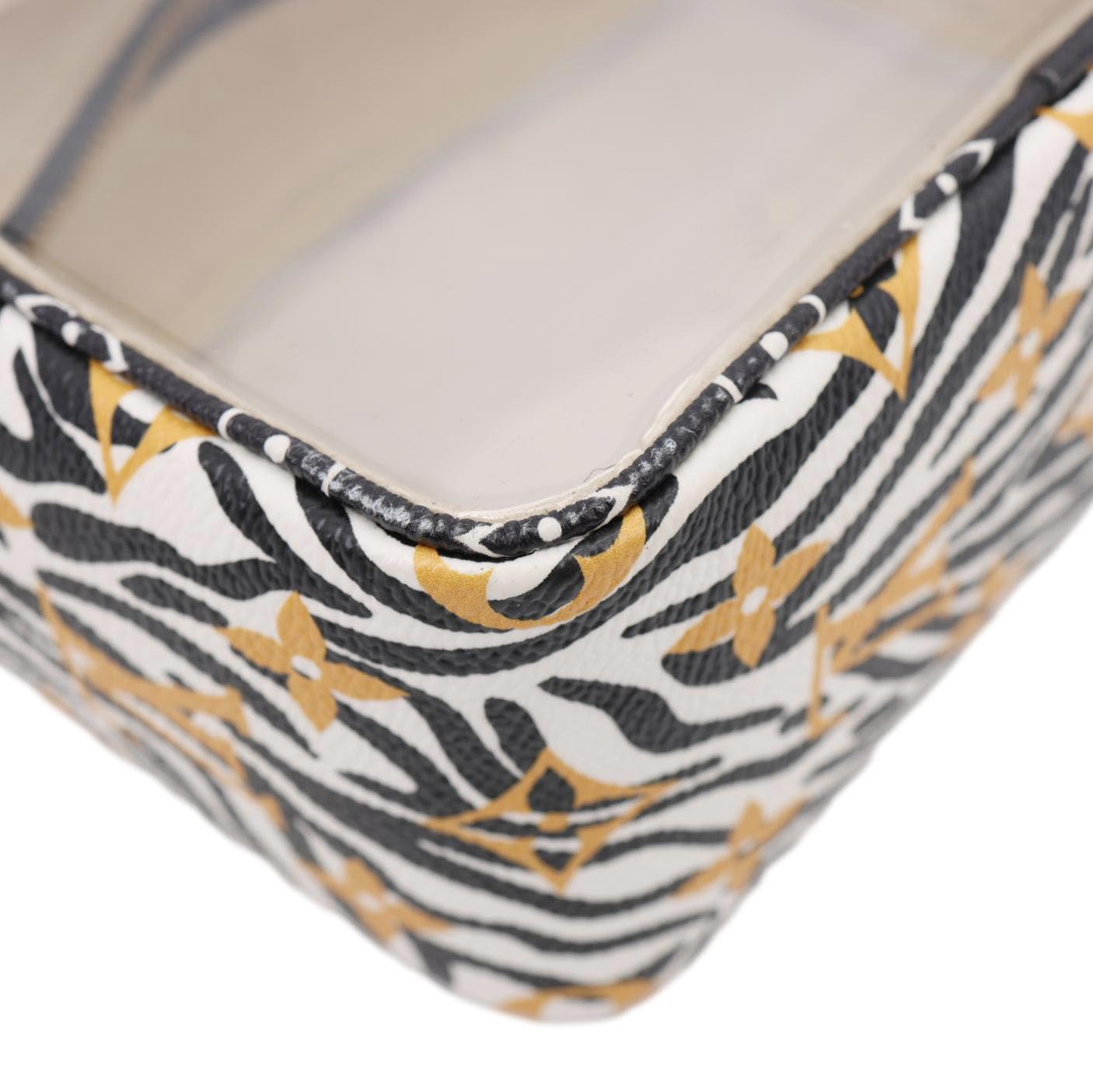 The Louis Vuitton Monogram Giant Jungle Canvas Beach Pouch in ivory showcases an oversized monogram with exotic jungle-inspired accents. Lightweight and stylish, it’s perfect for beach essentials or casual outings.