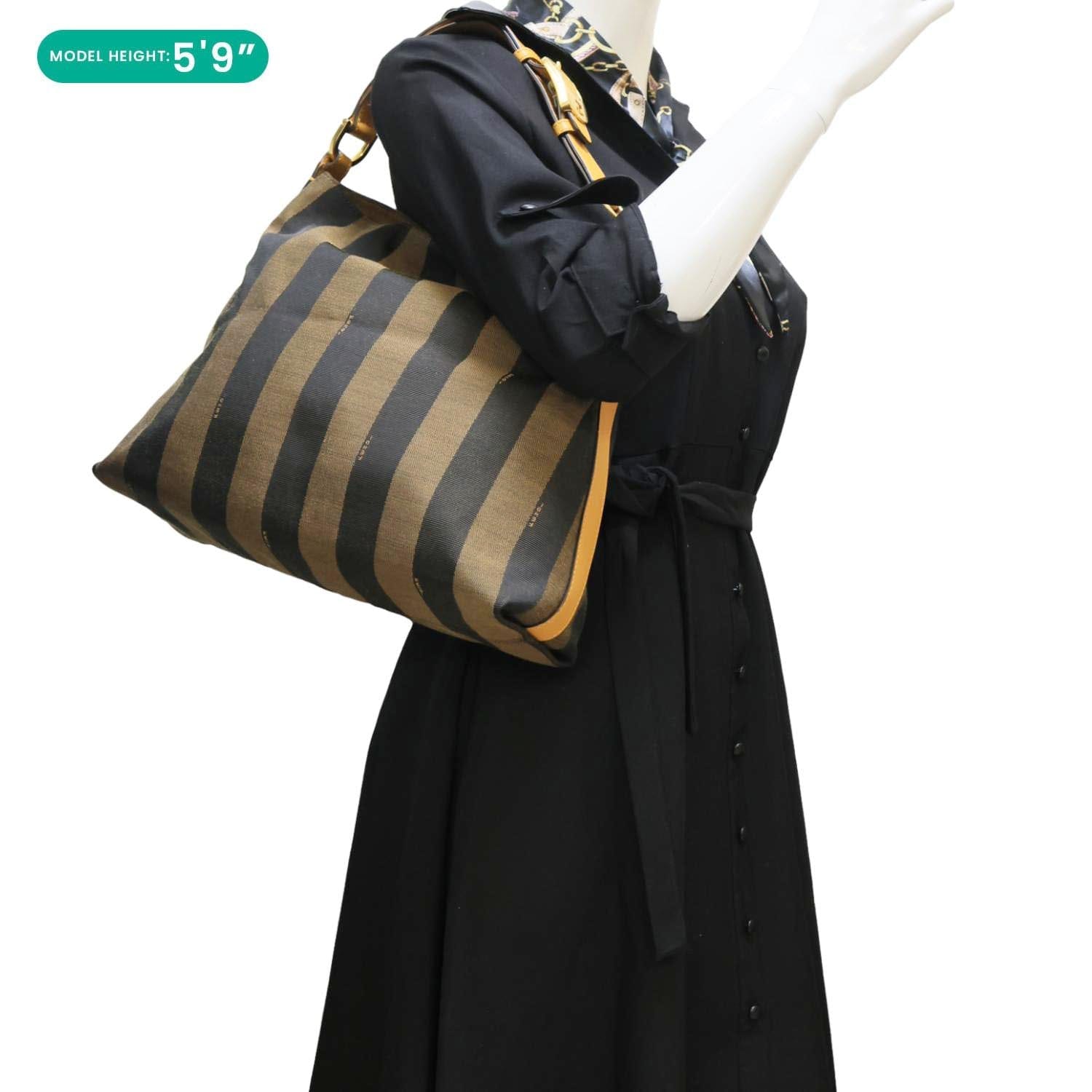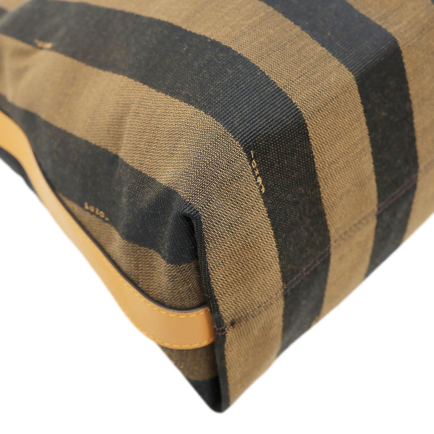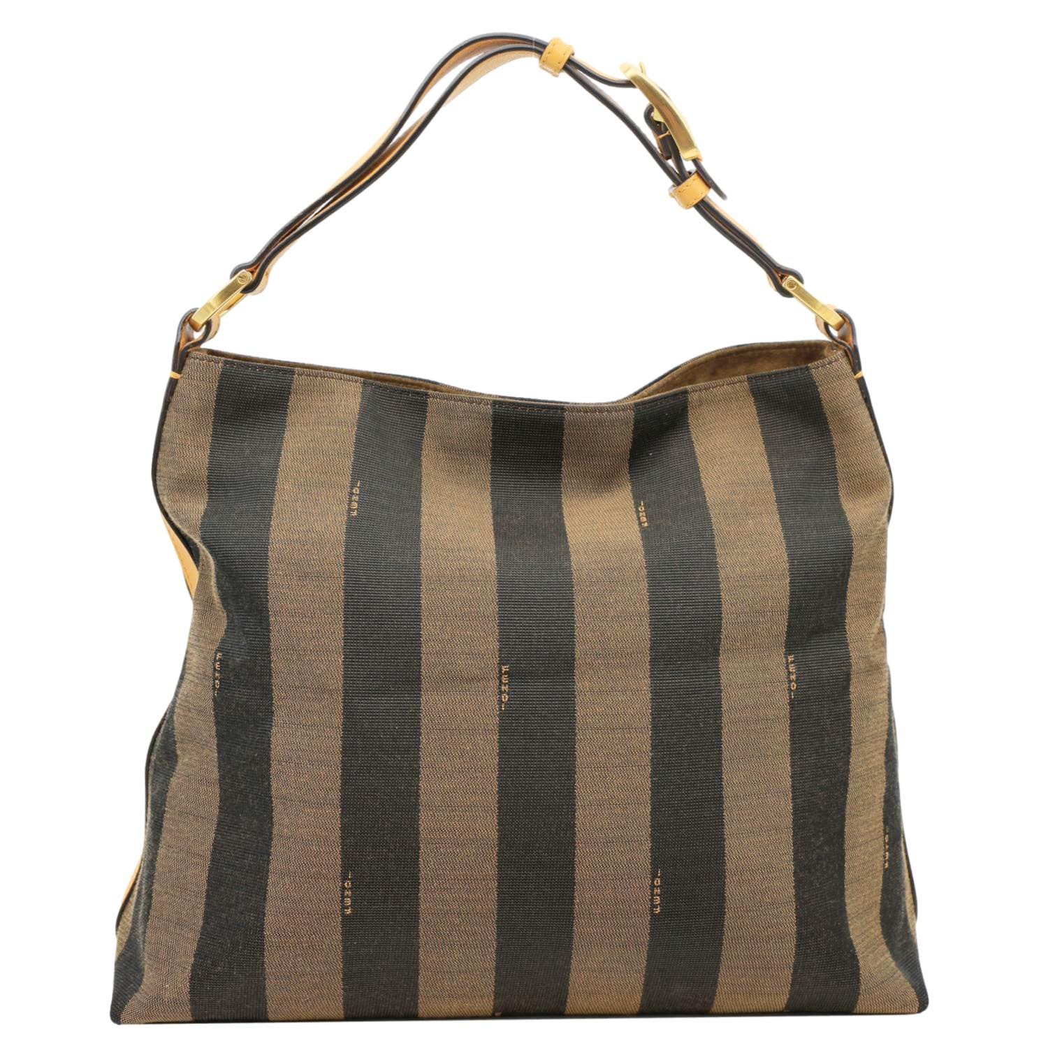 Fendi Pequin Stripe Canvas Hobo Bag in tobacco features signature striped canvas with leather trim for a classic, casual luxe look.