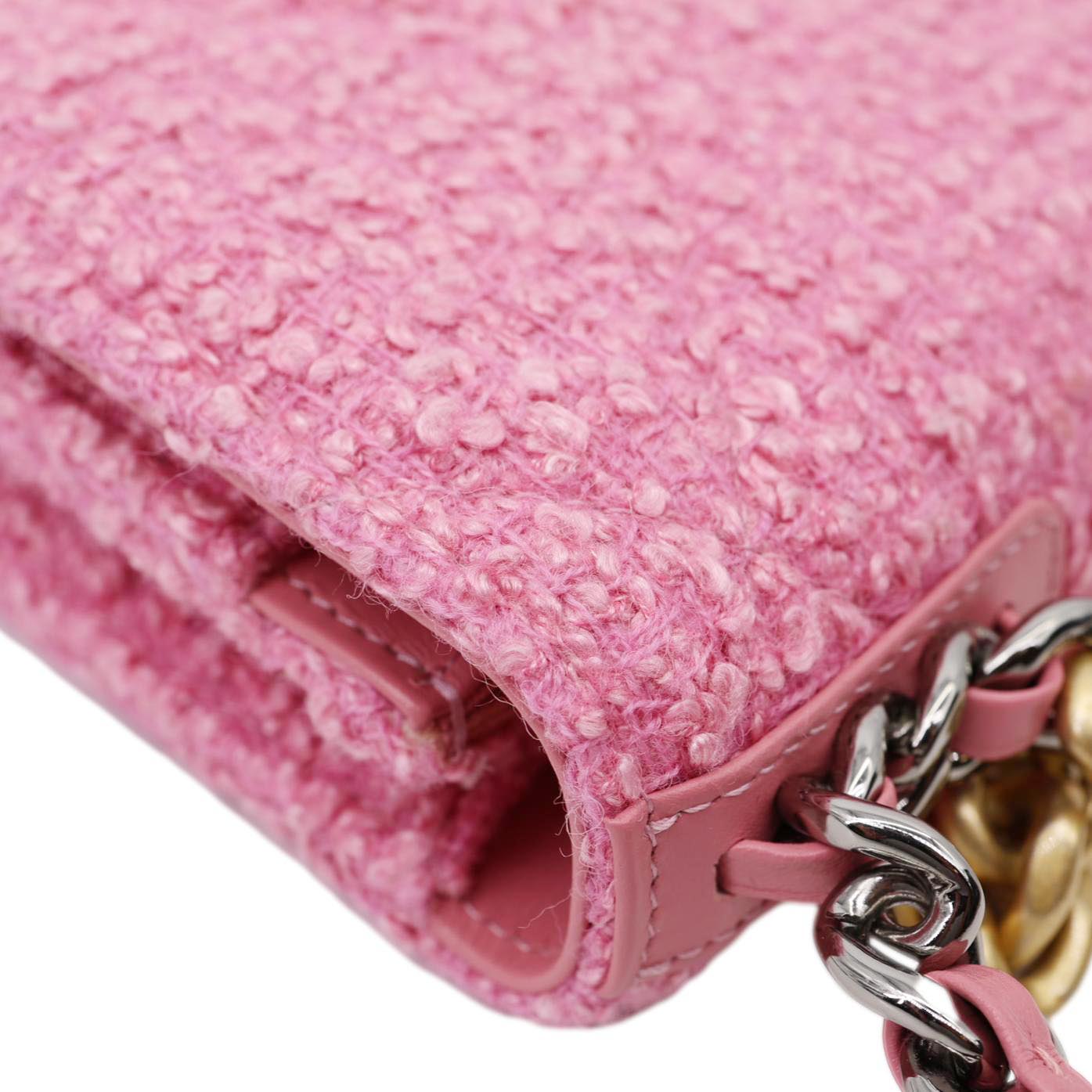 19 Flap Wool Tweed Wallet On Chain Shoulder Bag Pink