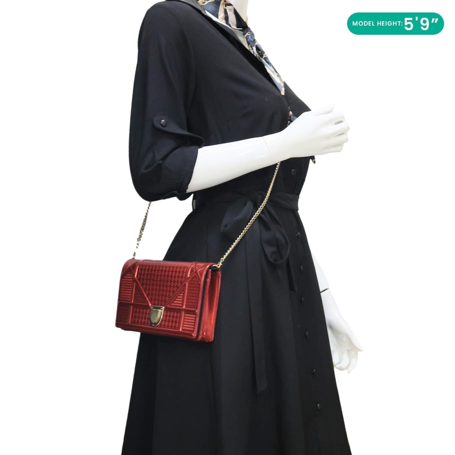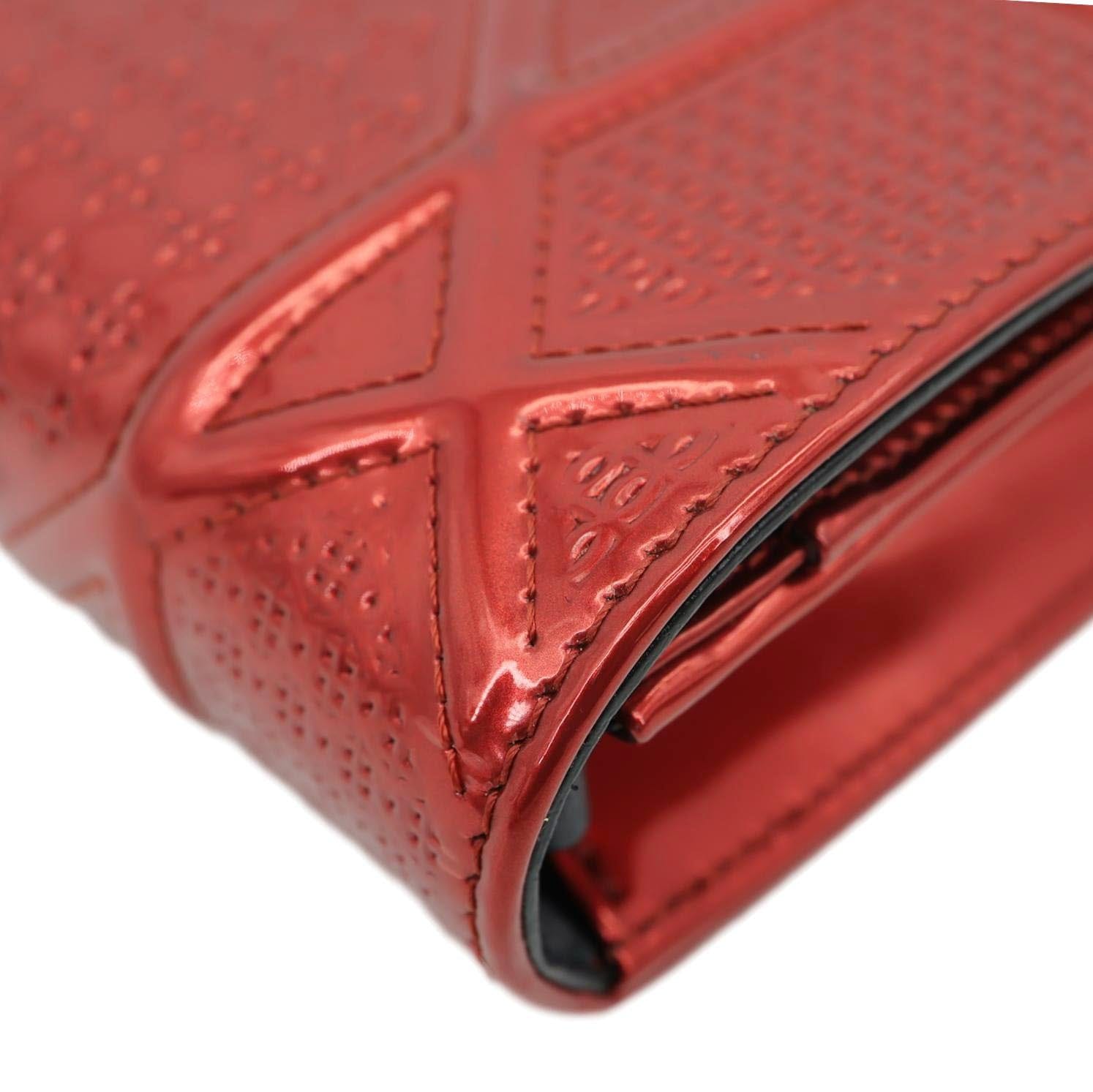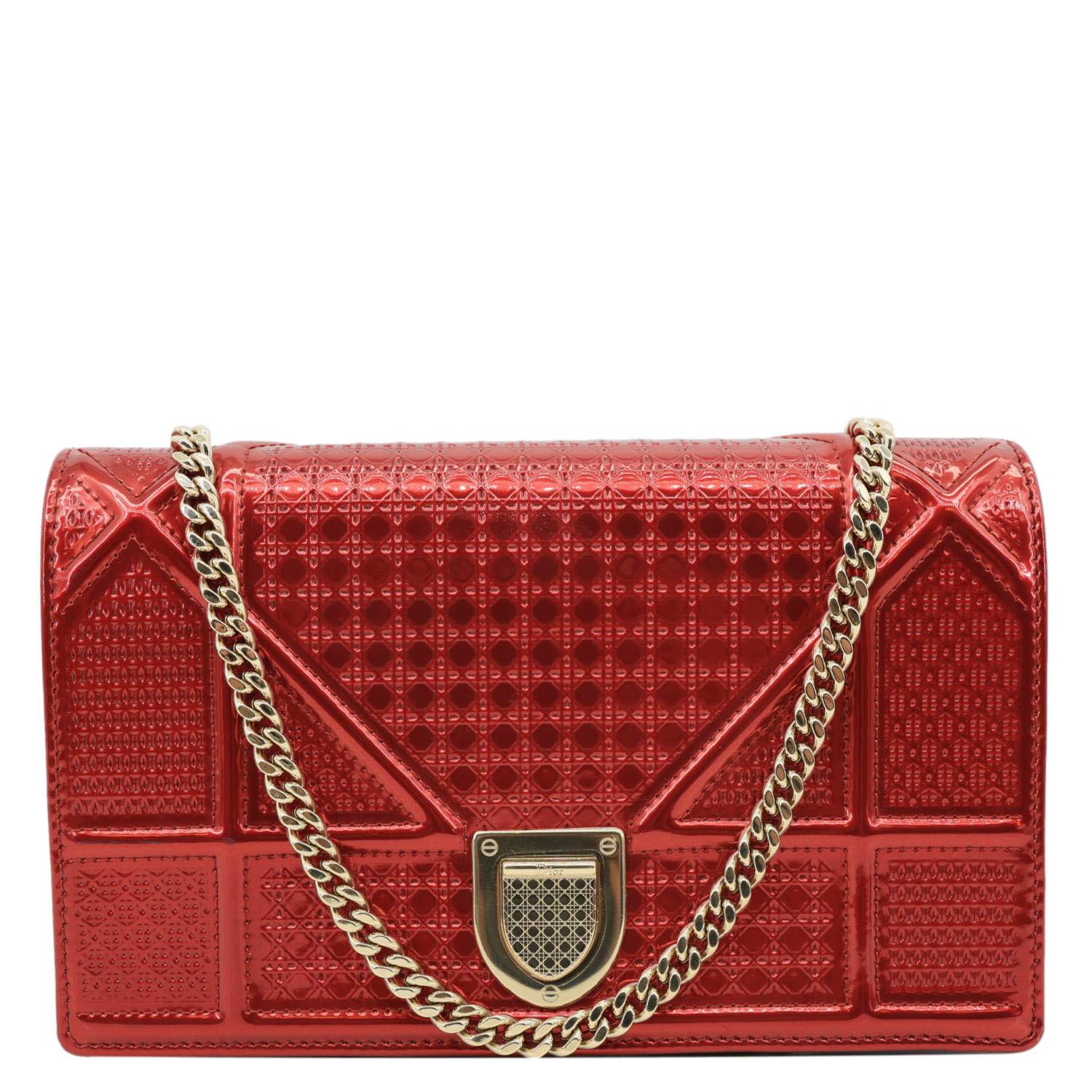 CHRISTIAN DIOR Diorama flap bag in red patent leather with Micro-Cannage stitching and signature Dior hardware. Compact and chic, perfect for adding a bold, luxurious pop of color to any outfit.