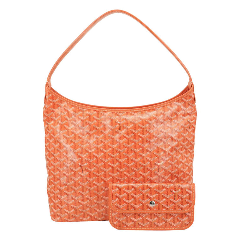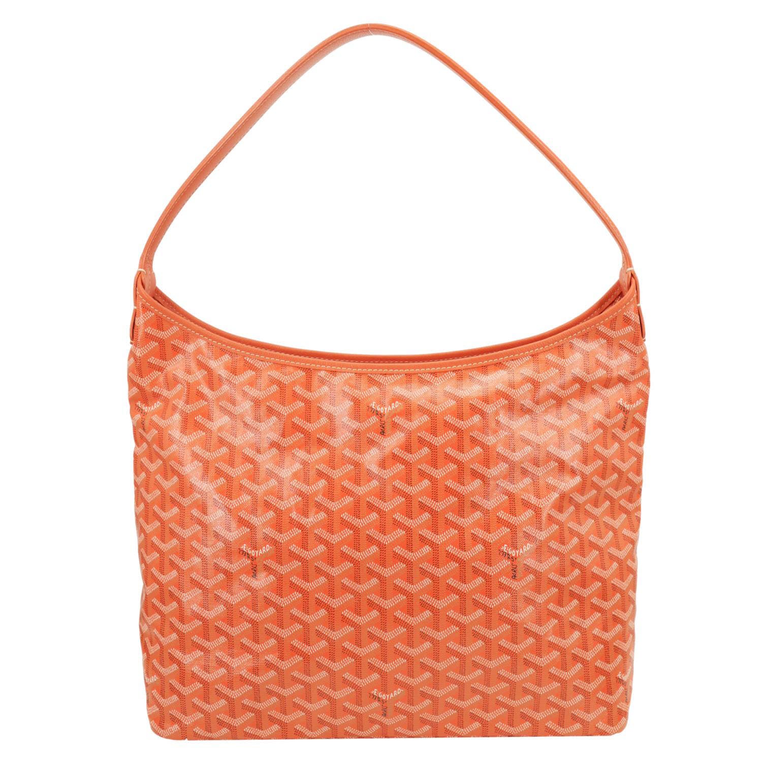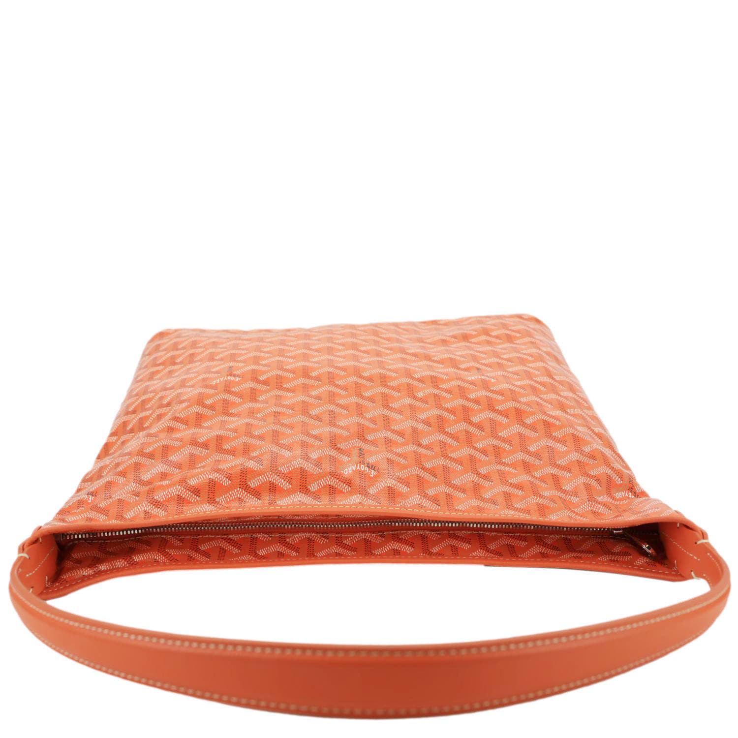 The GOYARD Boheme Canvas Hobo Bag in orange is a lightweight, stylish shoulder bag in signature chevron canvas with leather trim, offering a roomy interior and effortless everyday elegance.