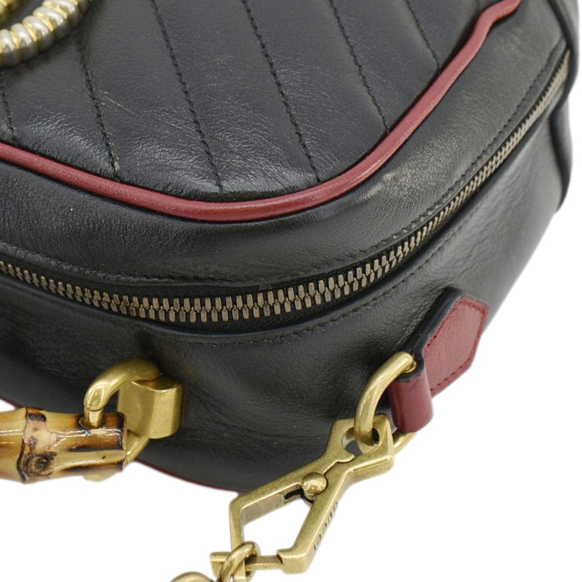 GG Marmont Diagonal Leather Bamboo Top Handle Crossbody Bag Black 602270