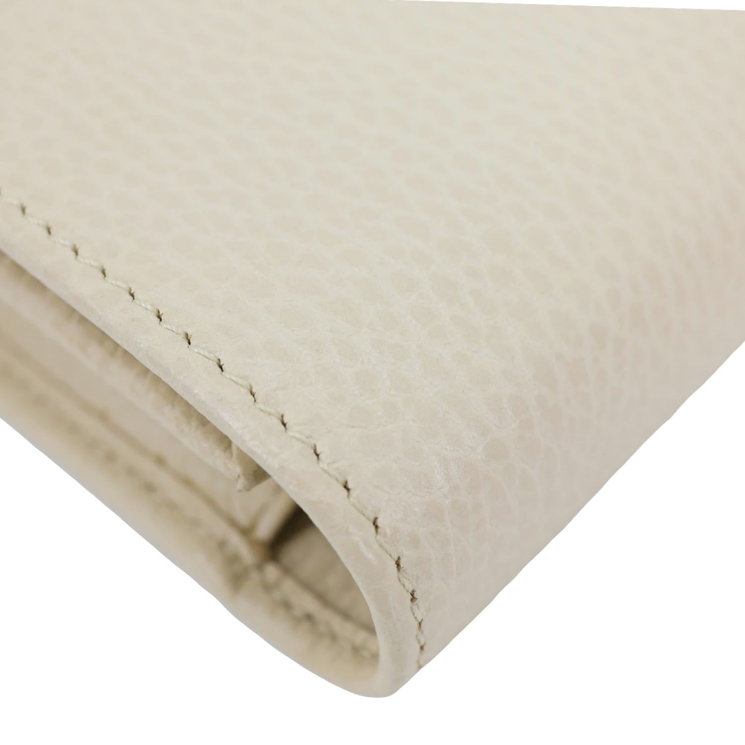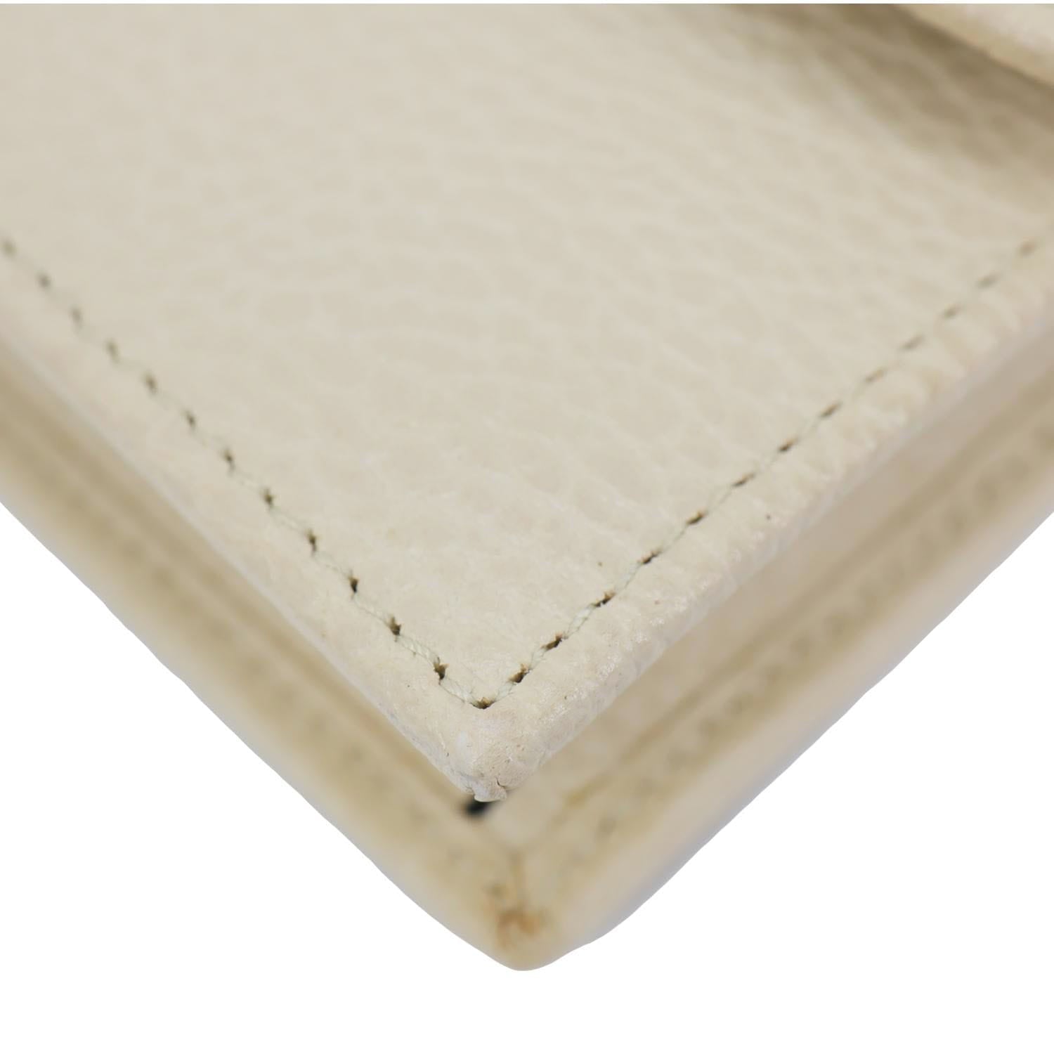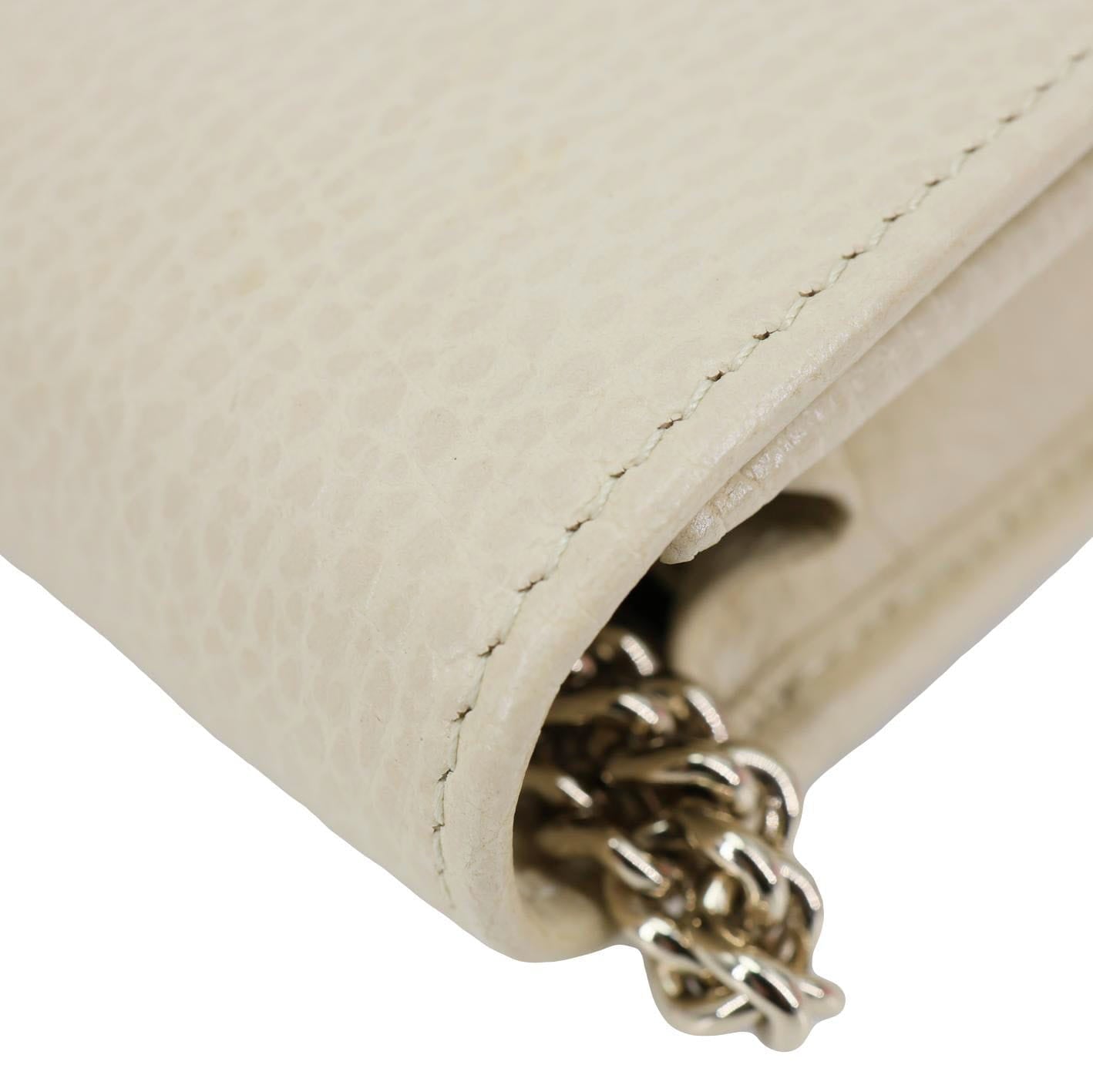 Elegant and timeless, this Gucci wallet on chain features smooth off-white leather with the signature interlocking GG logo. Compact yet functional, it offers organized compartments and a detachable chain for versatile day-to-night styling.