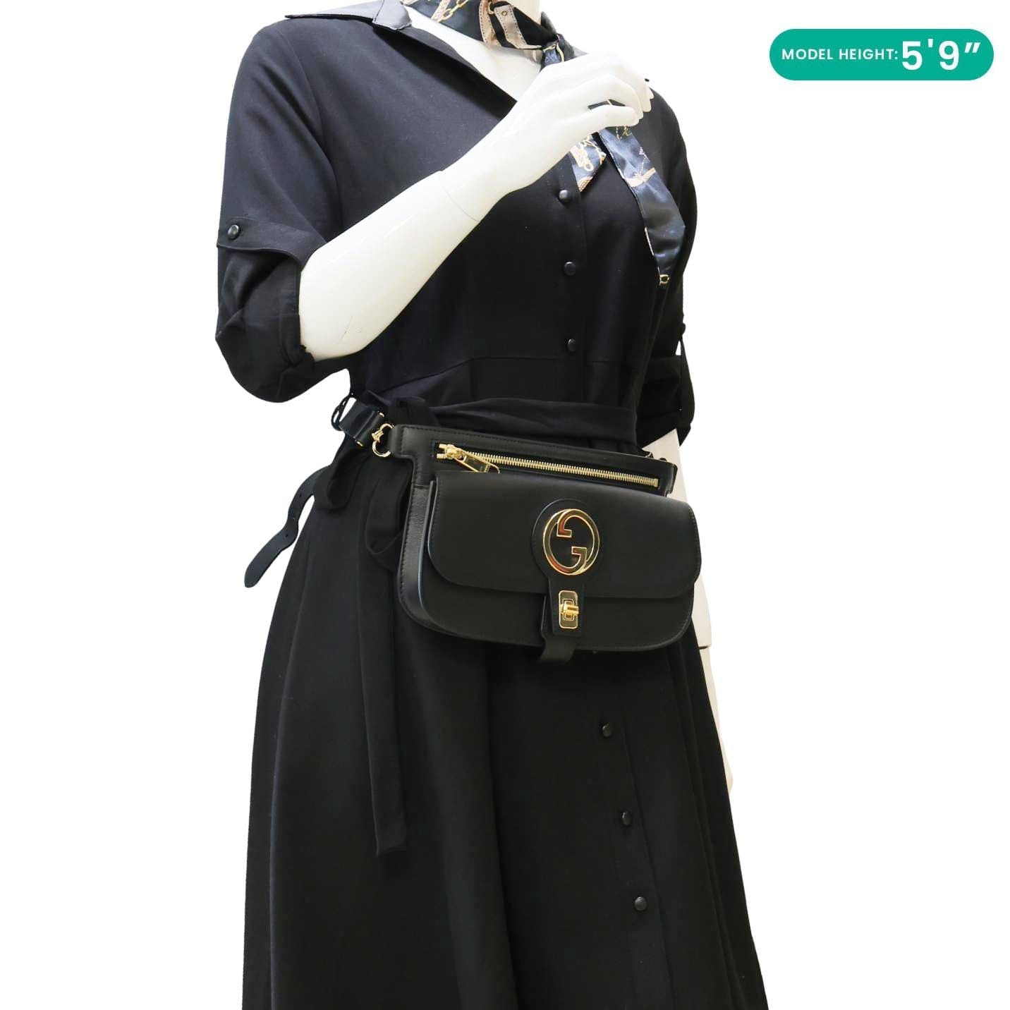 The Gucci Blondie belt bag is crafted from smooth leather in a classic black finish. Featuring the signature round GG emblem and an adjustable strap, it’s a sleek hands-free accessory for modern wear.