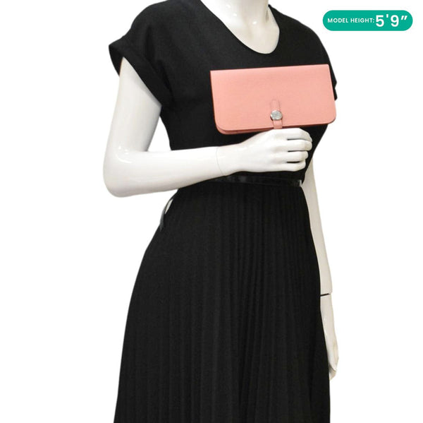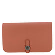 The HERMES Dogon Duo Togo Leather Wallet in pink exudes refined luxury with a playful touch. Its smooth, durable leather and sleek design make it both stylish and practical.